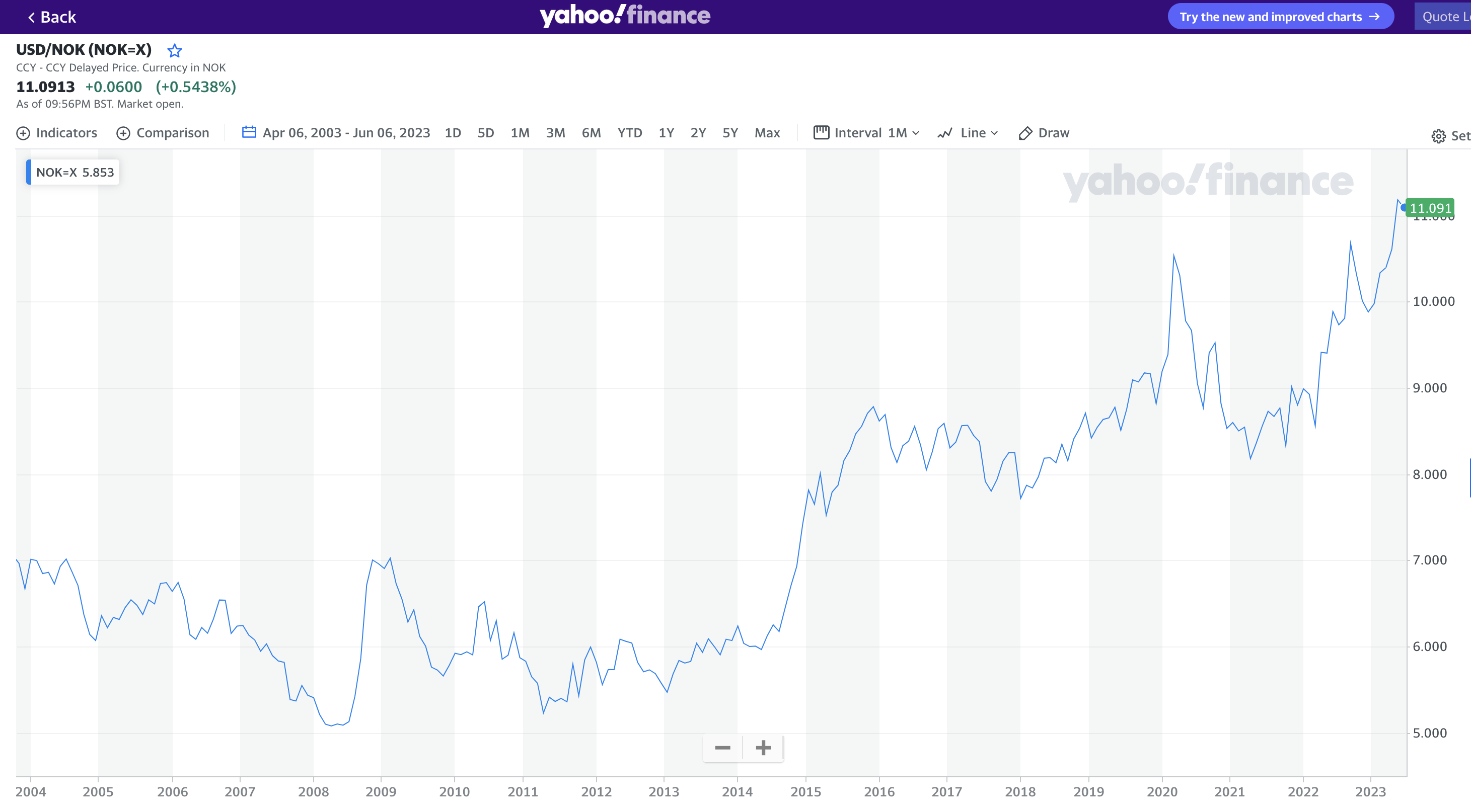 Det er interessant å se kronekursen mot euroen opp mot grafen over: