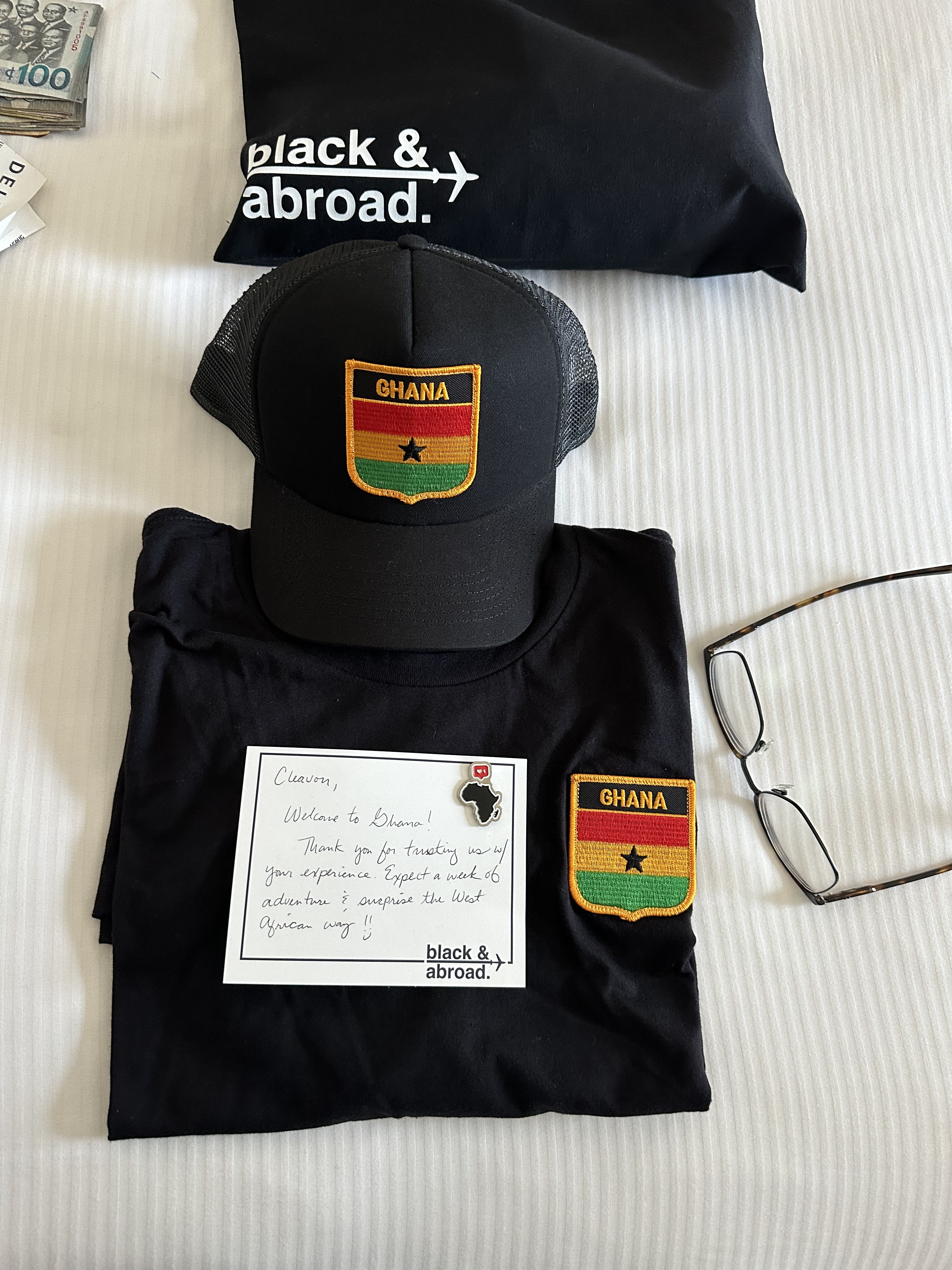 Below these are a couple quick photos of the hotel, Ghanaian Cedis (currency) and a small welcome kit.