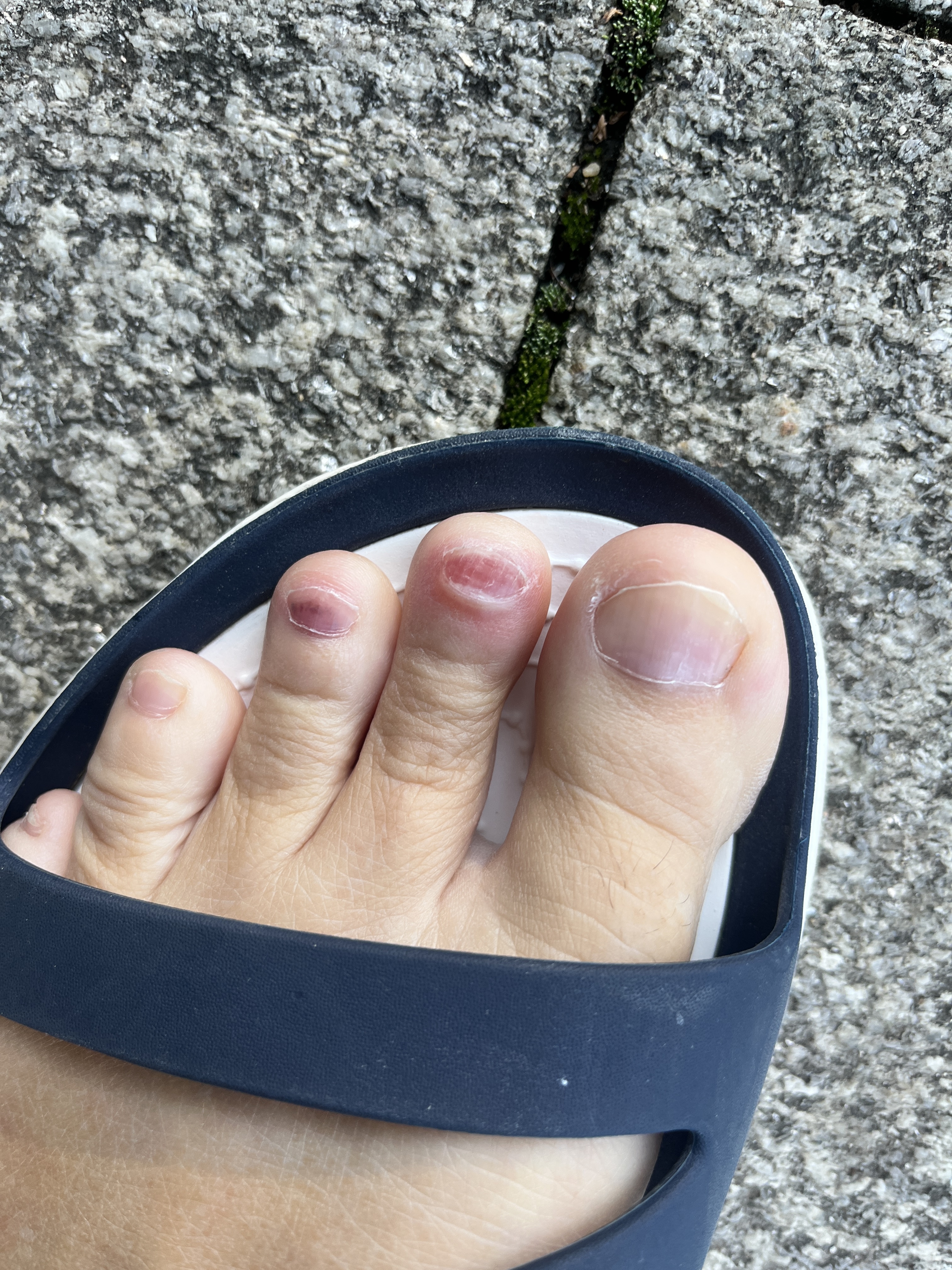 Hard to see, select and load photos here… also Pam uses her camera to get pics a lot of the time so hopefully she has better ones than me. Going through and sharing photos is going to be a serious project. We want to make a Shutterfly video. Please hold us accountable! Have I sent a toes pic already? This is old. They are much darker now. I have “shower/camp” sandals that bring relief when I get to town but they are not for walking. It is much harder to find stores here than I imagined. More on that later…