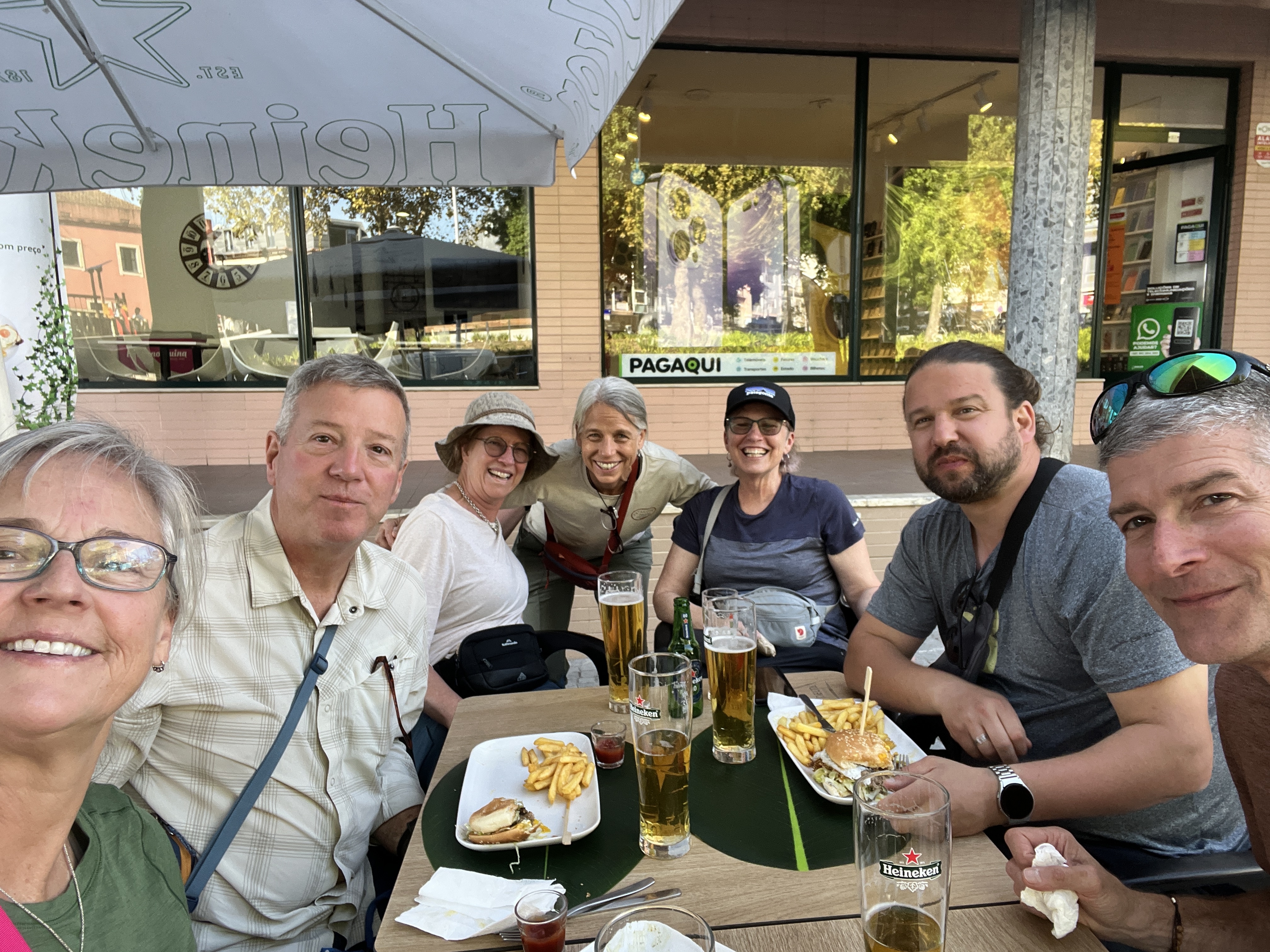 As soon as we ordered we recognized a man from The Camino. He was traveling alone. It’s very common, even for women. “Would you like to join us?” we asked. My friends slid down to make room for five at our small square table for four. Fabian from Germany.