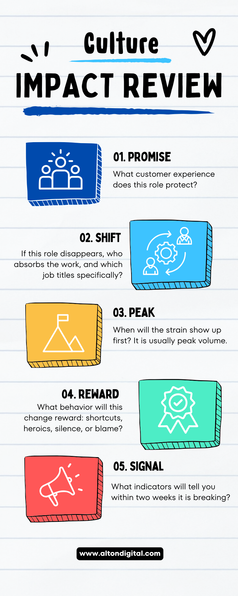 Before you eliminate a role, consider running a a Culture Impact Review. Simply ask these five questions.