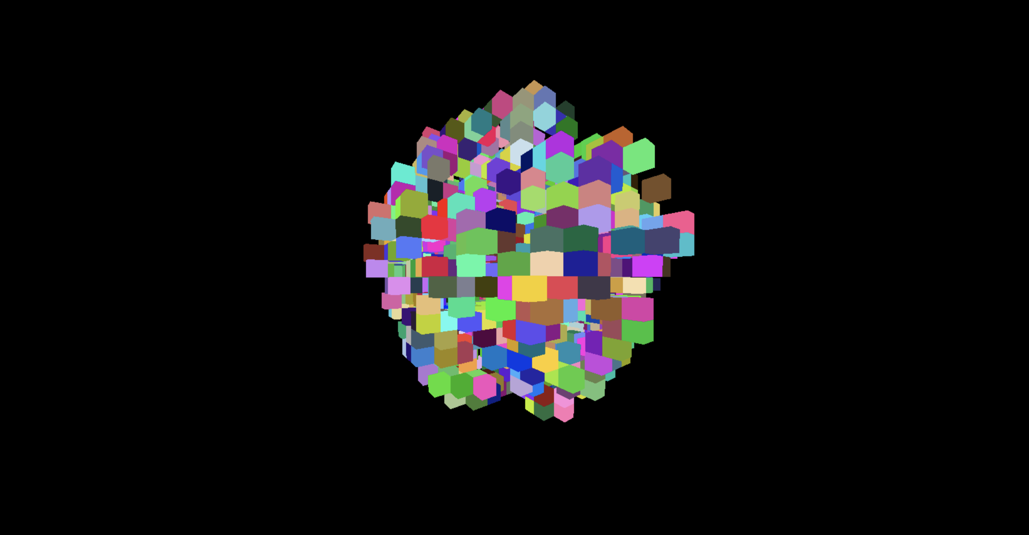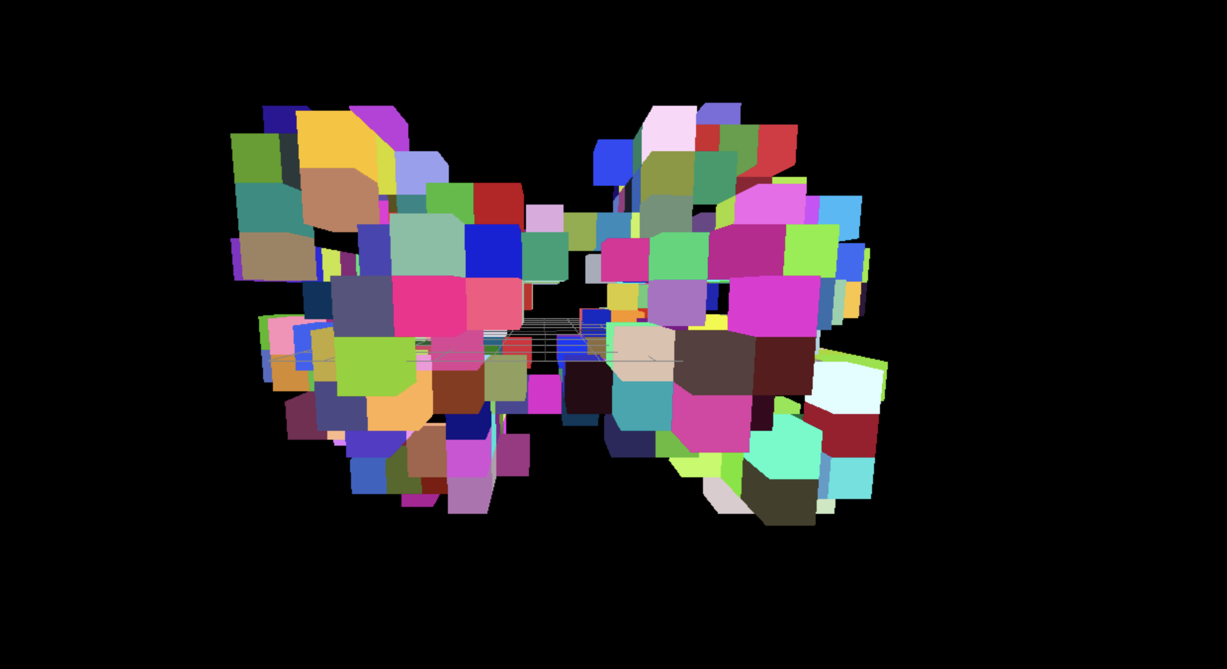 Next, the goal will be to compute N positions in space and create a cub with a random color at each of these positions.