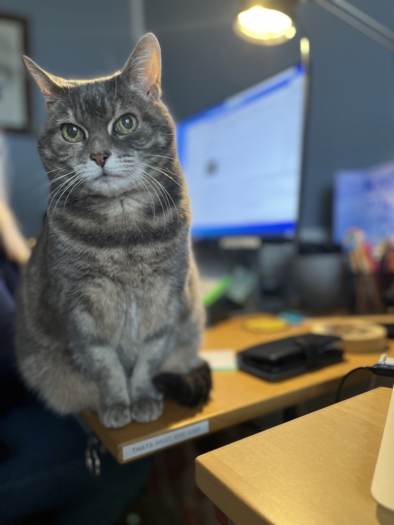 We called her Socks because when she was a kitten, she was predominantly grey but with 2 Guinness Creamy front paws. It looked like she was wearing Socks and her ears perked up whenever we said that word (socks).