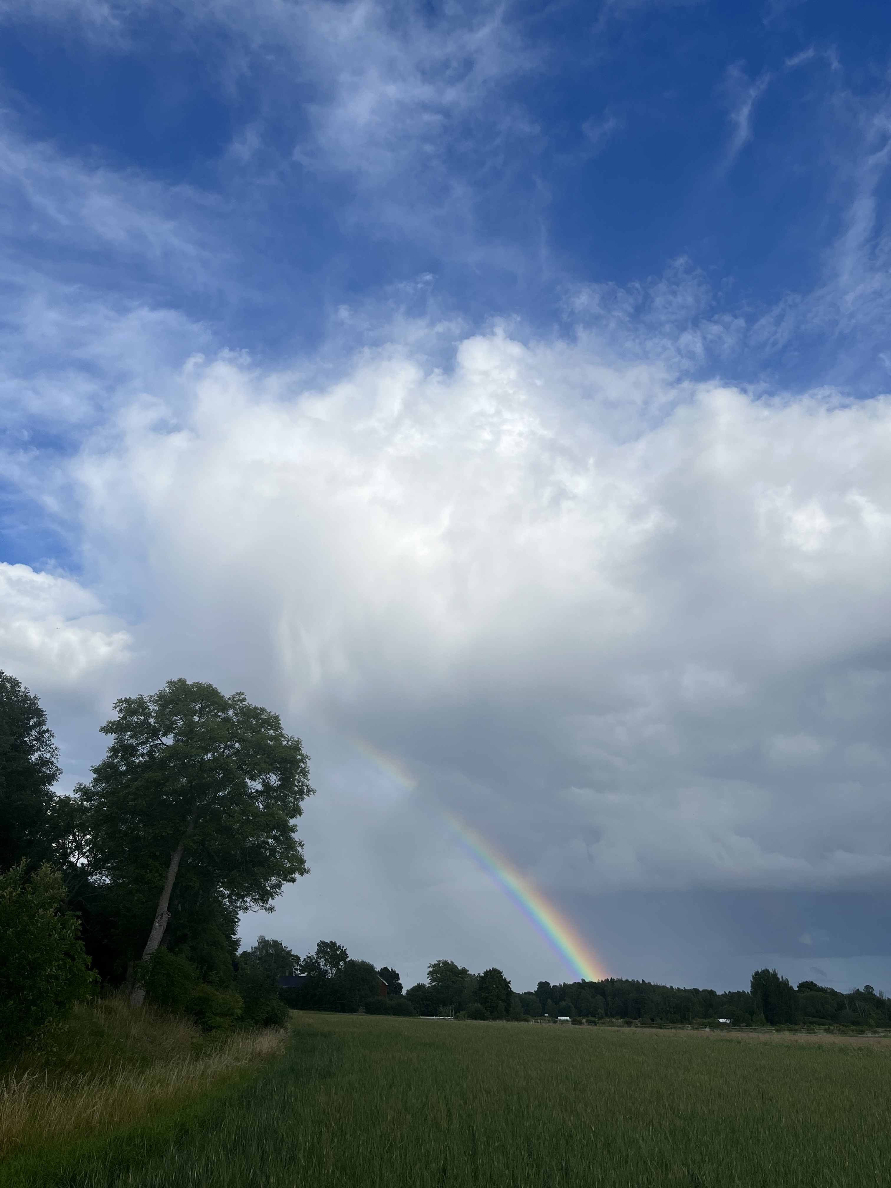 On a tear filled walk in the front field, my wife and I saw the brightest ever rainbow.