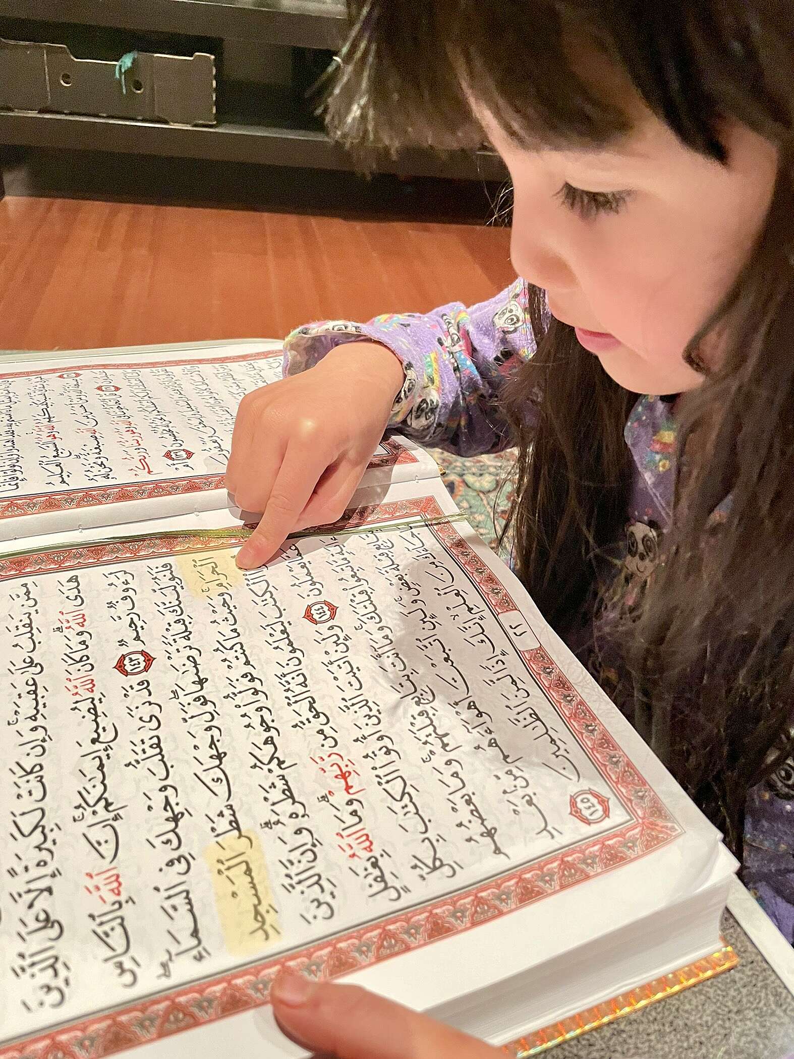 Last night Sakeenah was reading ayat 142 - 145 of Surah al-Baqarah. When she got to aya 144, she got very excited to read the word Masjid al-Haram. She yearns to visit the House of Allah.
