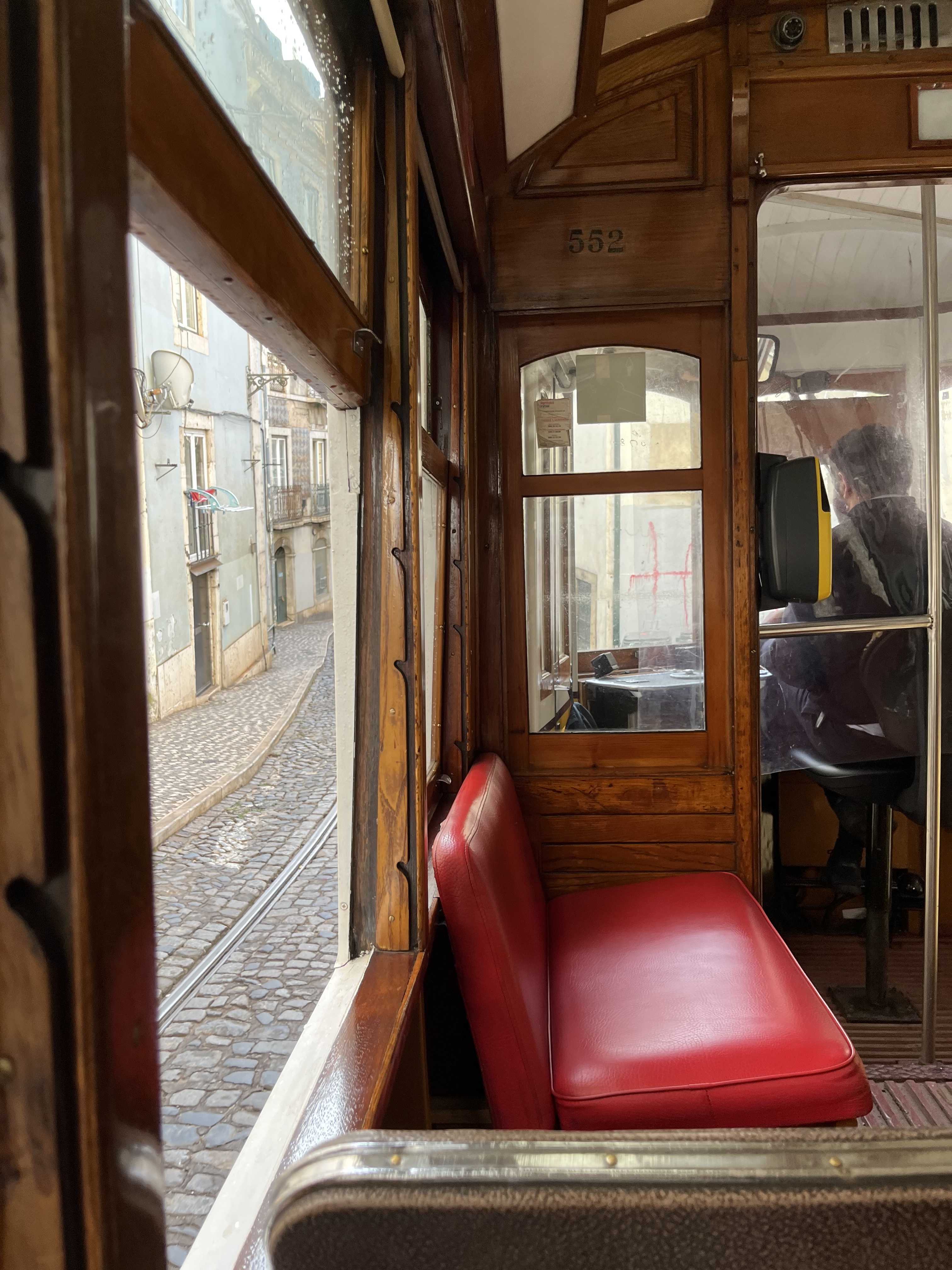 On the tram. These things are slow and loud!