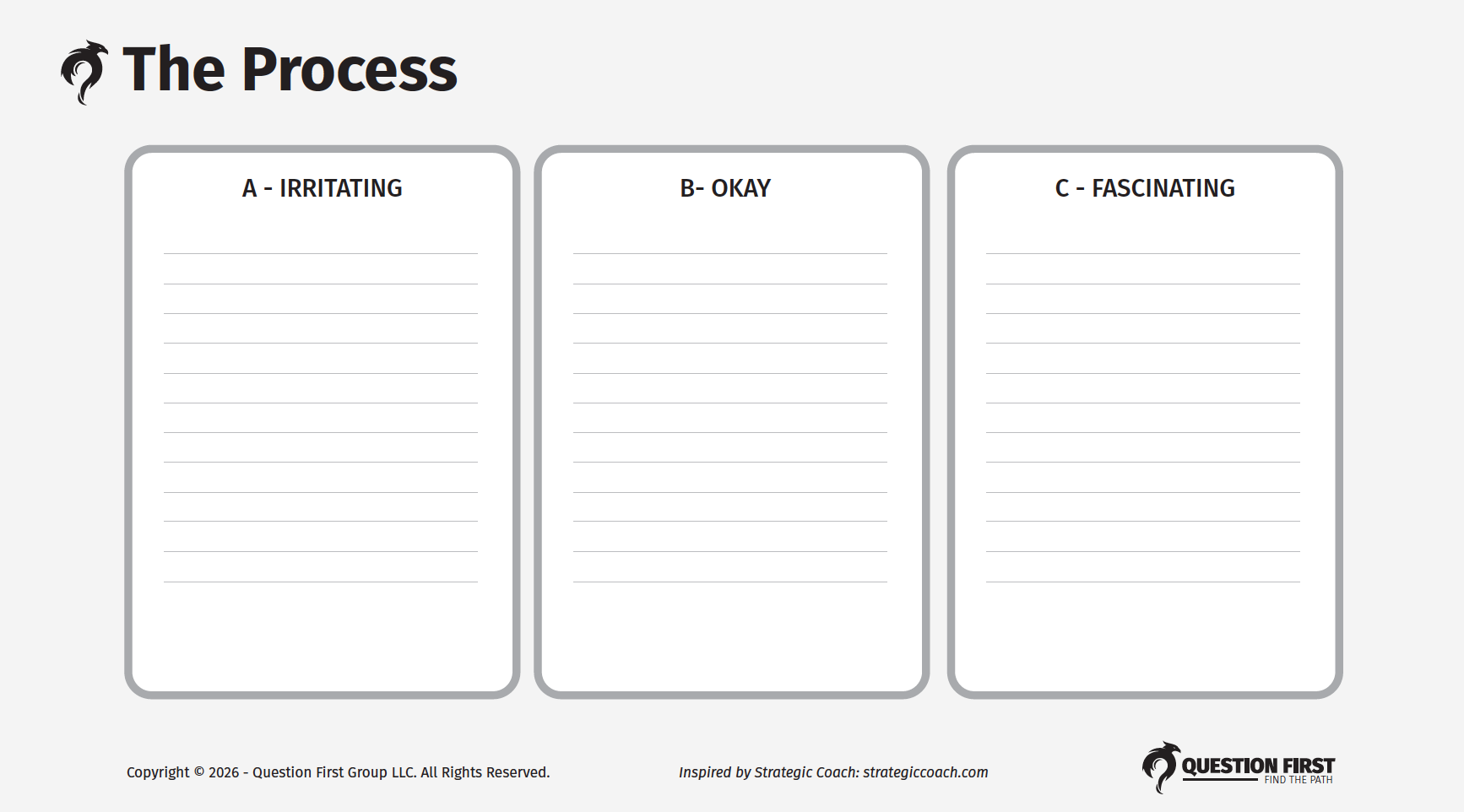 - Write out all your A's. Everything that feels like a grind. Be honest.