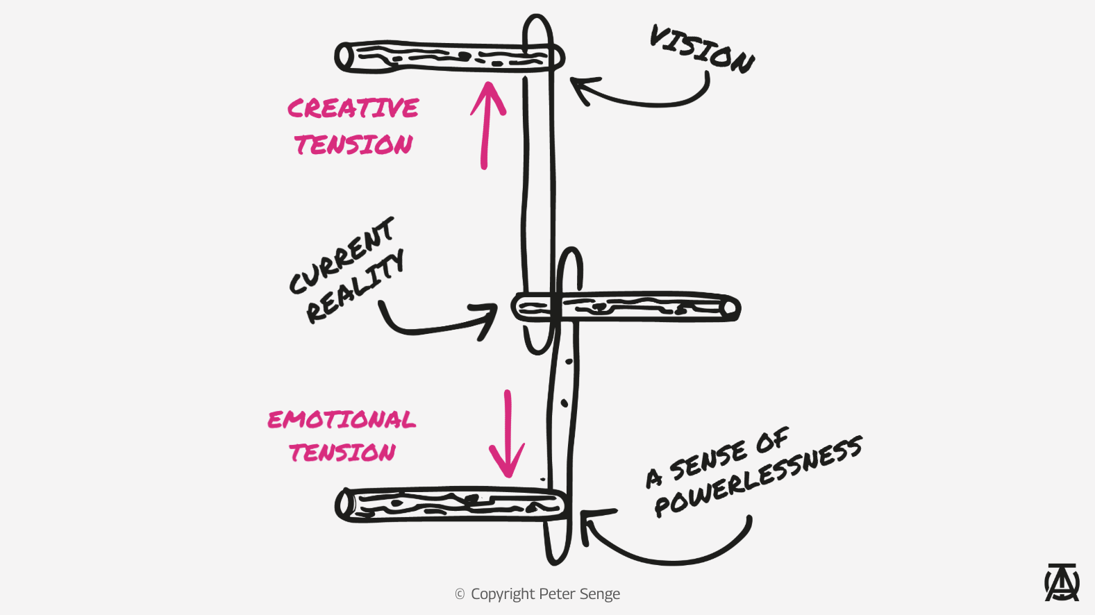 You will never ‘arrive.’ And so, to succeed and get closer to making your vision your reality, you must get comfortable living and working in this world of creative and emotional tensions pulling upon you.