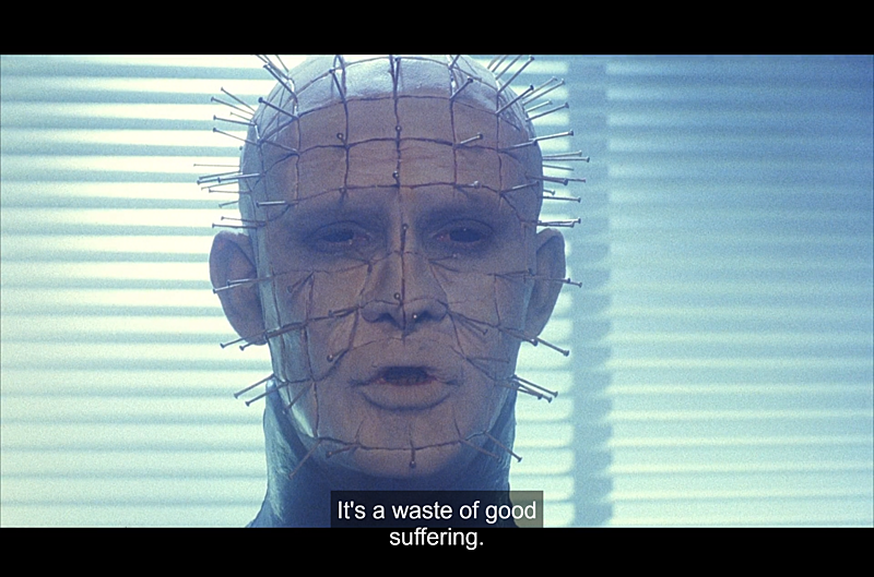 I wish I was living in whatever phantasmagoria Roger Ebert was living in 1987, because my mind is boggled by his assessment. I found Hellraiser absolutely overflowing with outrageous yet coherent, bold ideas. These days, A24 is churning out artfilm+horror-formula, all of the 90s/2000s TV shows are getting reboots, and everything else is based on the latest bestselling novel*. Compared against the content mill of today and even the really fun, original movies of the 80s, Hellraiser begs the questions: how the hell did a person think of this, create these images and characters, evolve concepts around pain and pleasure, literally, how did a human being have the imagination??