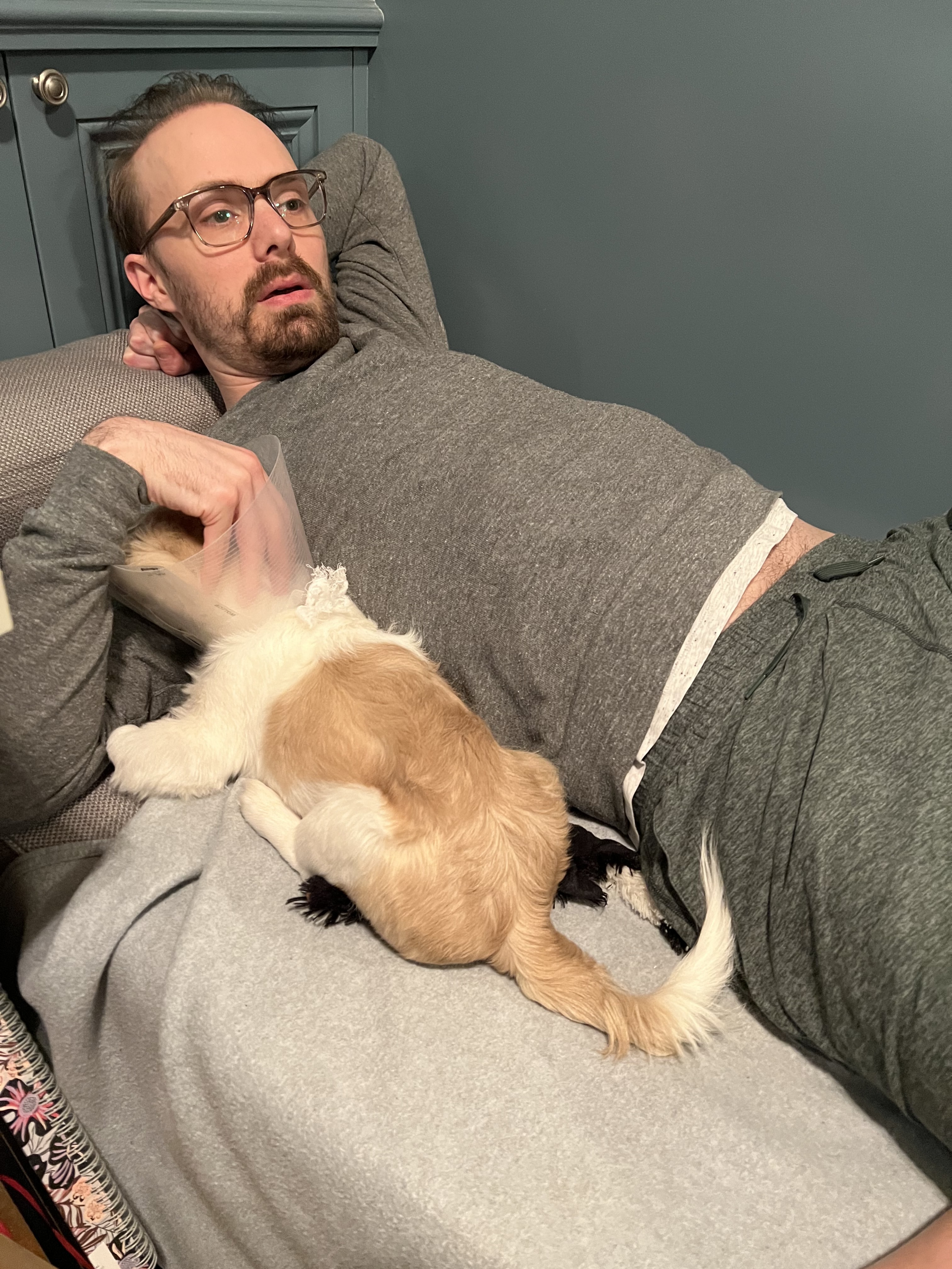 Doggy on a train. Still not having a great time, but it’s getting better 😭