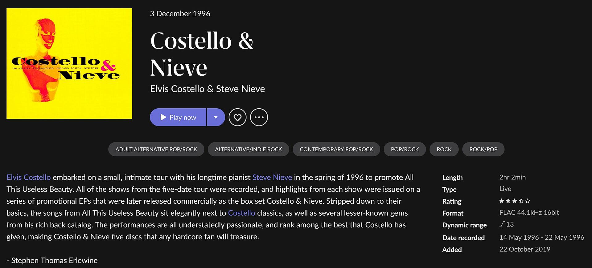 KLUF Wow, I better come up with something good, given this post. This will not be what you expect, and it really has nothing to with anything, apart from 1) it's very rare, and 2) it's very good. Here, in an extraordinary collection of live recordings, are Elvis Costello and Steve Nieve.
