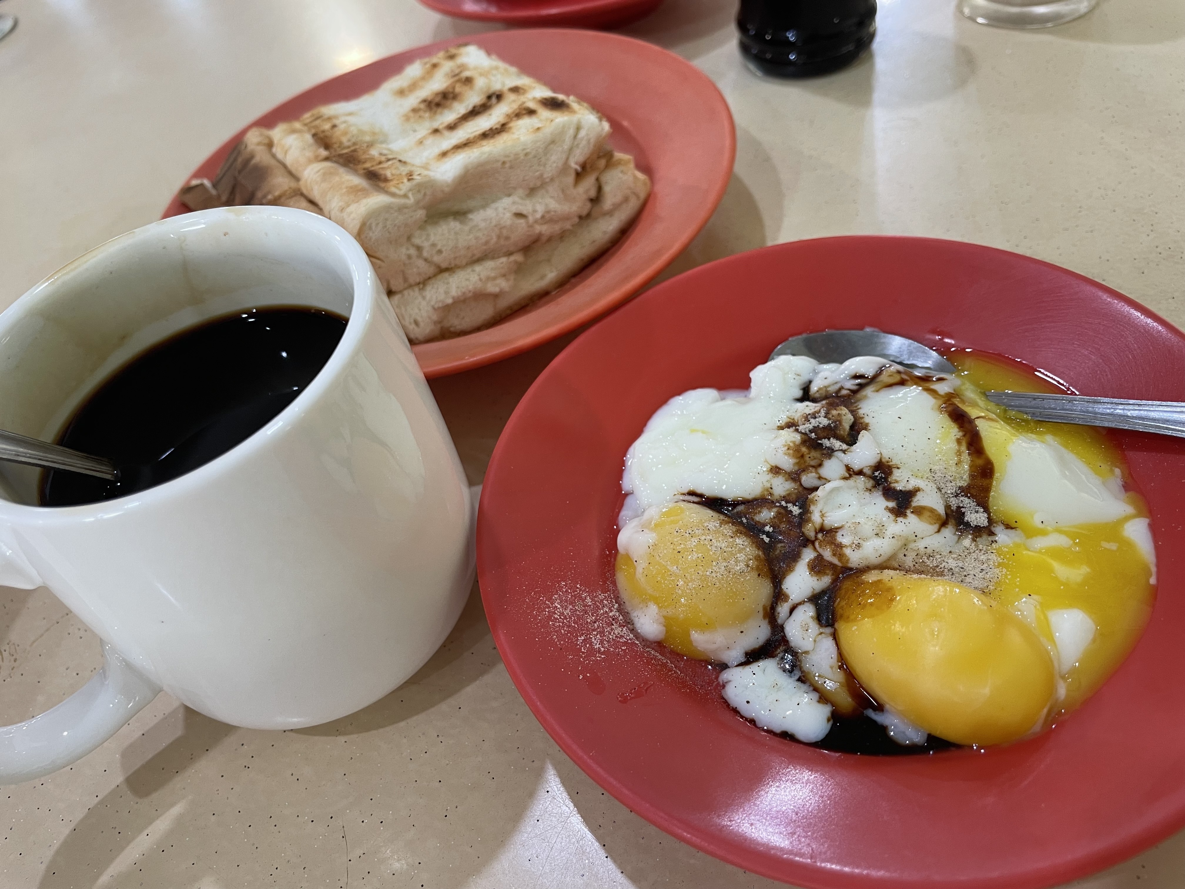 Been 2 weeks since my last cycling workout. So wanna just do a short 50km as warm up. But maybe i pushed a little too hard so by the time i completed SA, my legs were a bit pumped. It was a slow and aching section to Sin Ming road.Was craving for fried carrot cake whole trip, but chef was not there yet. 😩 Settled with kaya set instead. - Derrick