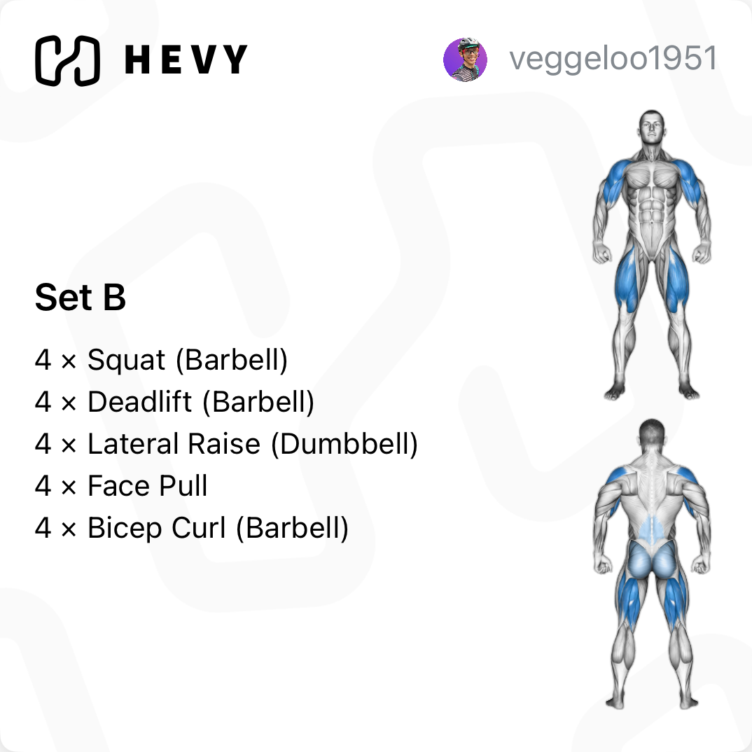 - Face pull: 3sets x9, 60lbs; 1set x9, 70lbs;