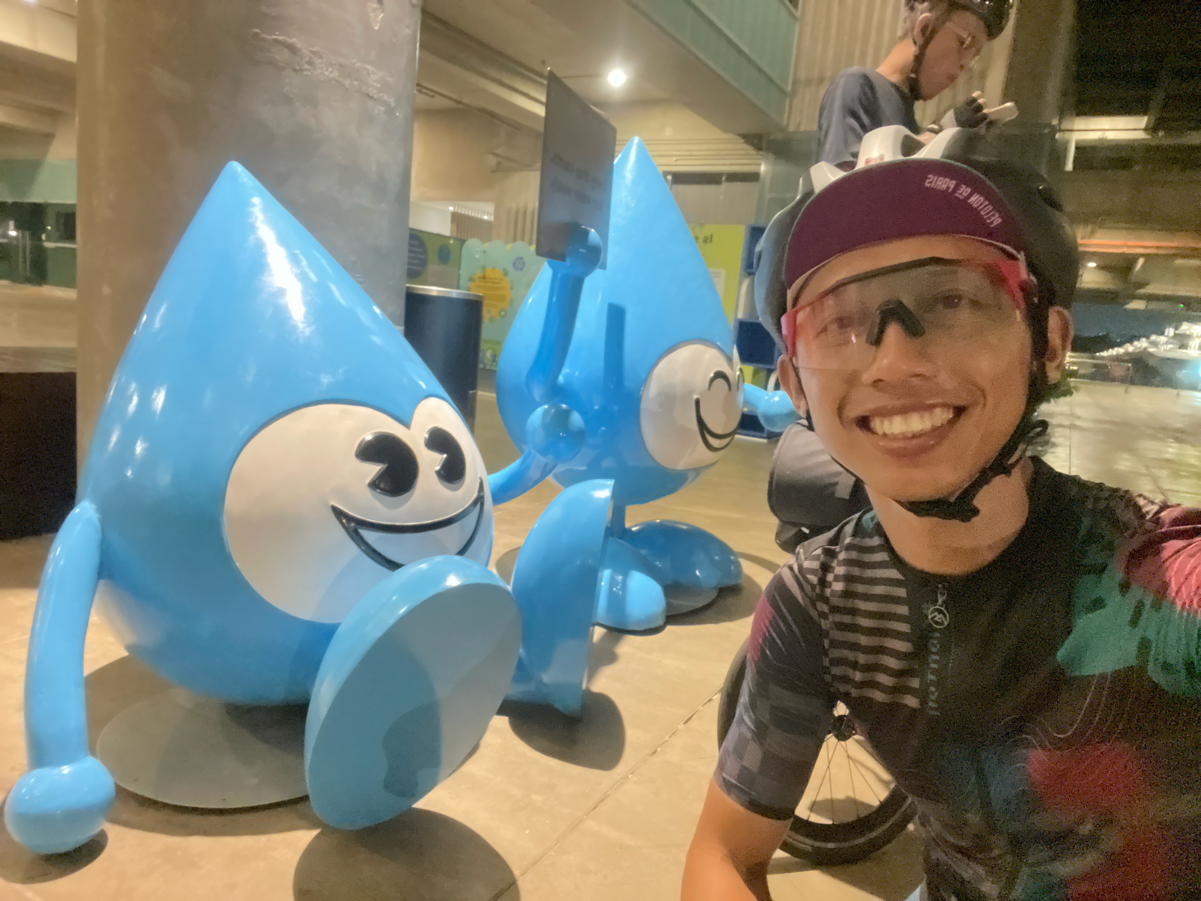 Much more traffic as we near the city area and had to be more cautious as we switched lanes. We advanced at a slower pace and eventually reached Marina Barrage right after midnight to take photos with the cute water-droplet mascots.