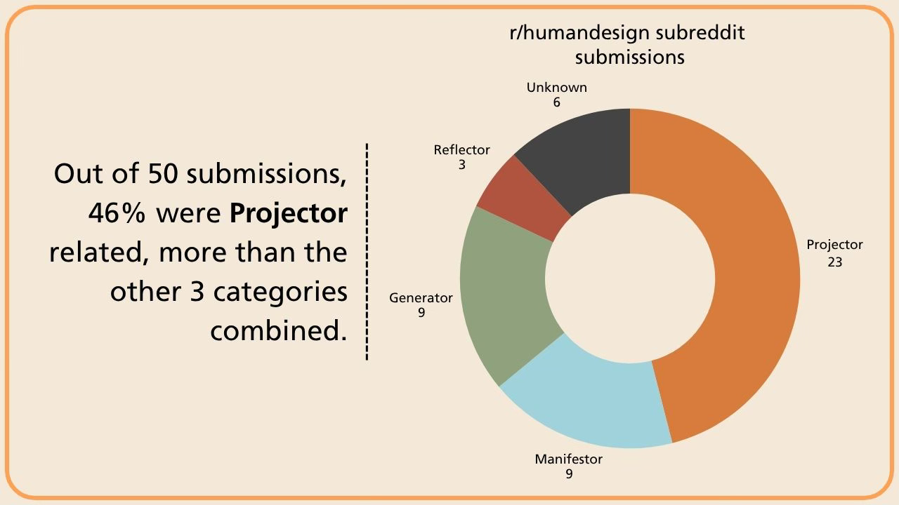 I’ve followed the r/humandesign subreddit for about a year, and I’ve distinctly noticed that one Type (essentially a meta-archetype used in Jovian Human Design to make HD profile discussions easier) posts a lot more questions and discussions than the other ones: Projectors.
