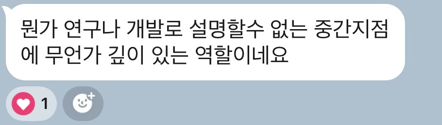 연구나 개발로 설명할 수 없는 지점에 있어요. 그러나 깊이가 결코 얕지는 않아요. 연구와 개발의 골디럭스 존을 어줍잖게 찾는건 아닌거에요. 둘의 매력만을 취한, 더 높은 차원의 무언가를 향해 올라가는 것이에요.