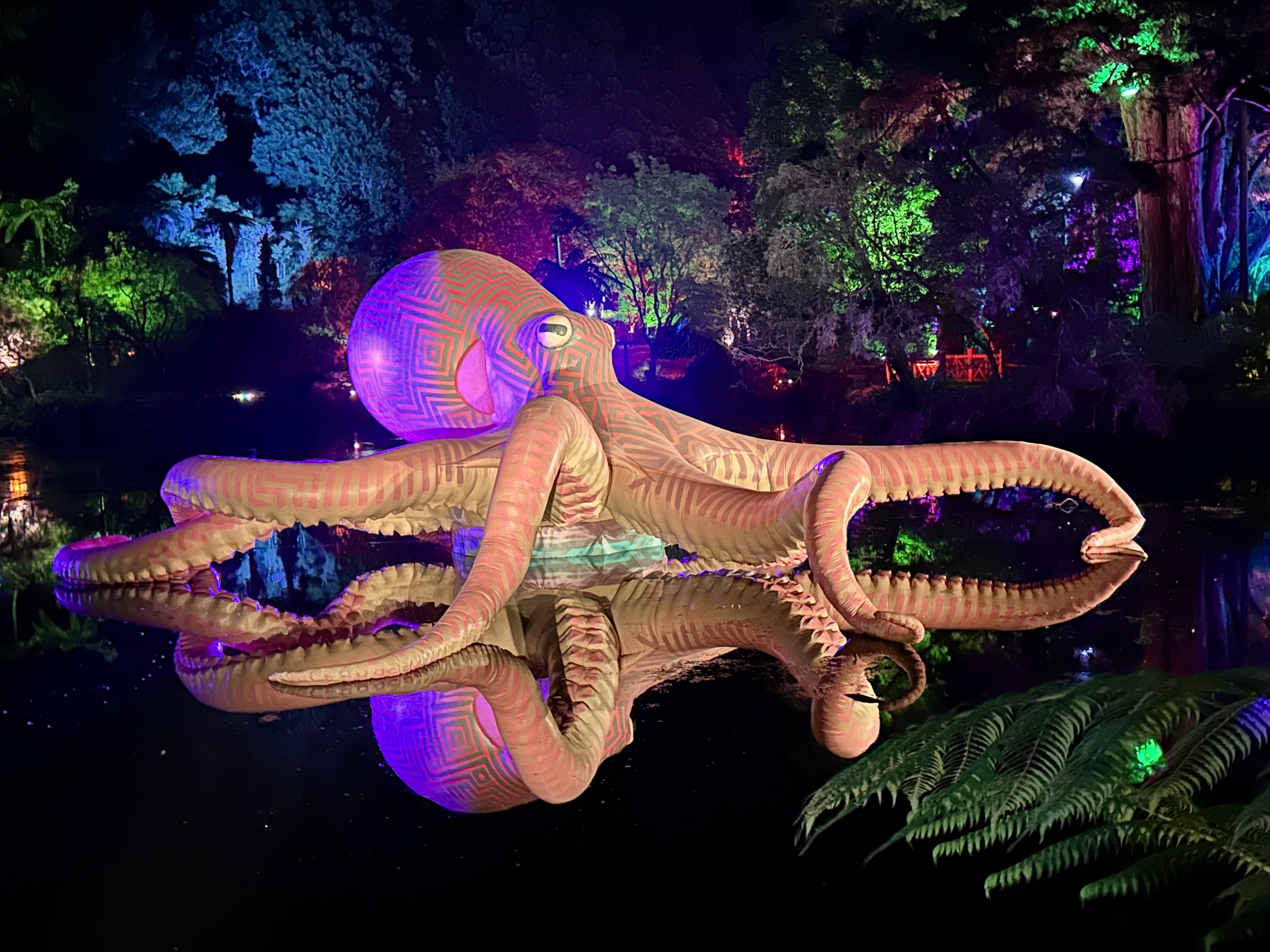 We had heard about the Festival of Lights many times but were never there at the right time. We made it this time so took a walk over to Pukekura park to see the sights. Scary sculpture in the pond! 🐙