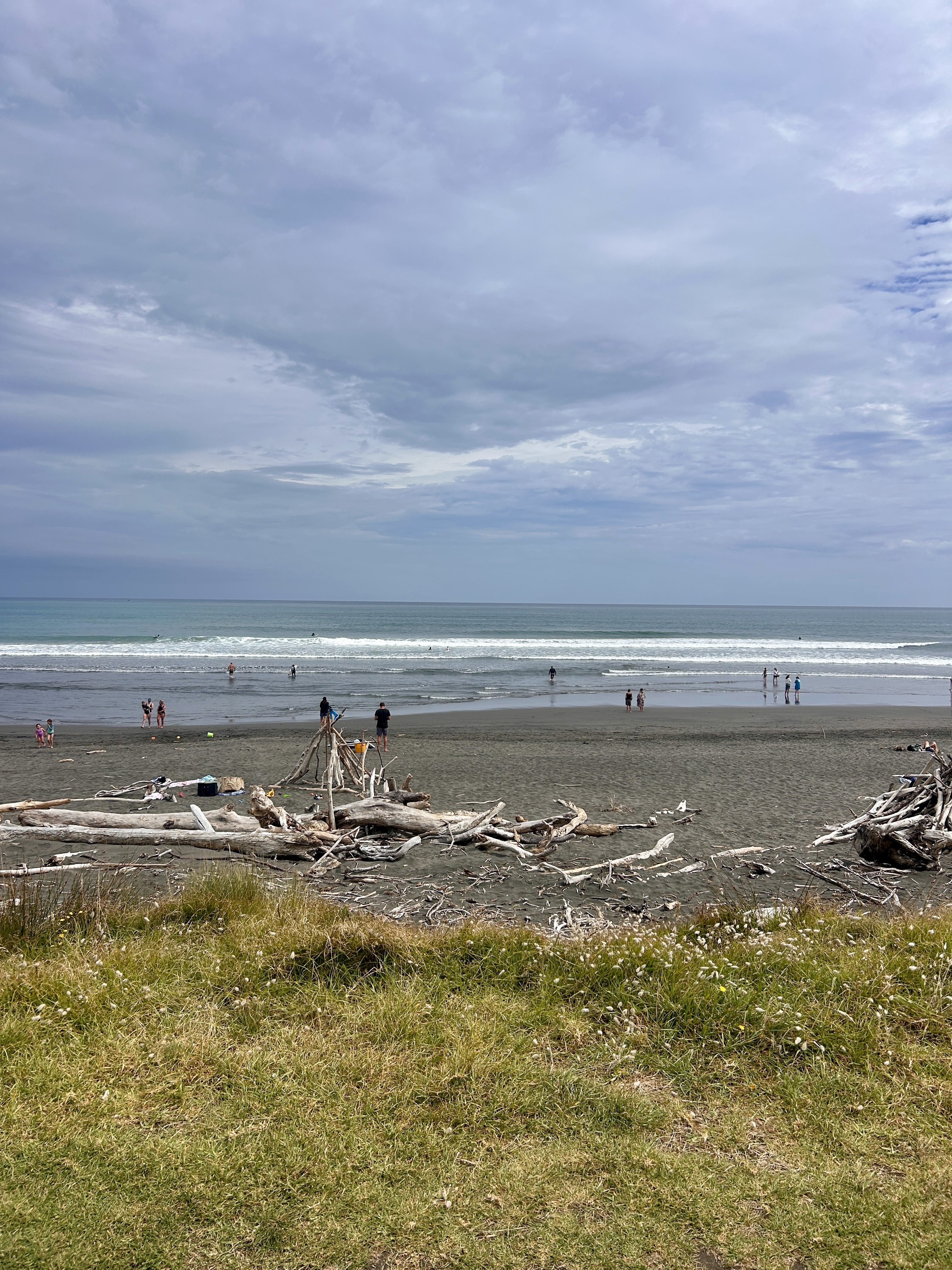 We flew to New Plymouth the same day. Cows (and sheep!) get oceanside property in New Zealand. 🐮