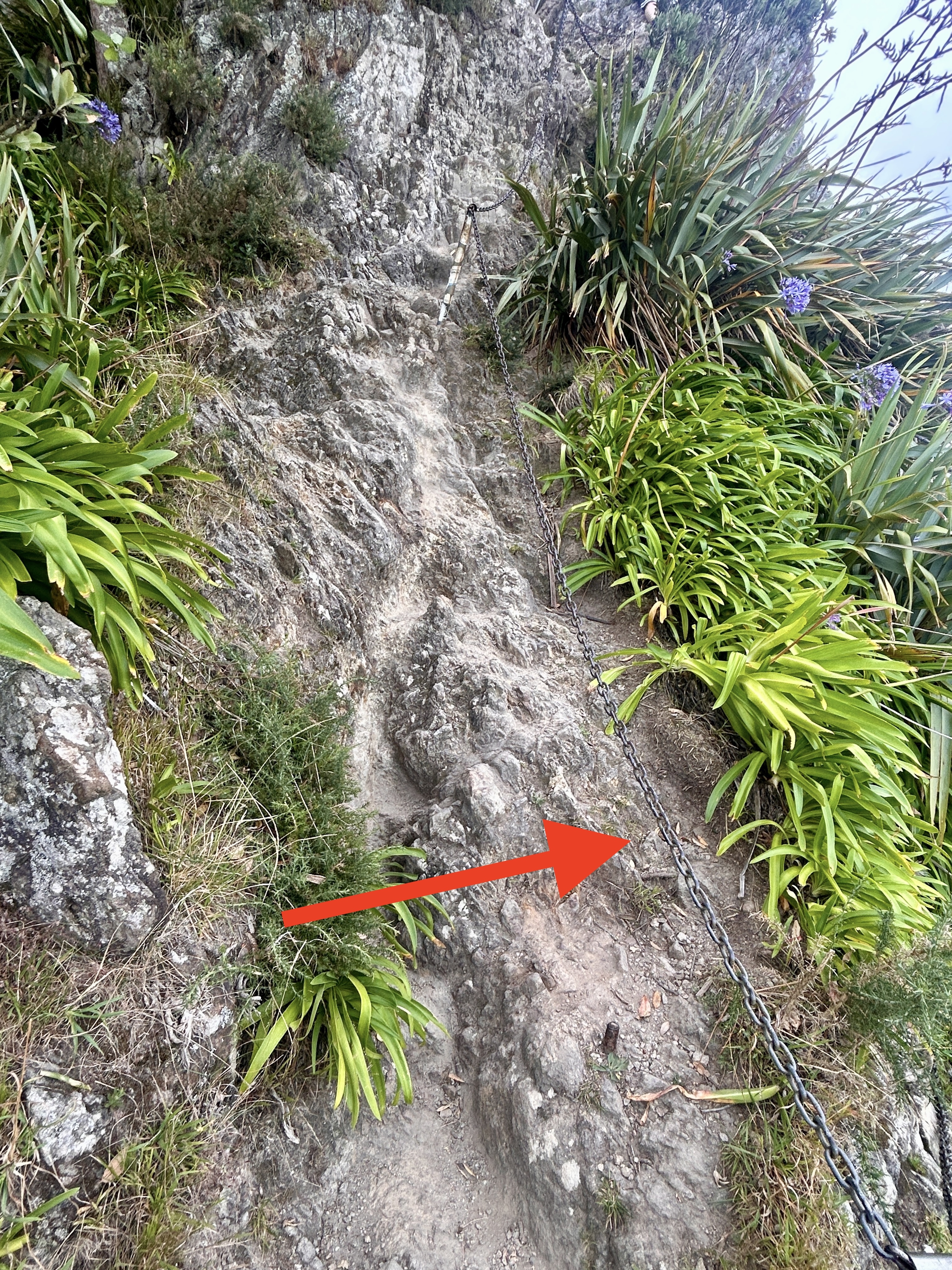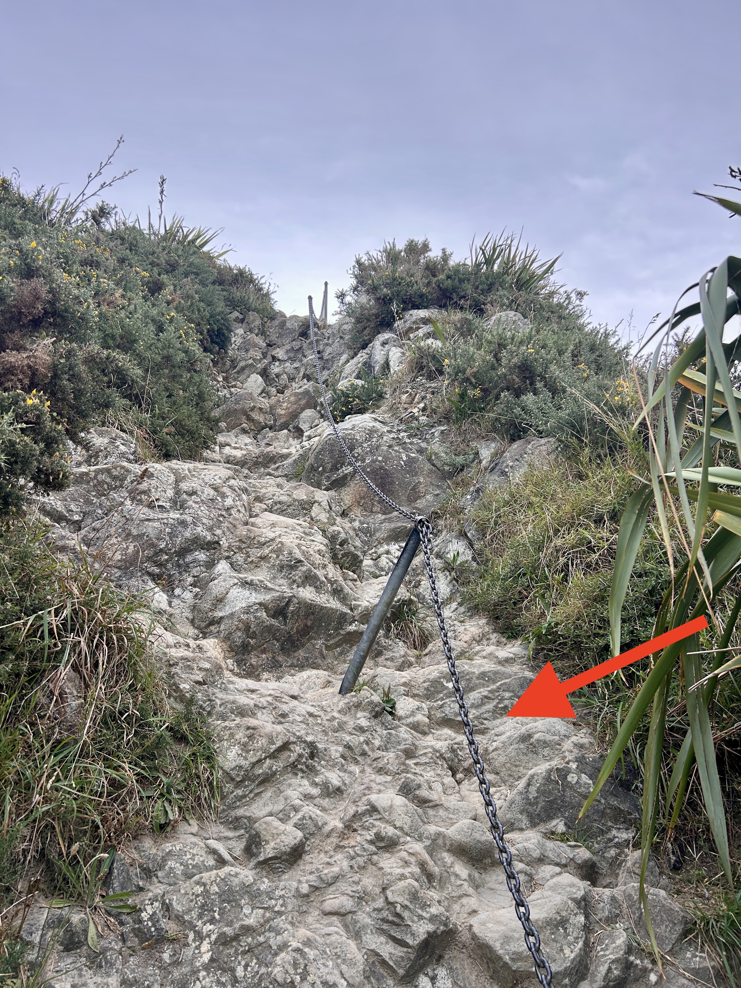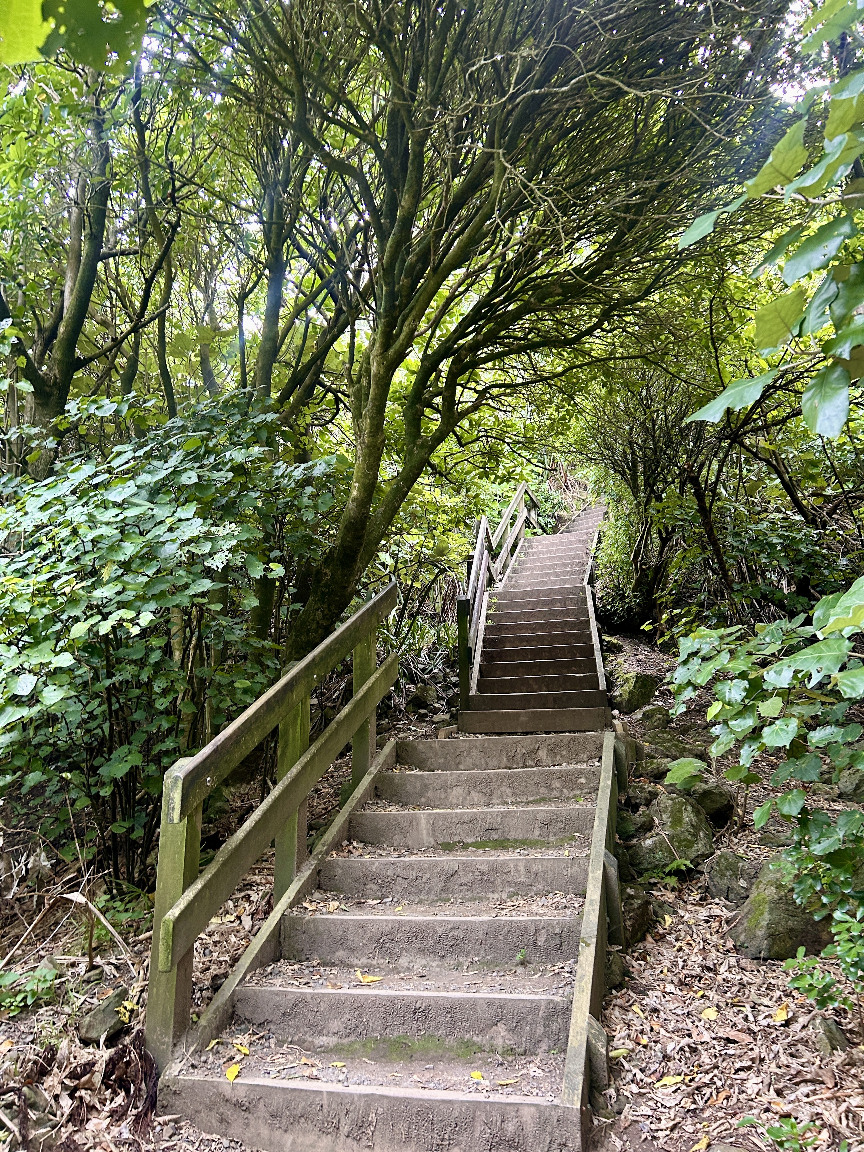 The weather was perfect to so headed over to Paritutu to climb the 156 m / 512 f to the top. It starts with stairs ....