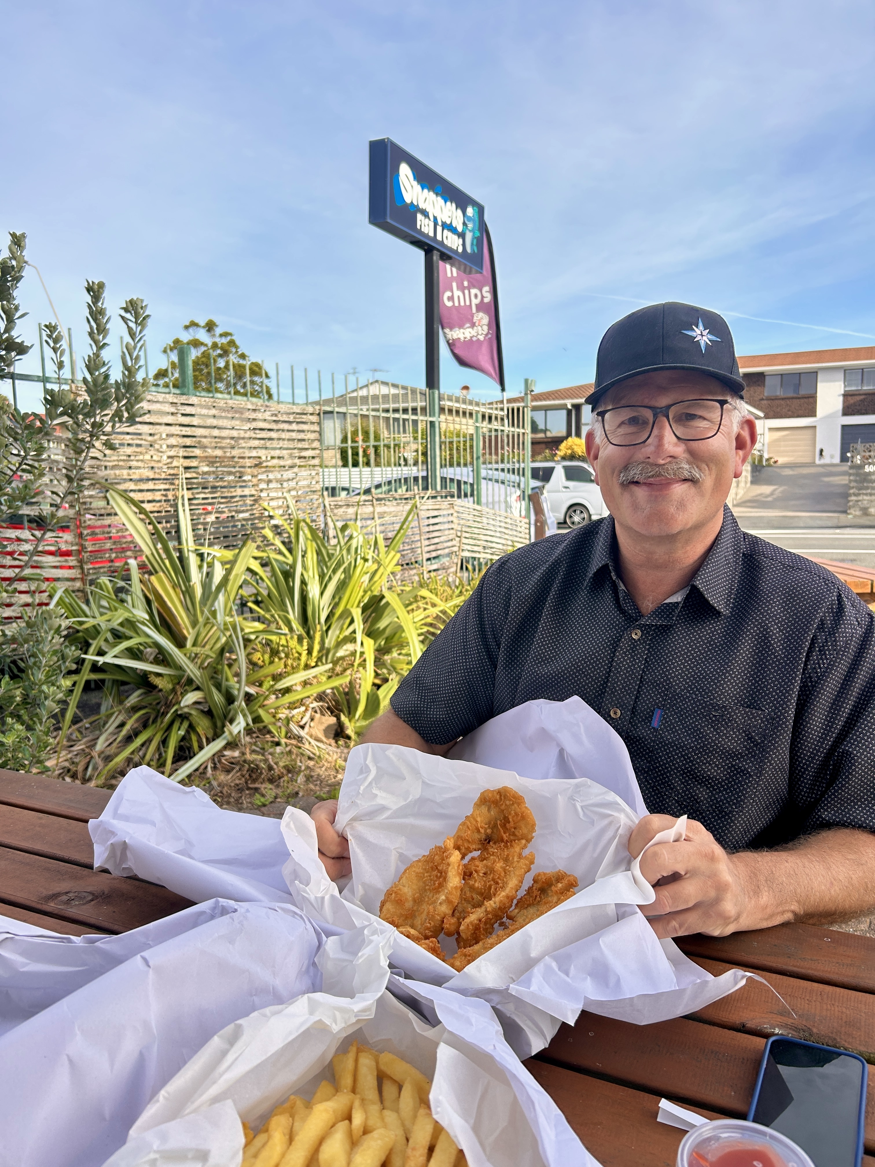 Steve enjoyed fish and chips from Snapper's. 🐟