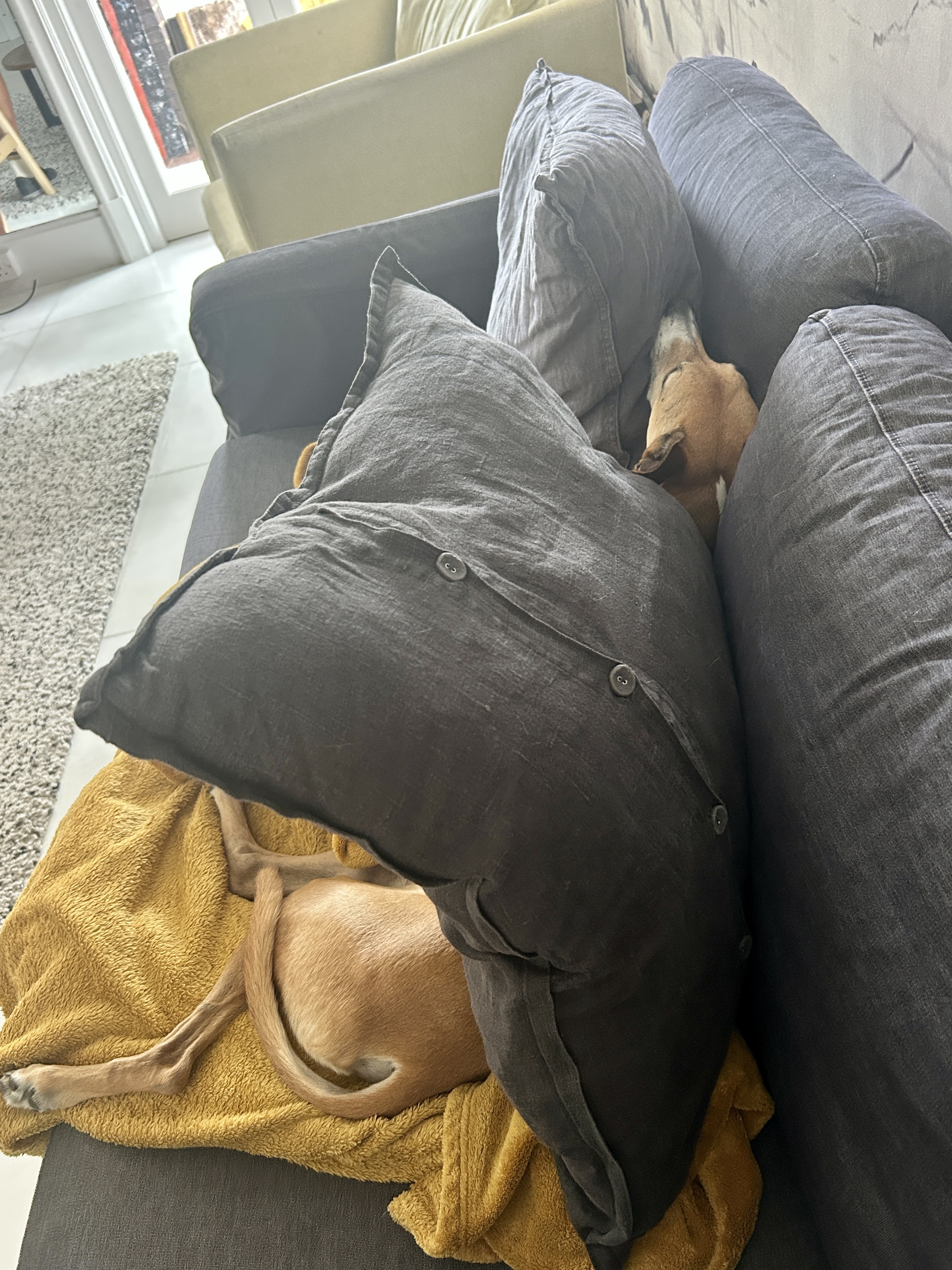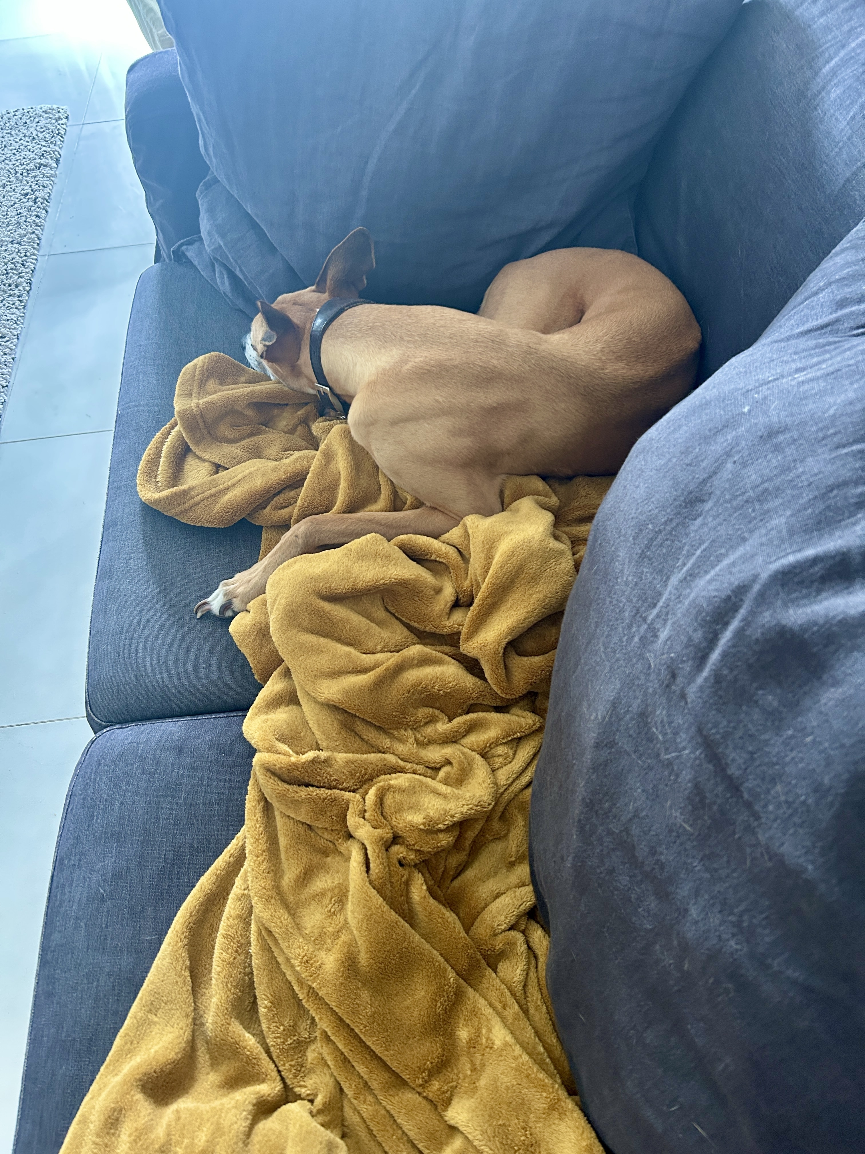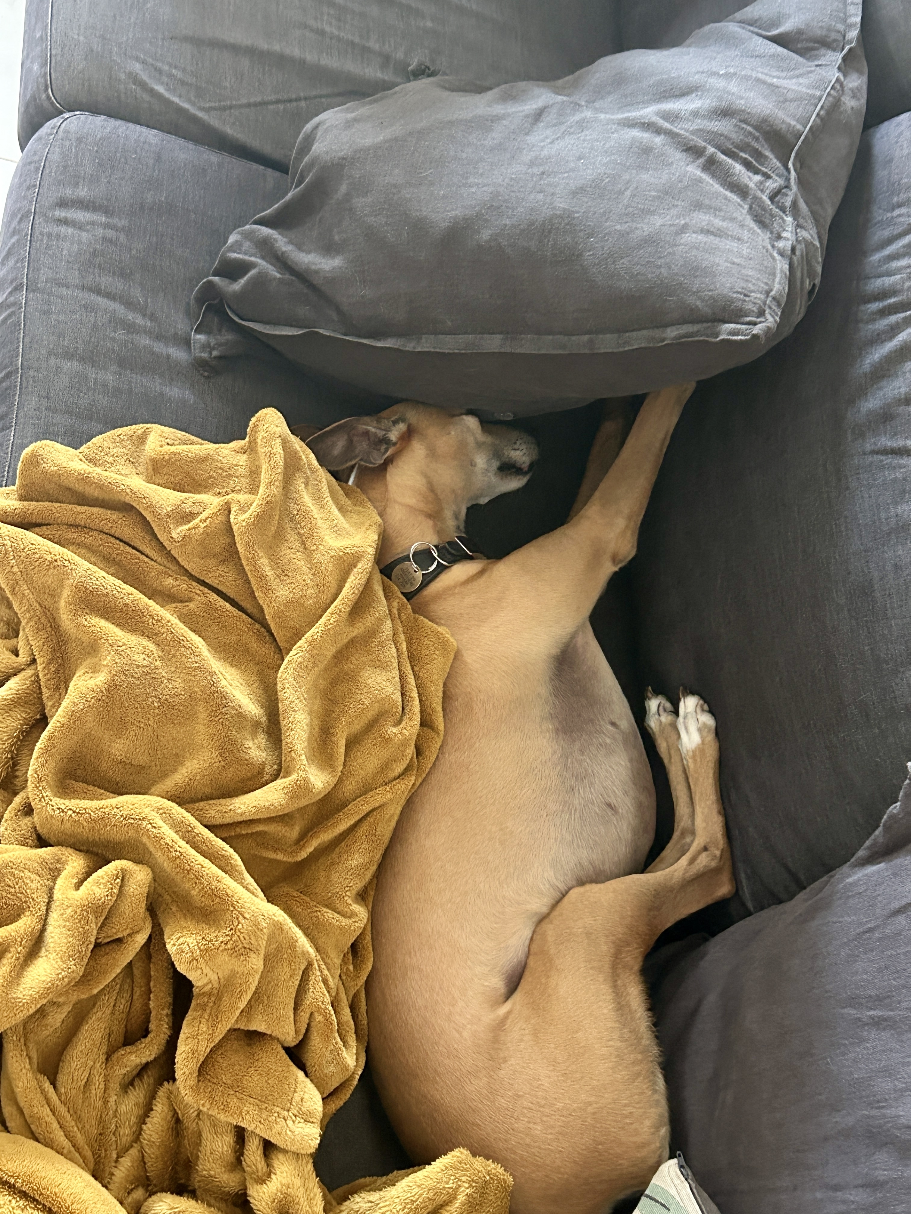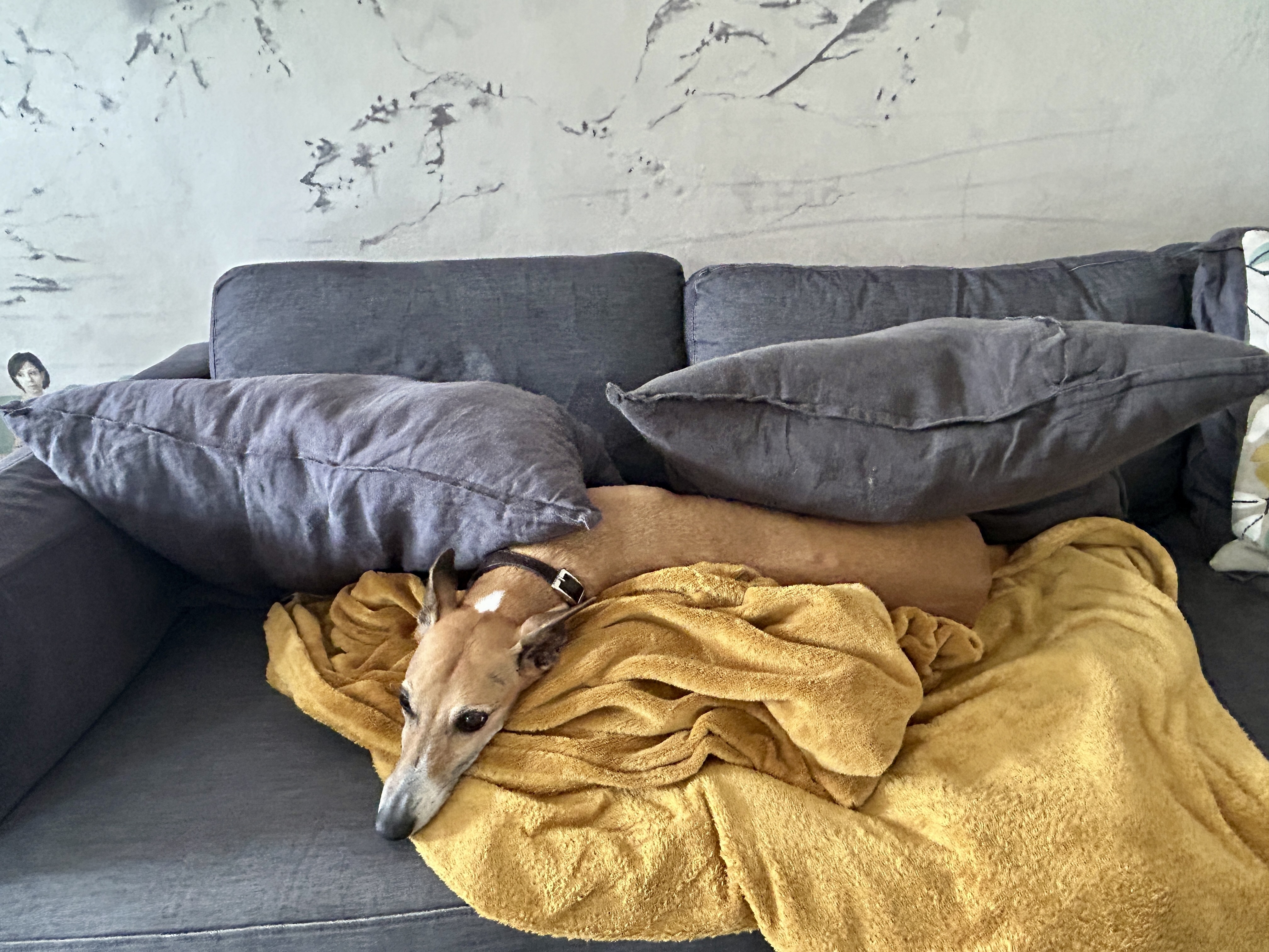 This is a focus post full of images of Louie, the very cute whippet, and his sofa lounging. If that doesn't sound interesting, I would skip it. 🐕