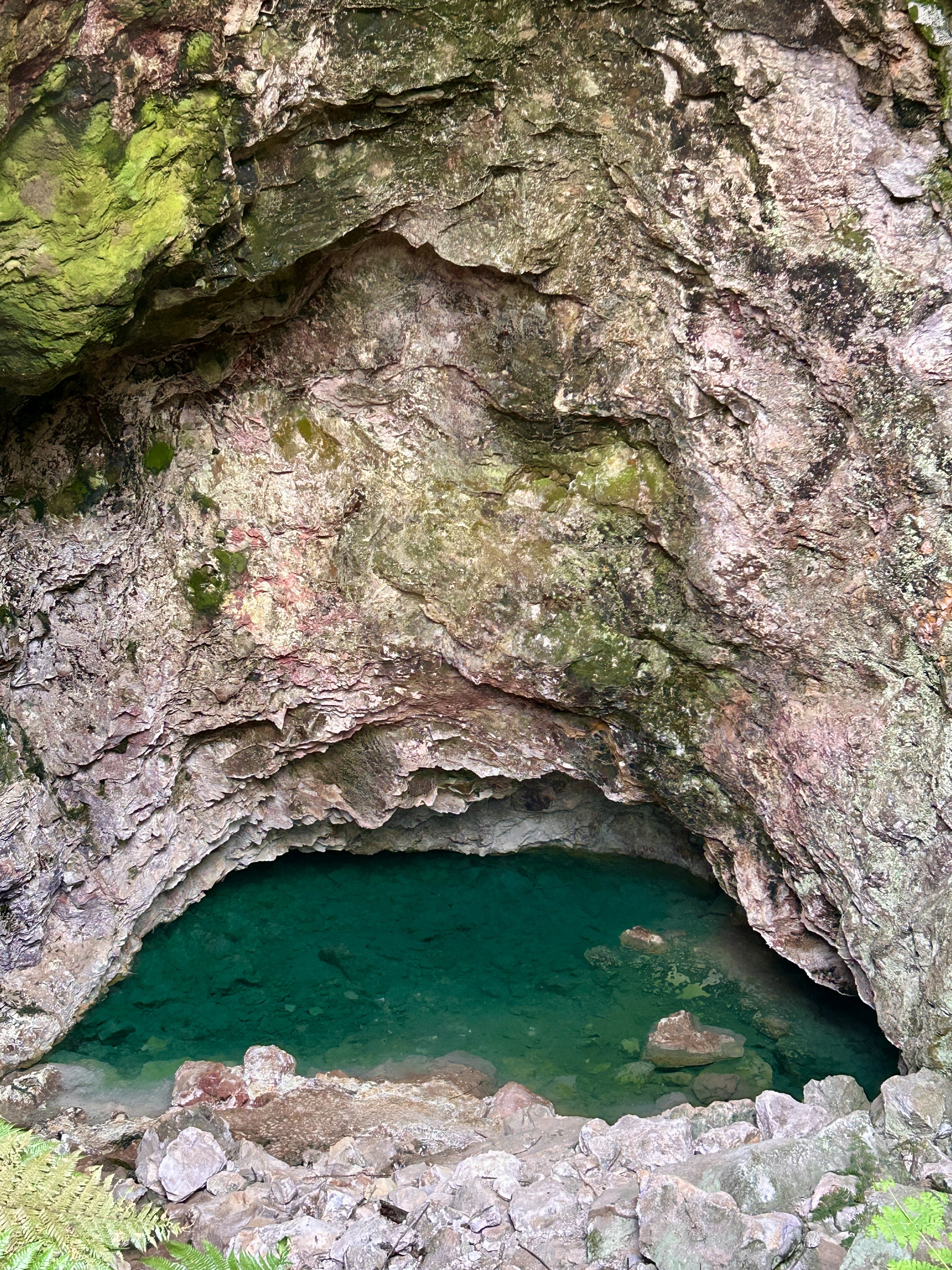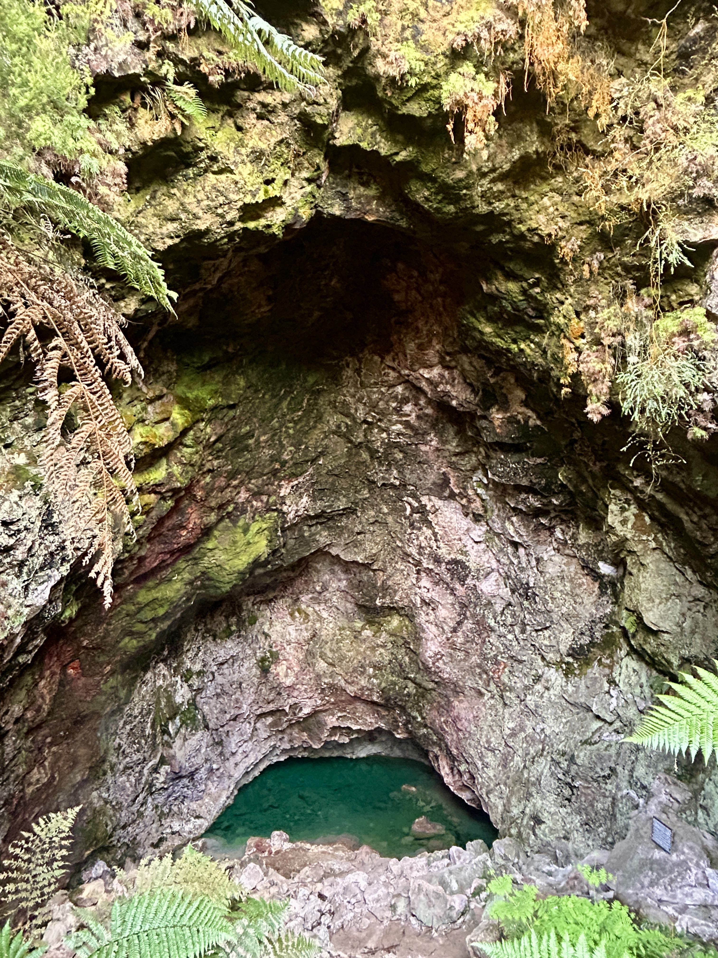 The Ruatapu Cave had a spiritual feel. The cave extended more than 35m / 115f down to a hot pool called 'Waiwhakaata' (Pool of Mirrors). It was one of only two known caves in the world located in a geothermal field. The beautifully clear pool contained warm, acidic water. 😳