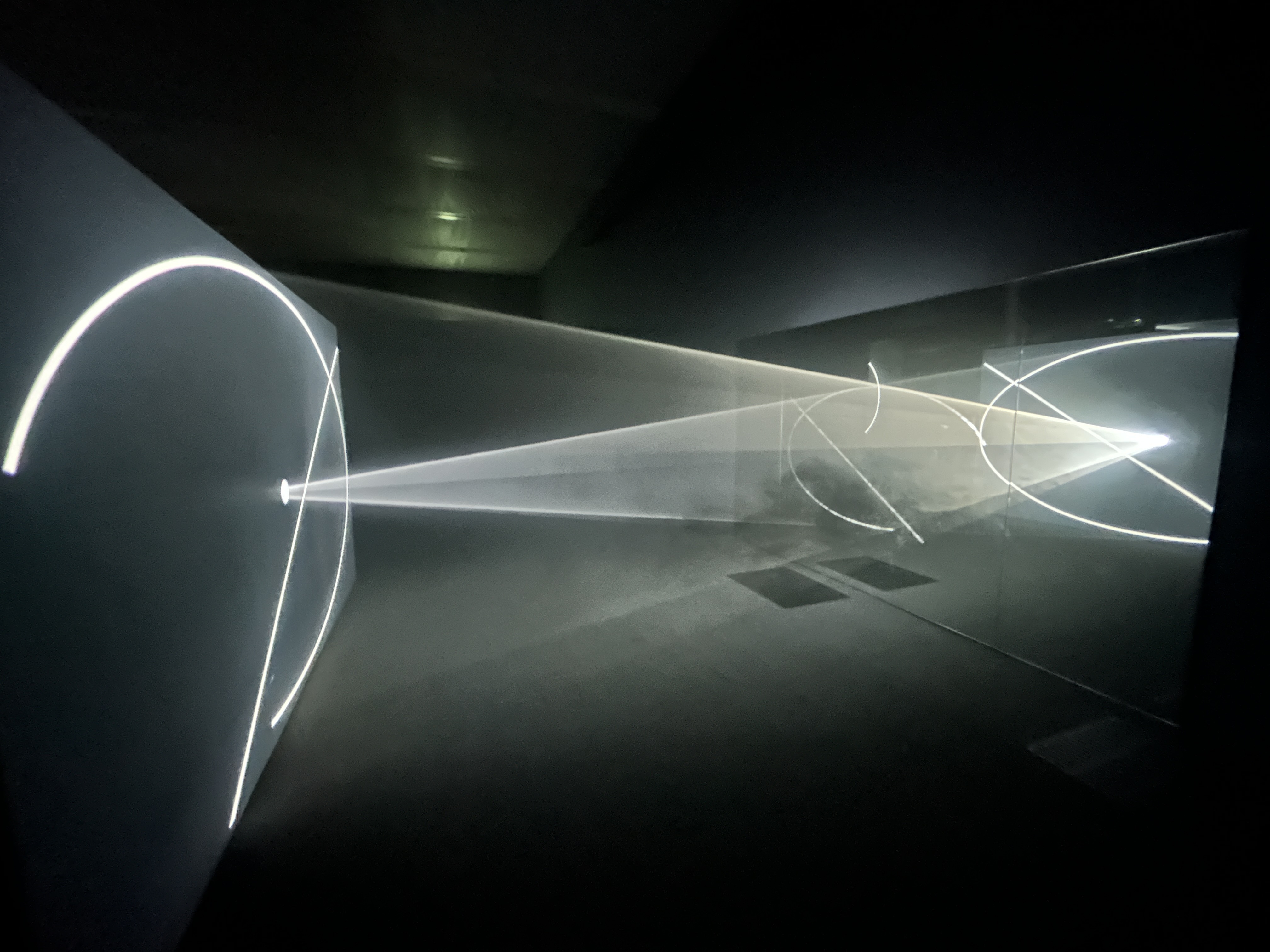 Beams of light projected through a thin mist create large three-dimensional forms in space, which slowly shift and change. As you move through these translucent sculptures of light, you’ll create new shapes and discover your own mesmerising perspectives.
