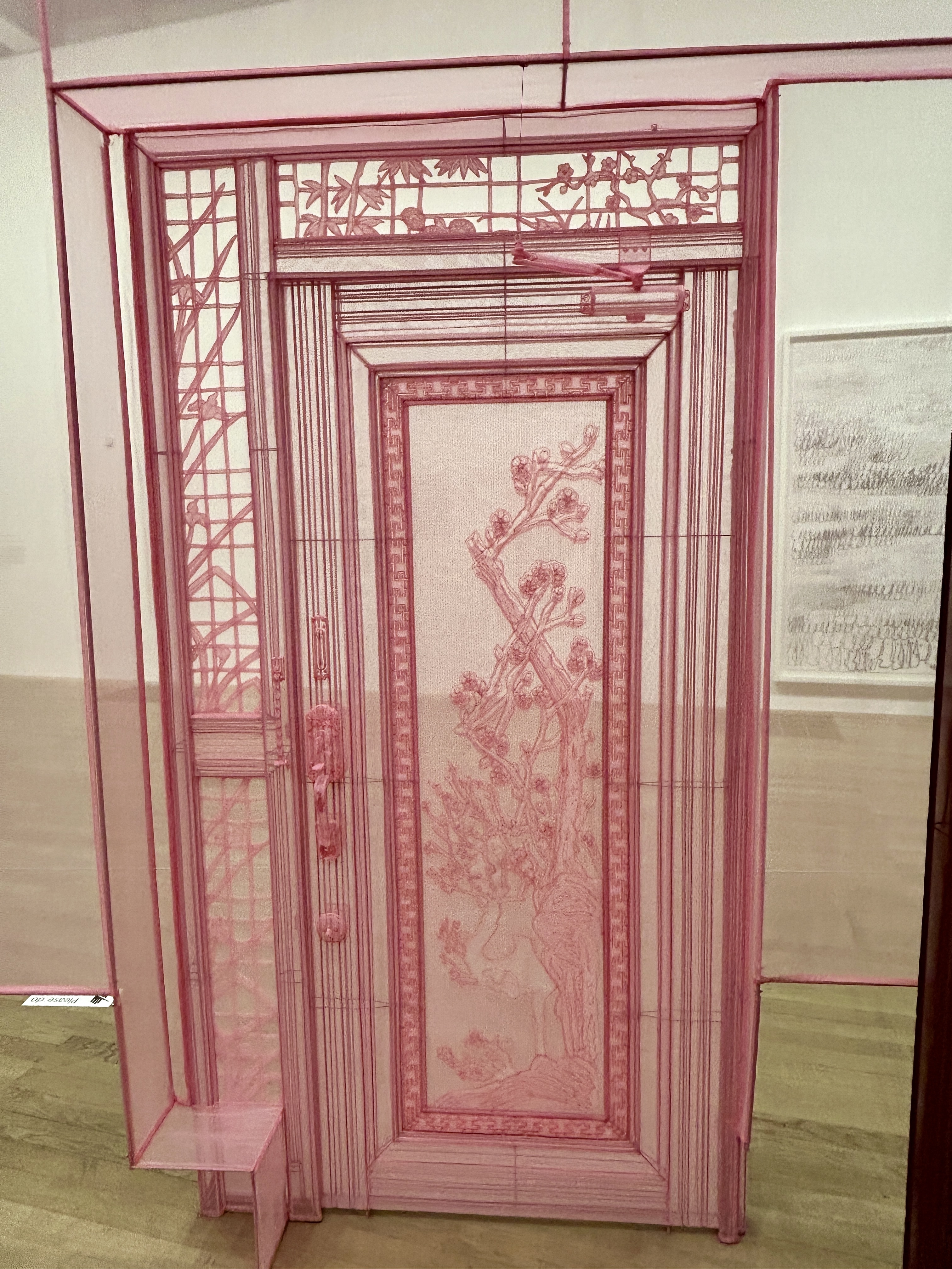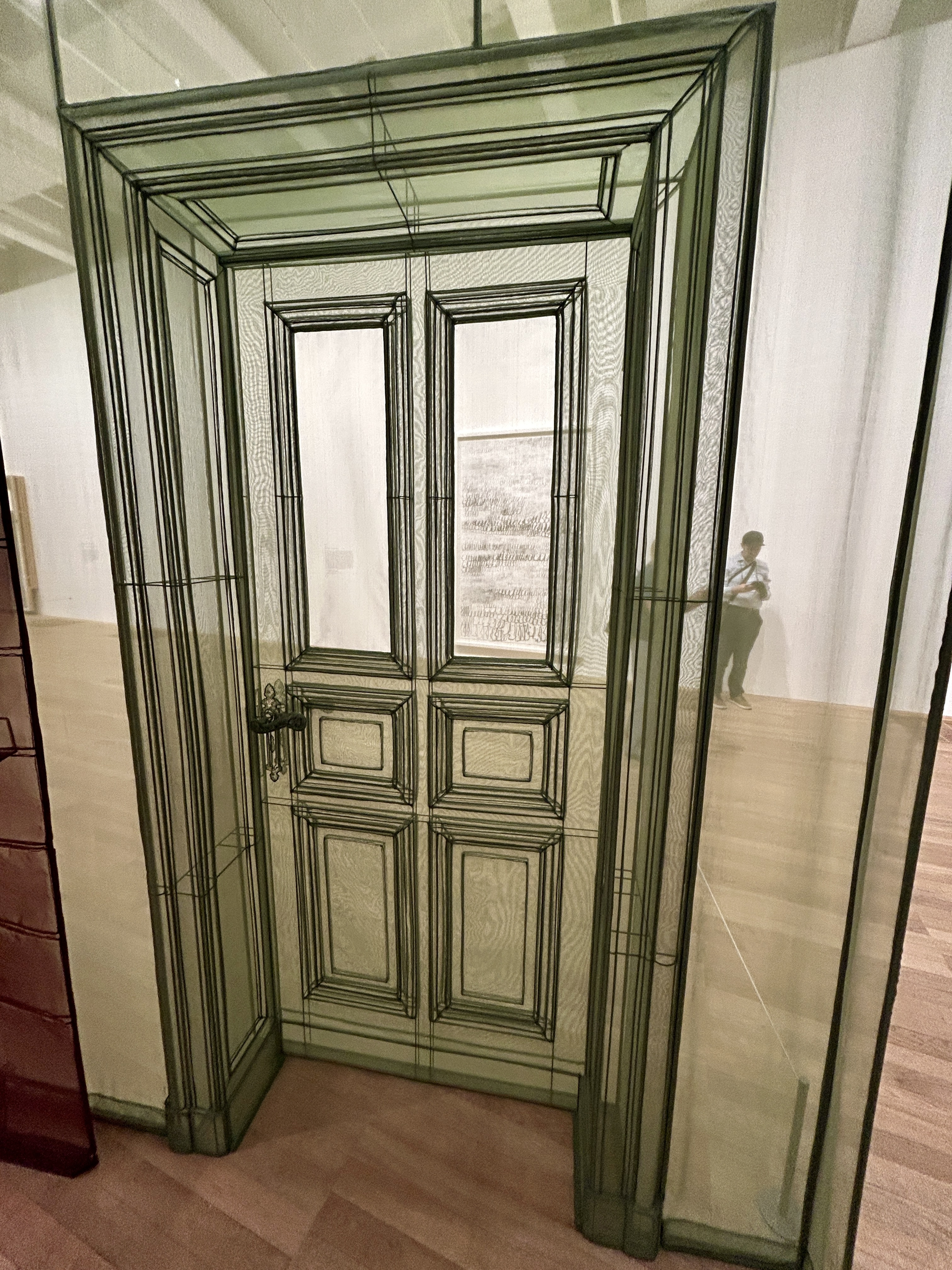 The artist had rubbings and castings of doorknobs, electrical outlets, light fixtures, smoke alarms and so many elements from several of his homes which he recreated in sheer fabric. It was truly amazing in detail!