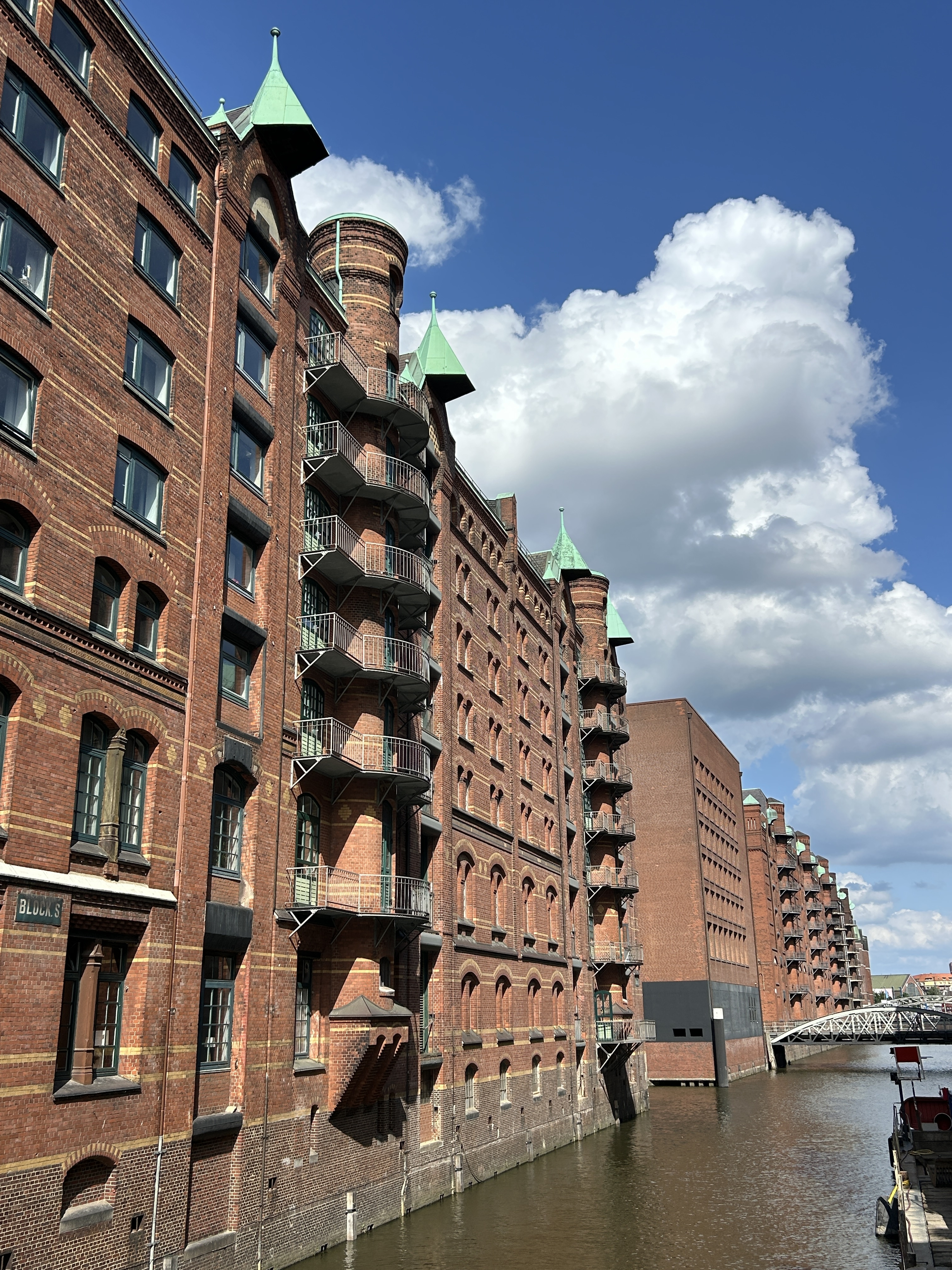 We also toured the warehouse district (the Speicherstadt) by boat and on foot. This was a free trade zone at one point and was about 1.5km long. It was awarded UNESCO World Heritage Site status in 2015. ๐