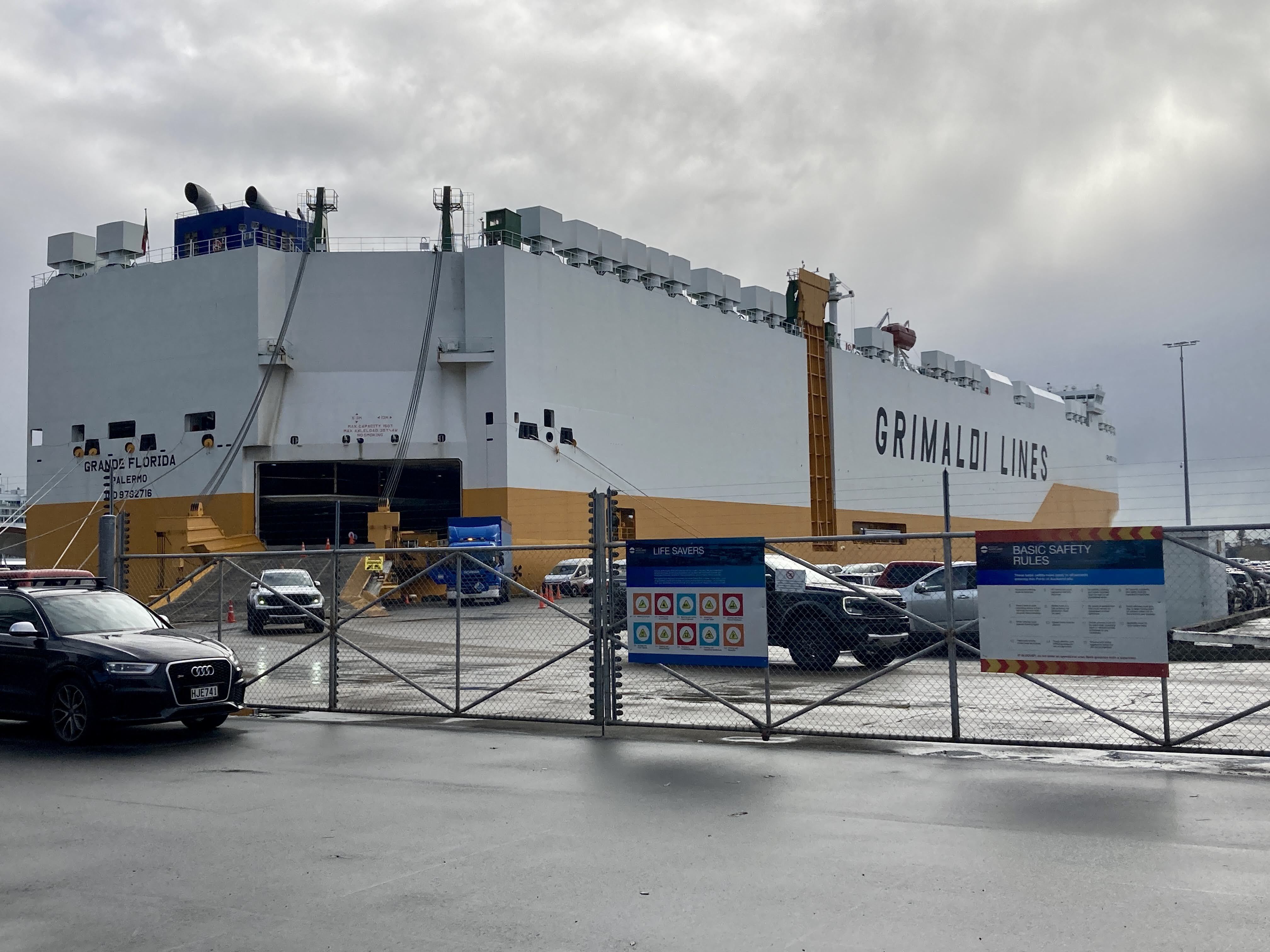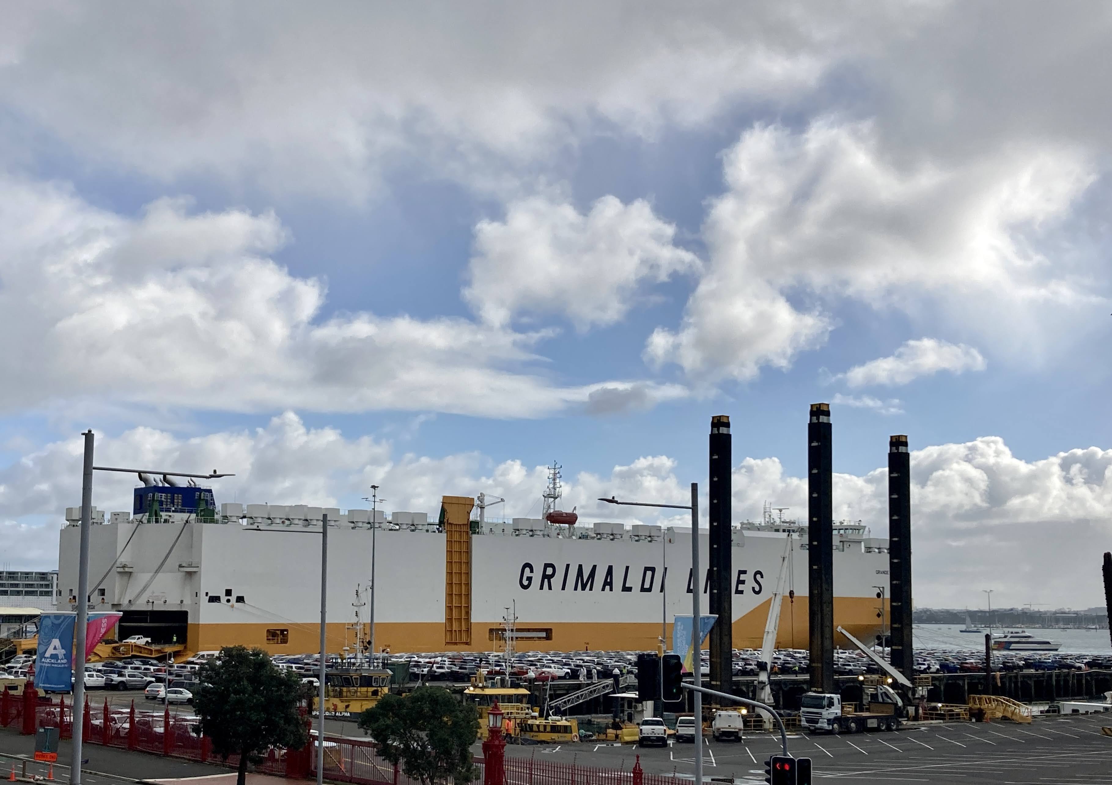 Got to see a vehicle transport ship docked in downtown Auckland. It was quite a project to get the cars and trucks off the ship and then ferry the drivers back onto the ship for more. Great use-case for an electric option! โก๏ธ