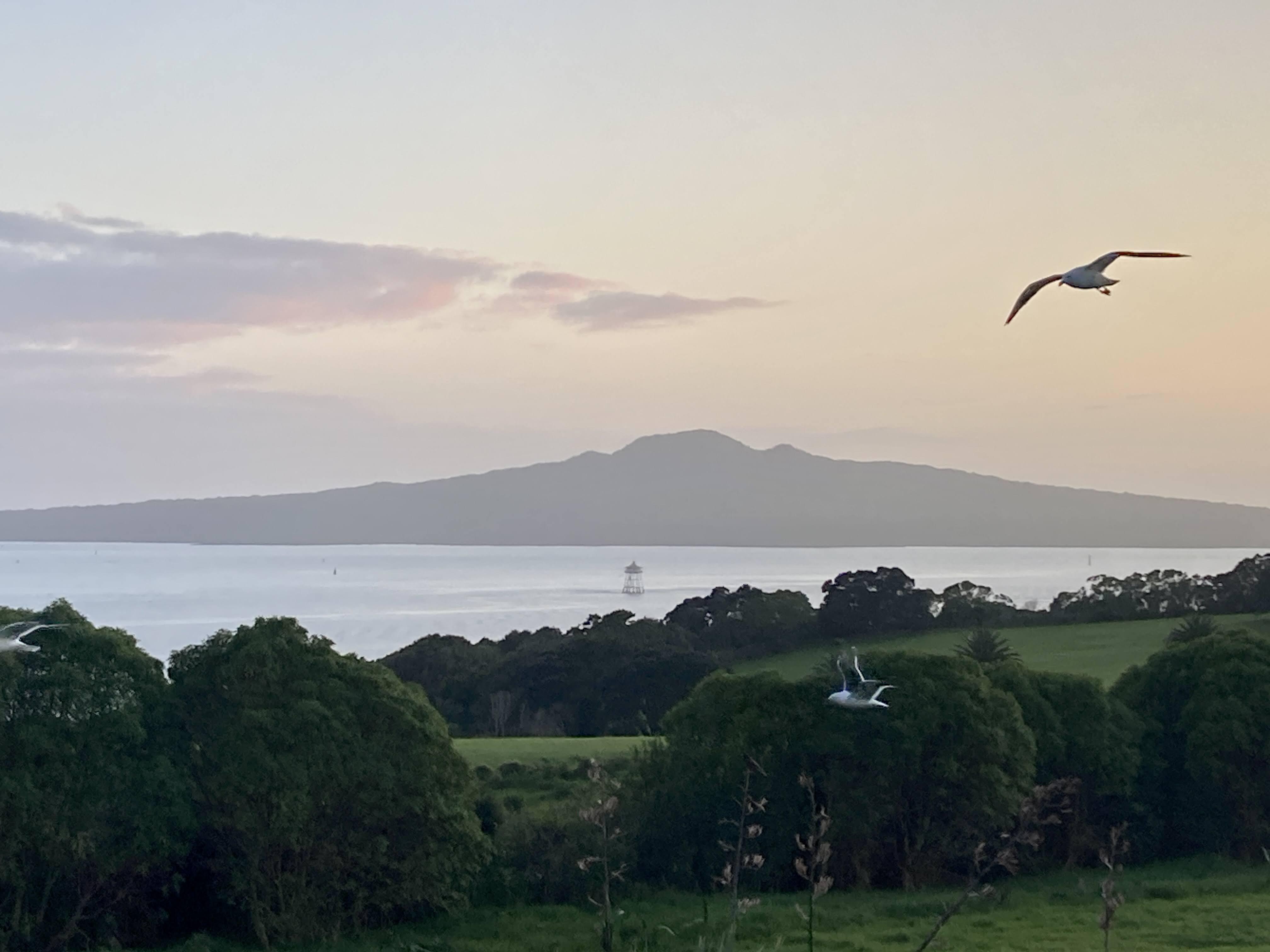 Morning view of Rangitoto Island, across the bay from Auckland. According to Pure New Zealand: Rangitoto is the youngest and largest of Auckland's 48 dormant volcanic cones and is home to the world's largest pohutukawa forest.