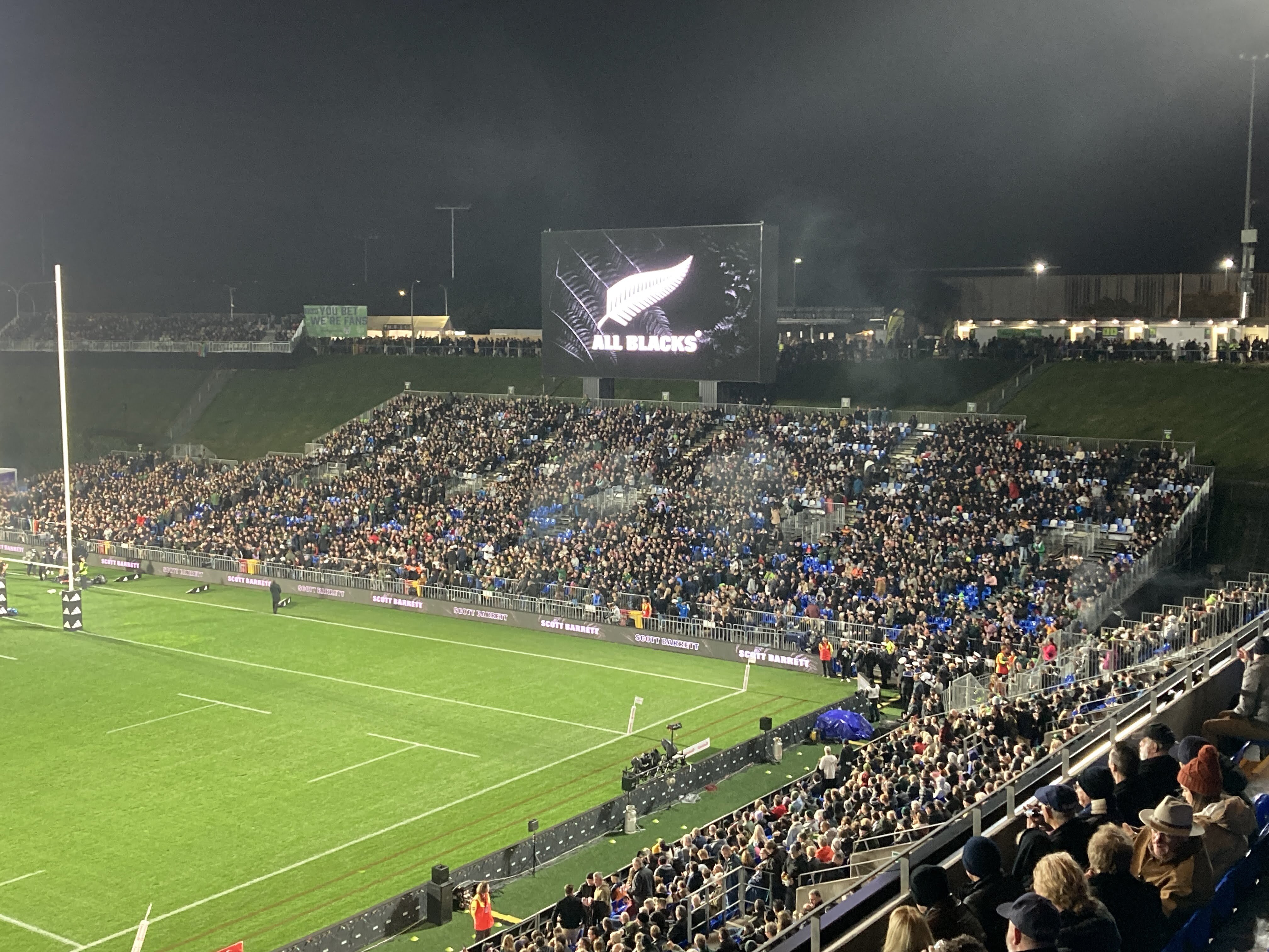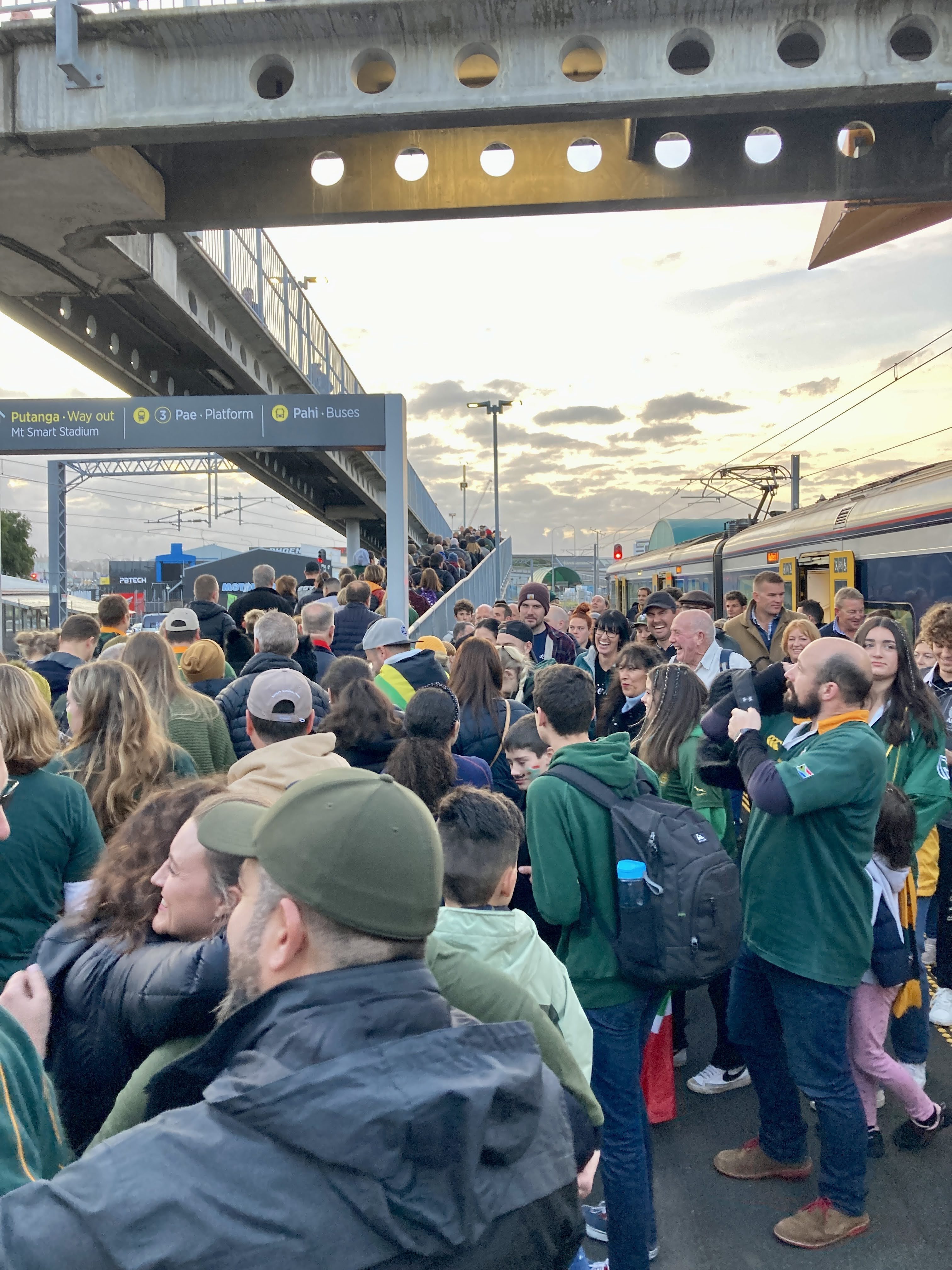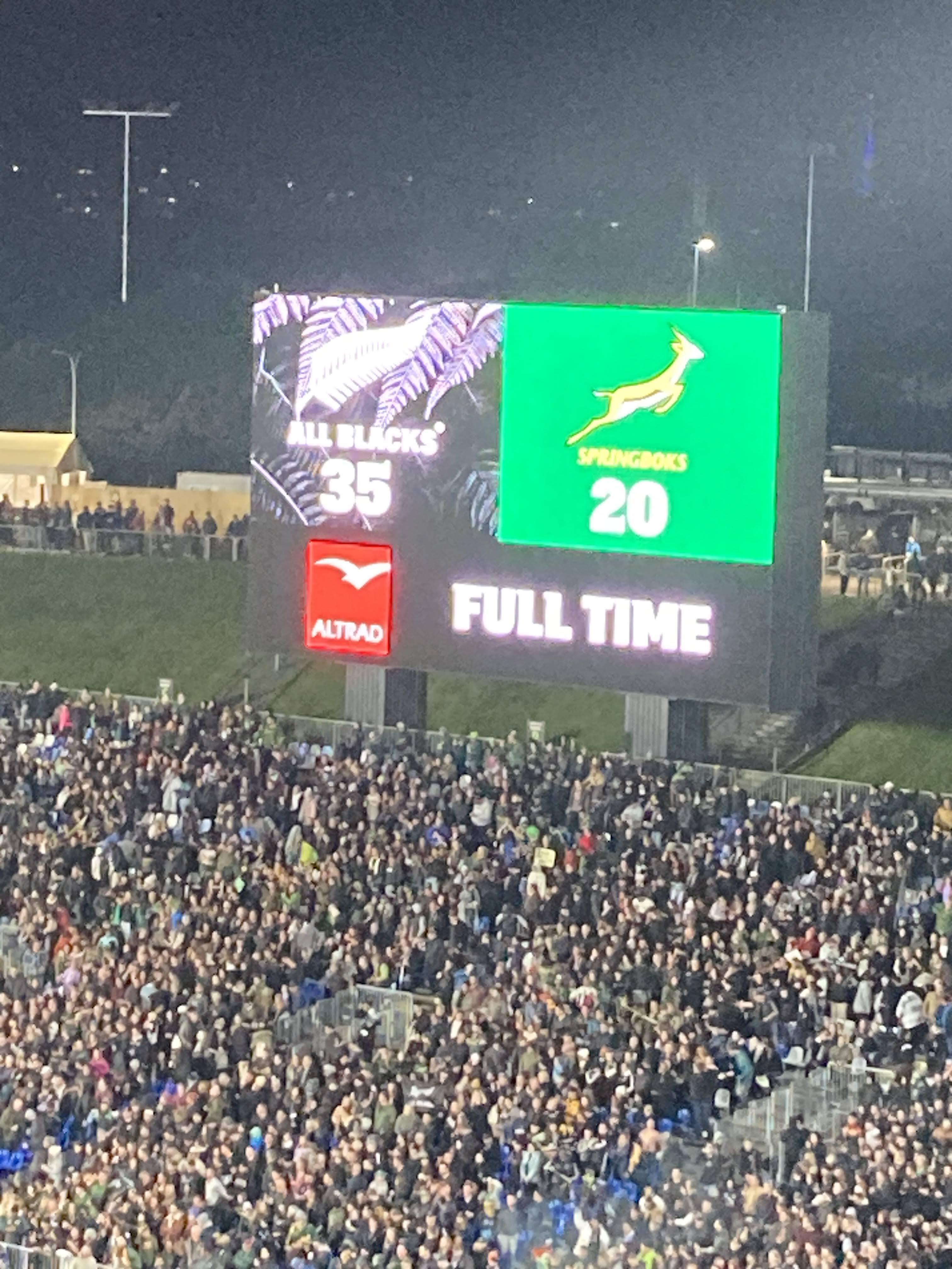 We were two of the 31k+ people who saw the All Blacks play the South African Springboks. We drove to a nearby train station and joined the crowds. So much easier than driving to the stadium. Steve likened it to a CU football game in terms of size. The half time show was a local middle school dance group which was very charming. ๐
