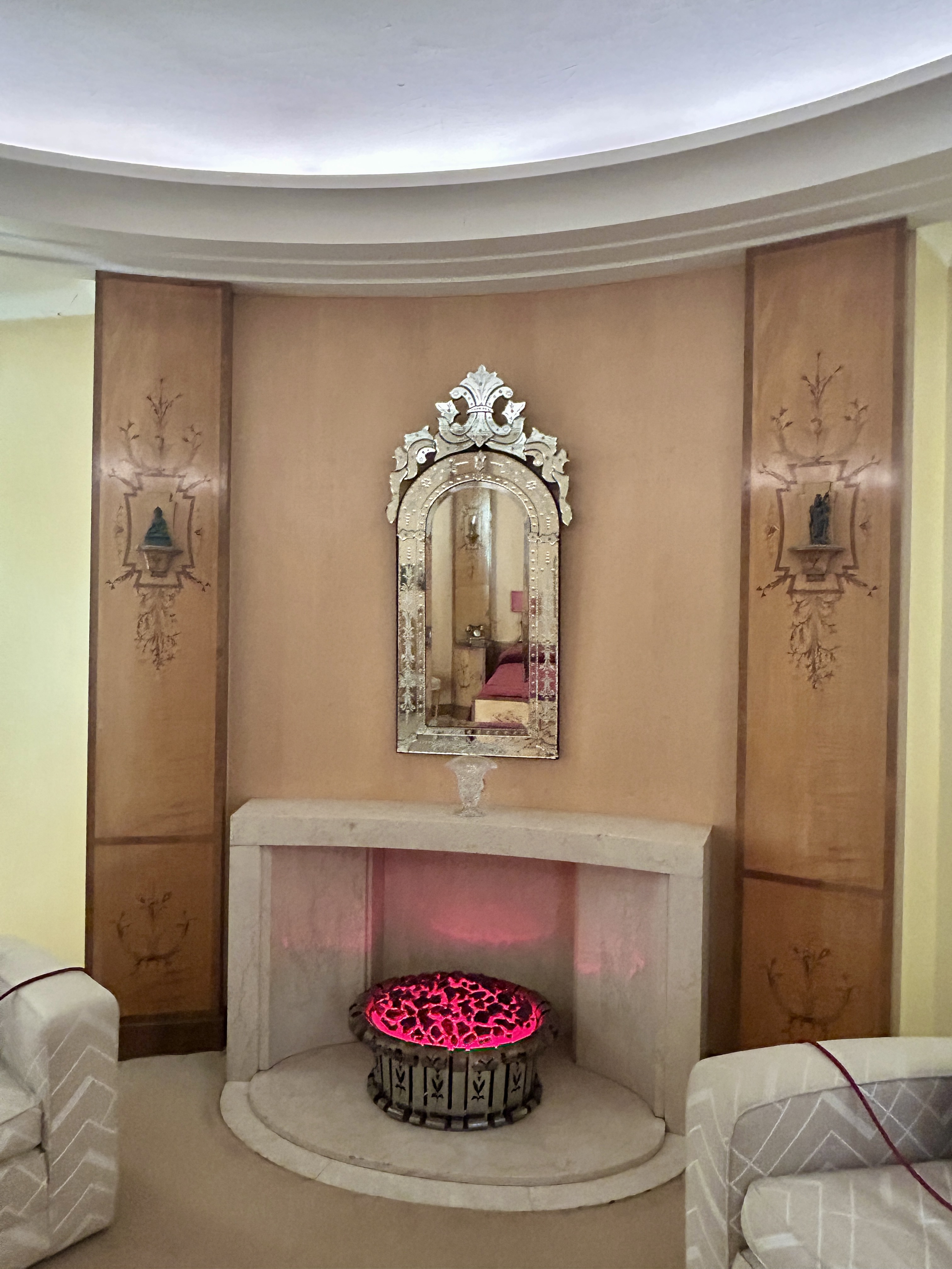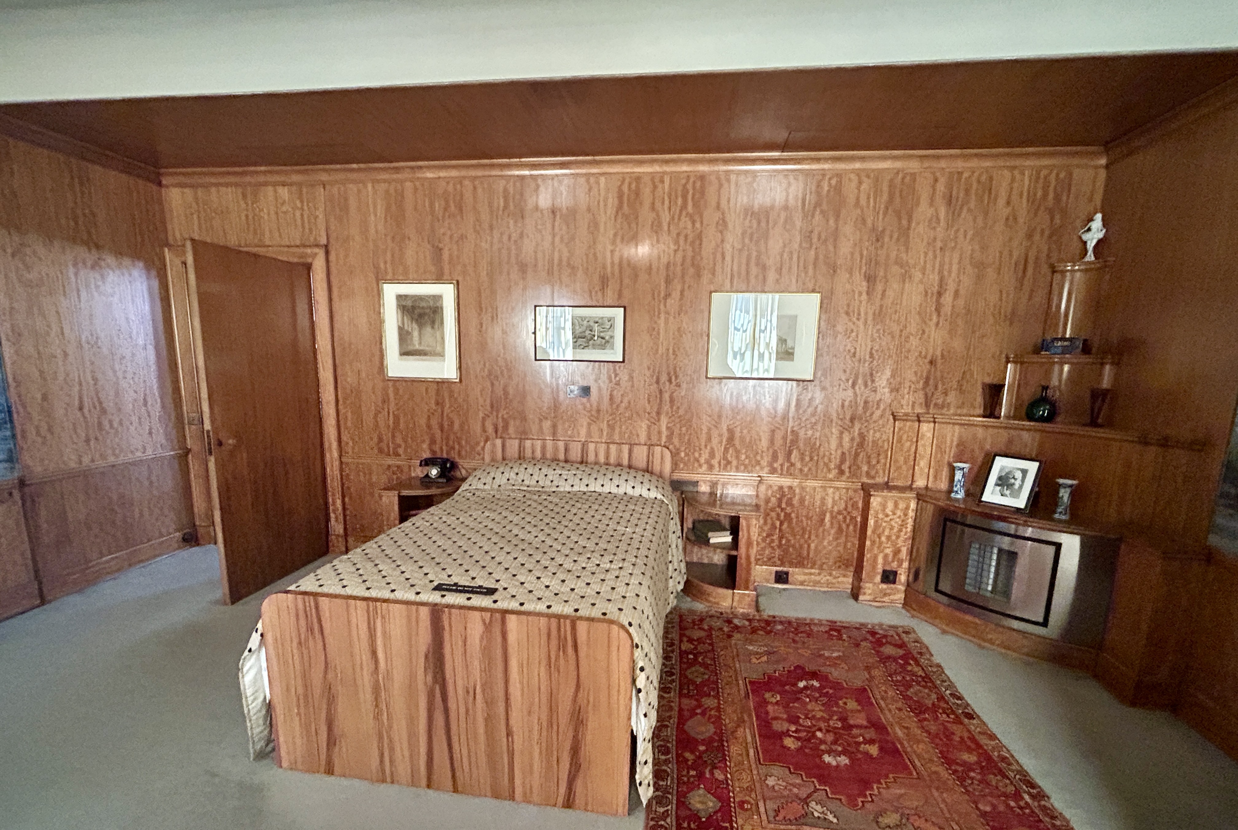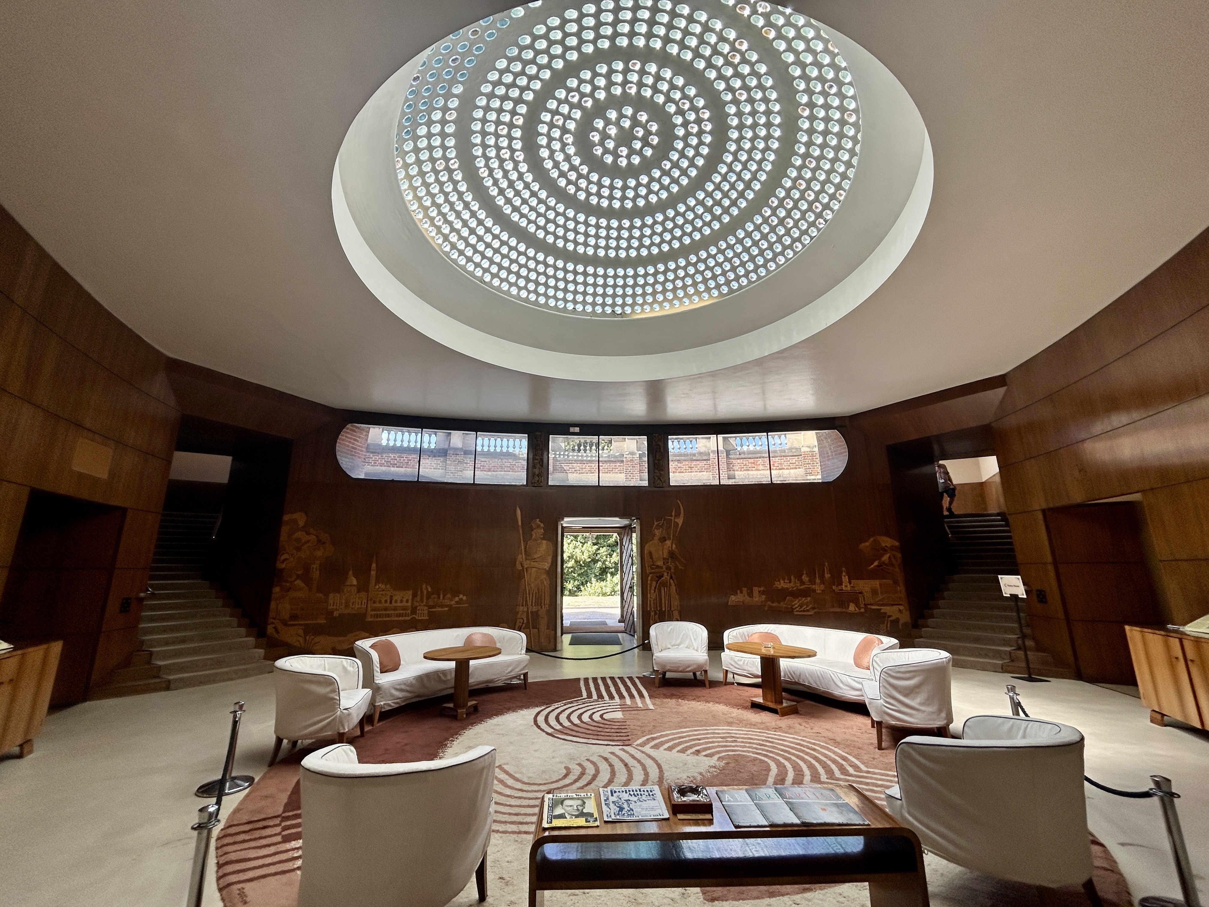 The home was decorated internally in the Art Deco style. The entrance hall was created by Swedish designer Rolf EngstrΓΆmer; light floods in from a glazed dome, highlighting blackbean veneer and figurative marquetry. βοΈ