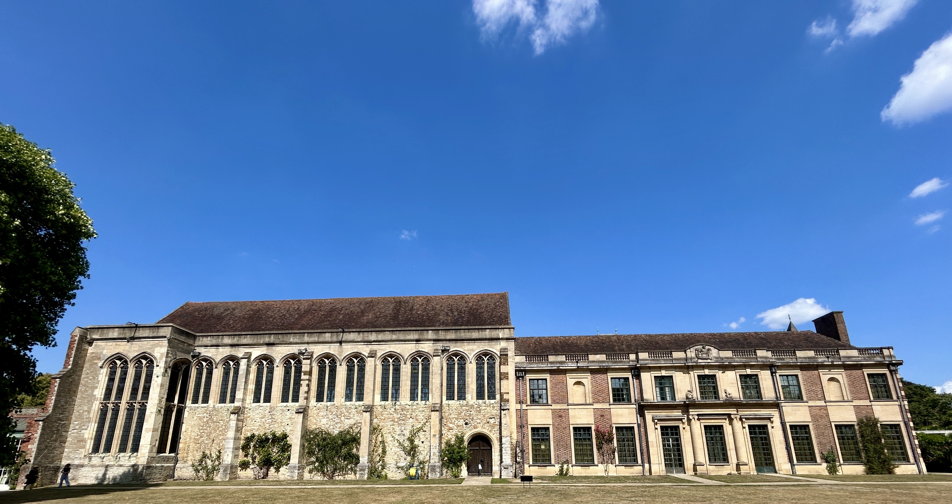 The house consists of the medieval great hall of a former royal residence, to which an Art Deco extension was added in the 1930s. The hammerbeam roof of the great hall is the third-largest of its type in England.