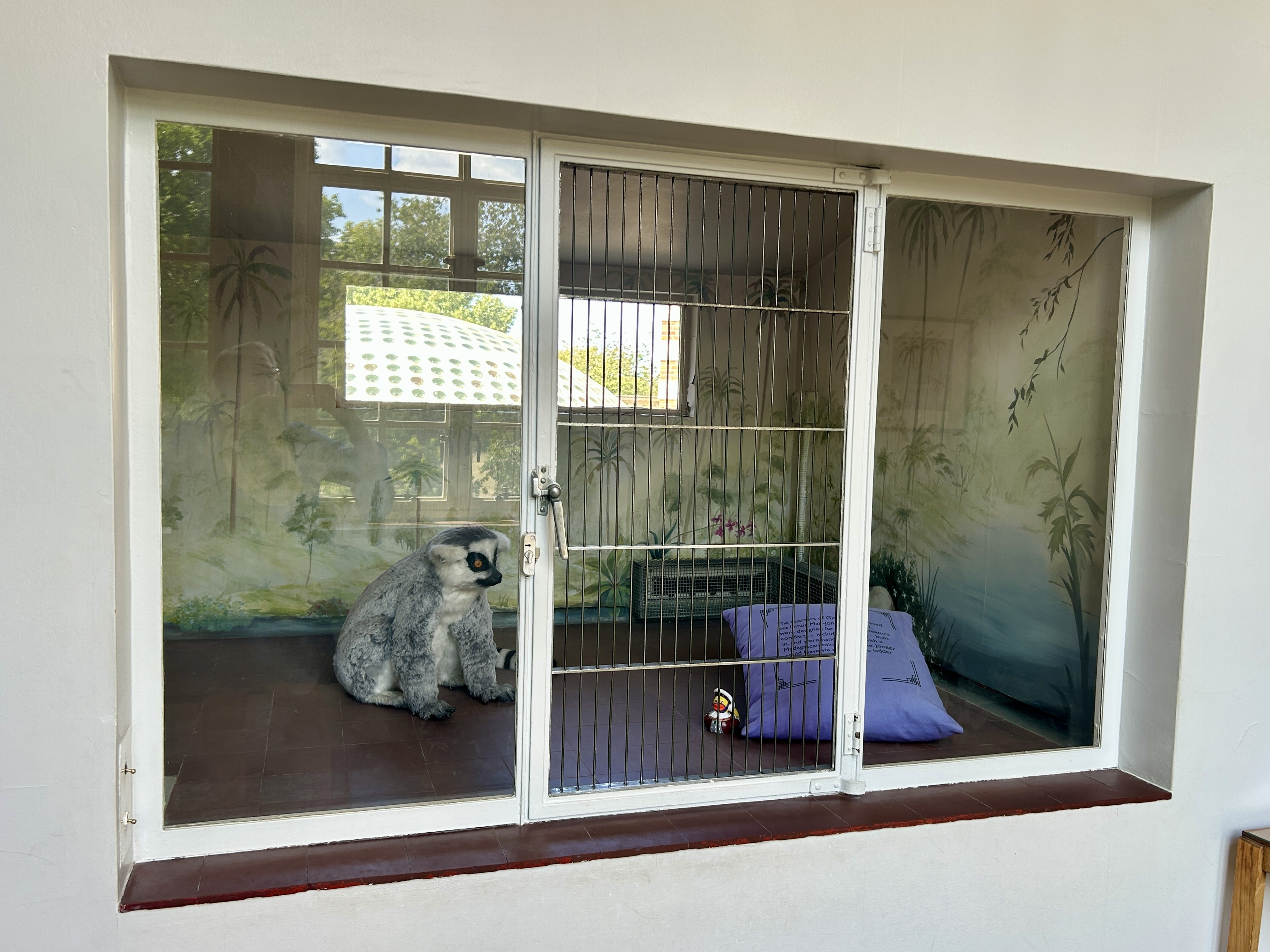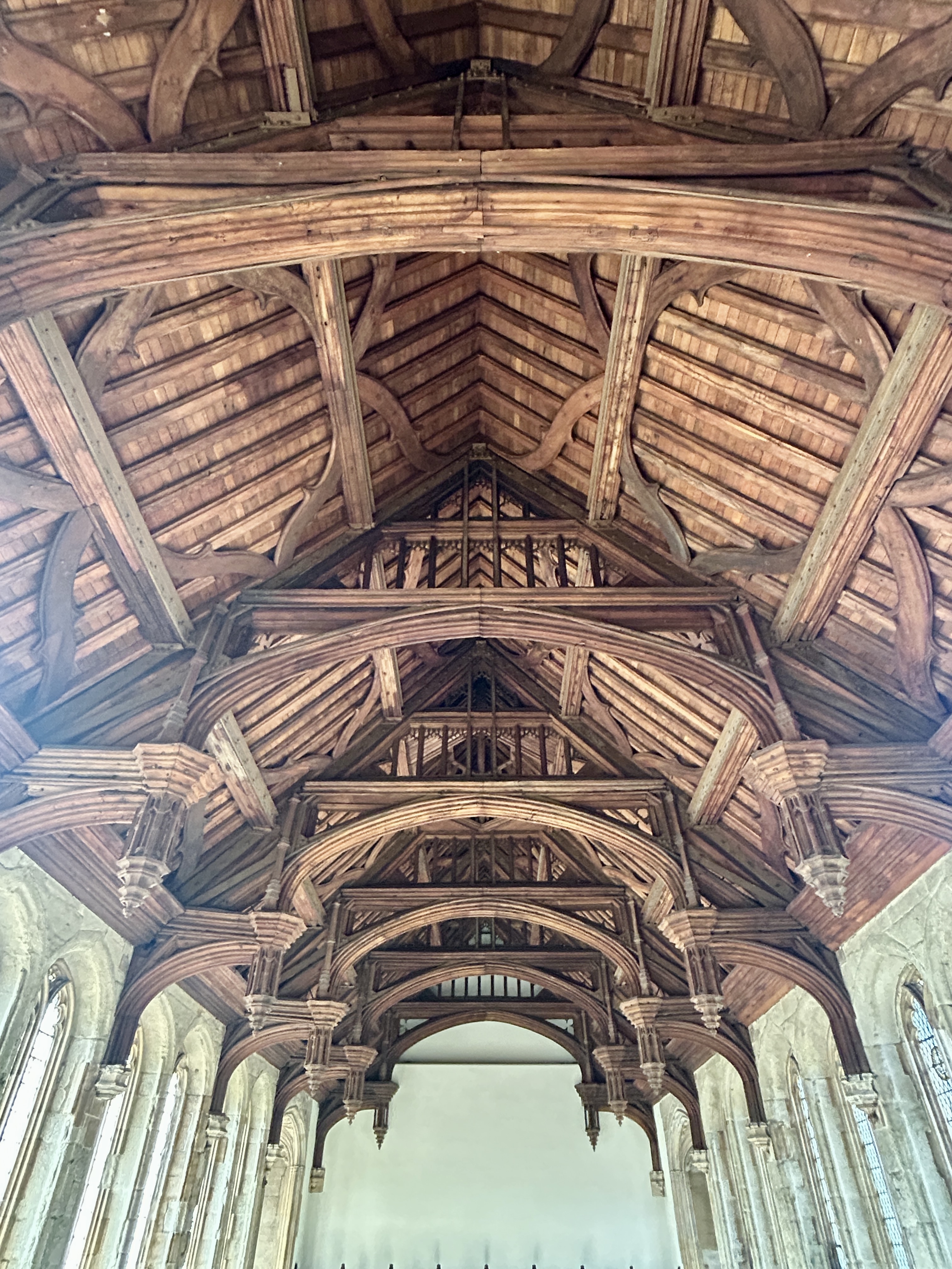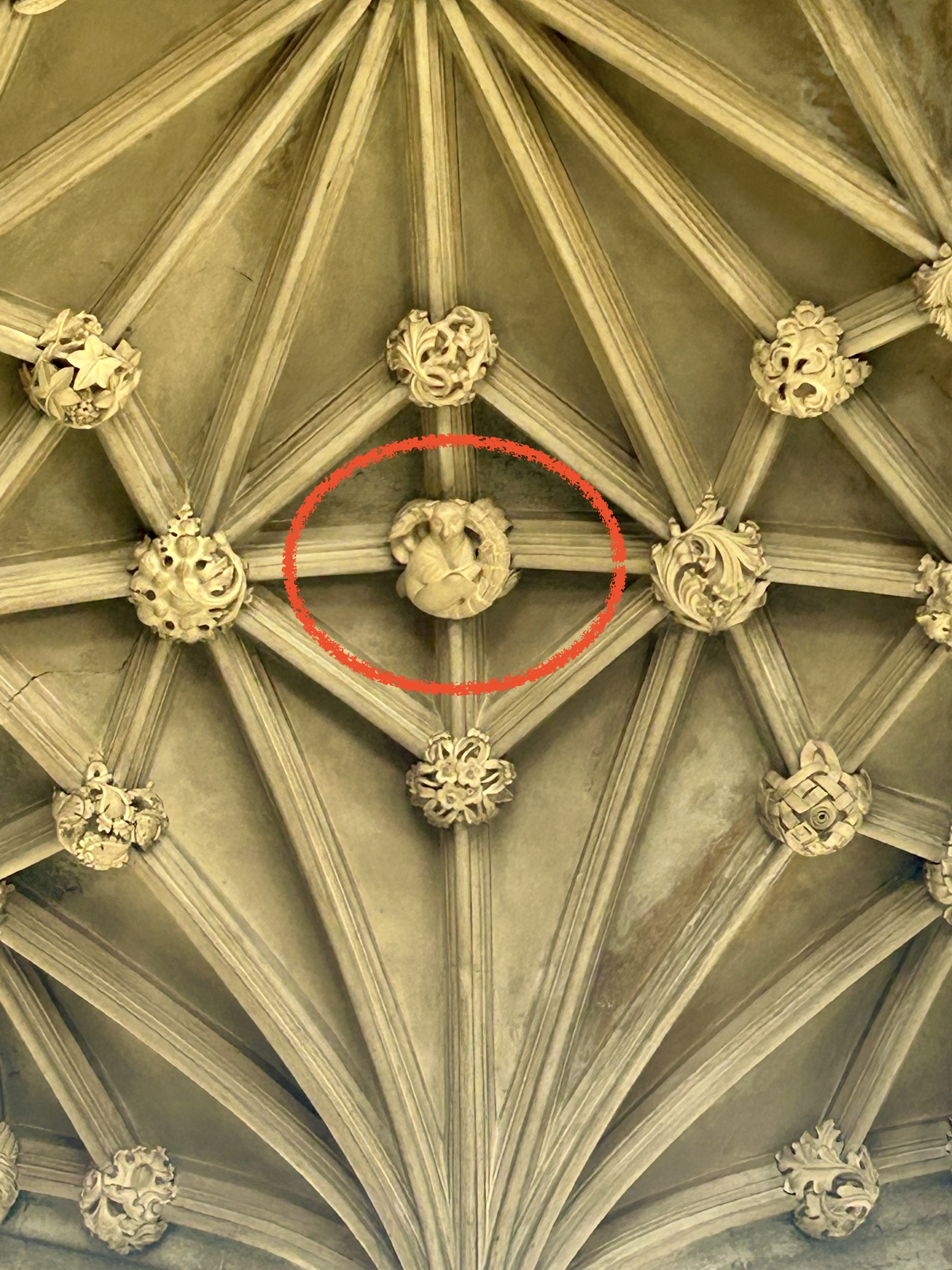 The ceiling in the medieval hall was indeed impressive. The couple had an addition made during repairs (their beloved lemur in plaster). π
