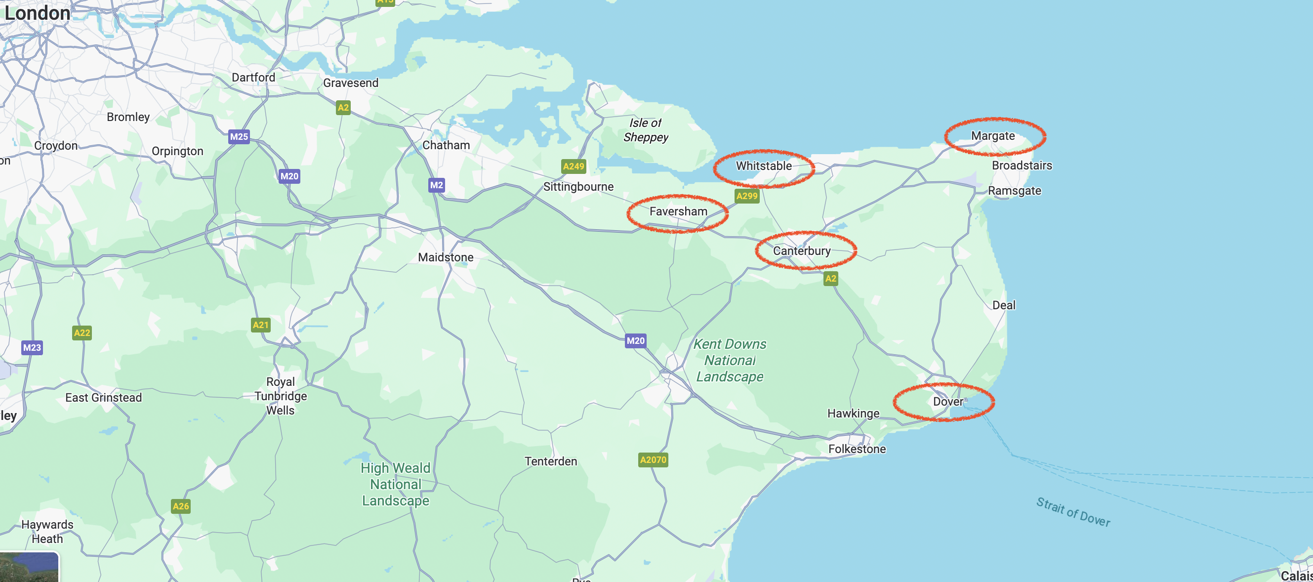 We drove the rest of the way to Canterbury in Kent and looked forward to exploring the peninsula along the North Sea / English Channel. πΊοΈ