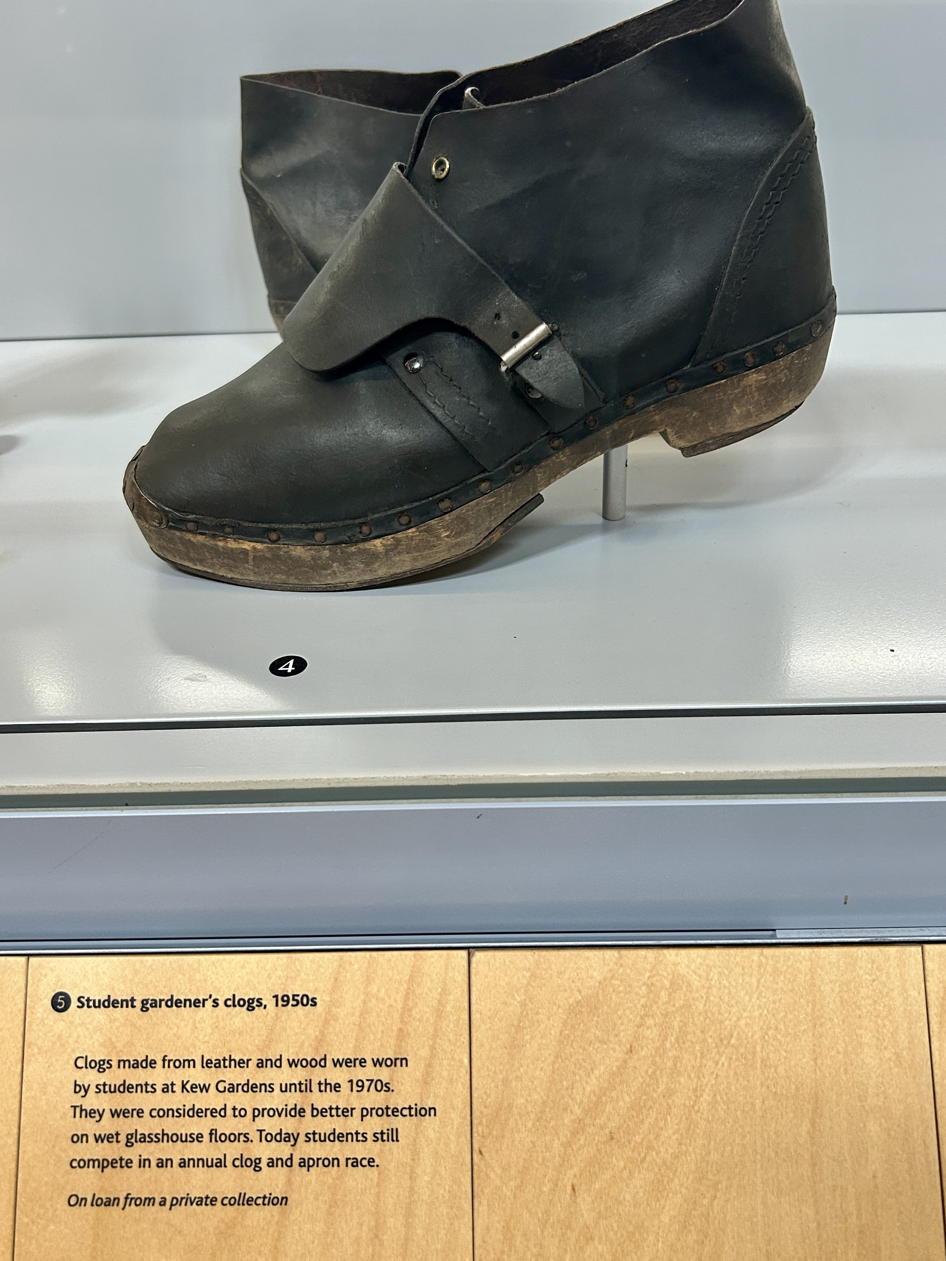 The museum included many artifacts and history of English gardening. I loved these Kew Gardens student gardener's clogs from the 1950's. Interesting history from the Calendar Customs website: