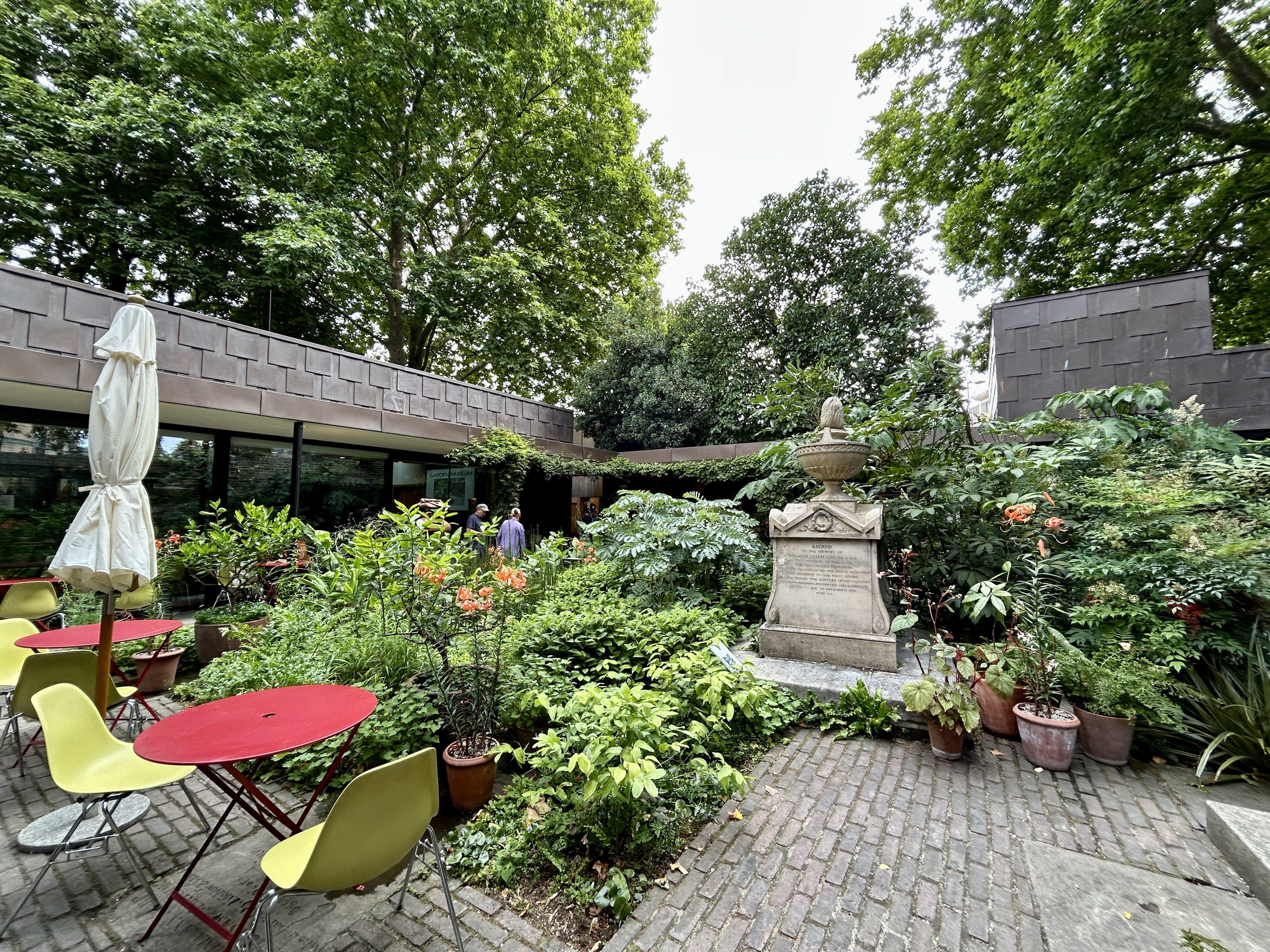 The Garden Museum was ... housed in the deconsecrated church of St Mary-at-Lambeth, the Garden Museum contains the burial place of John Tradescant, an early gardener and plant hunter. To preserve his tomb, the Garden Museum was founded by Rosemary Nicholson, an admirer of Tradescant, in 1977. At the heart of the Museum is a sheltered courtyard garden designed by Dan Pearson as an โEdenโ of rare plants.