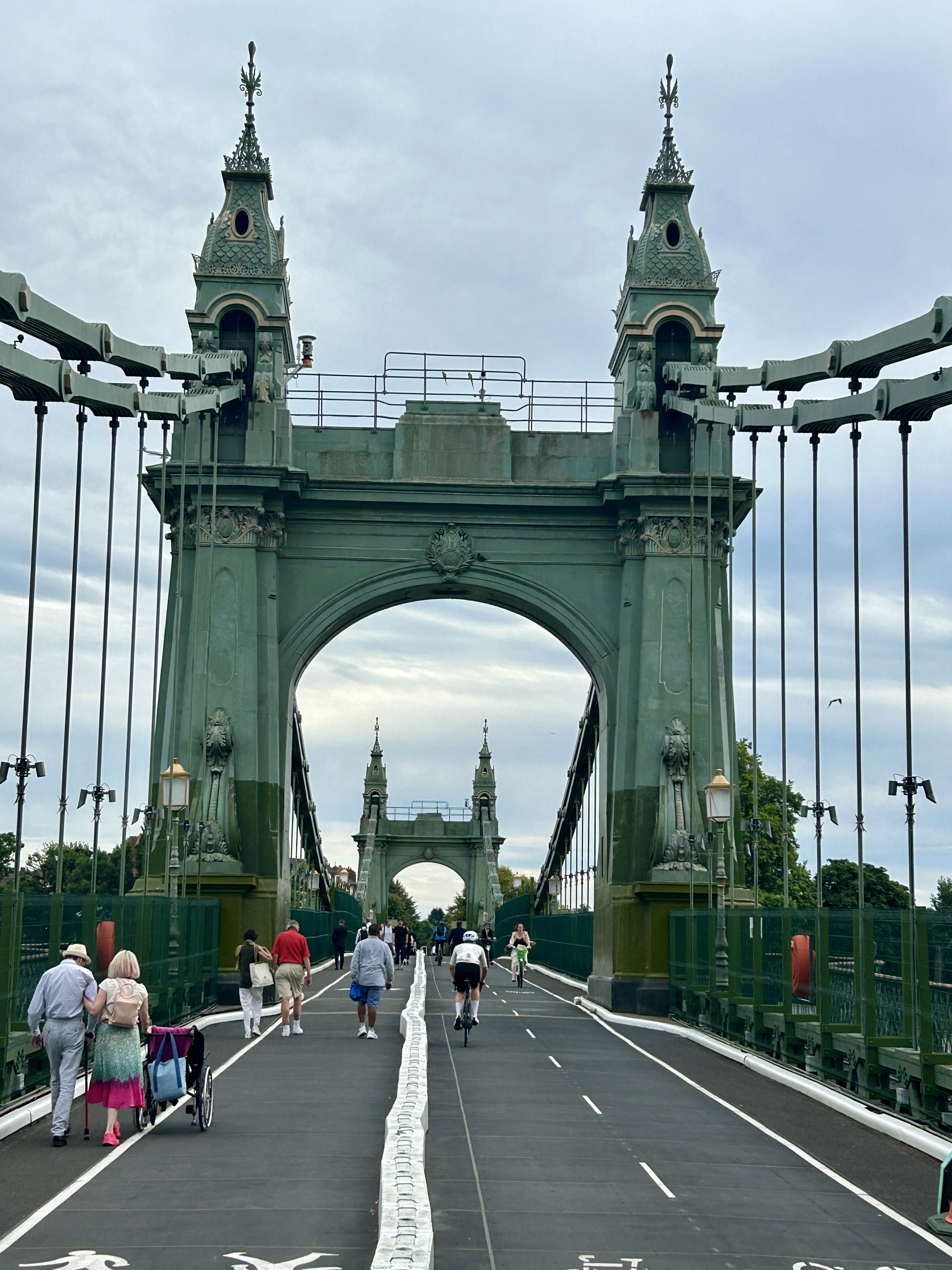 The next night, we biked over to Riverside Studios and walked the nearby Hammersmith Bridge across the Thames.