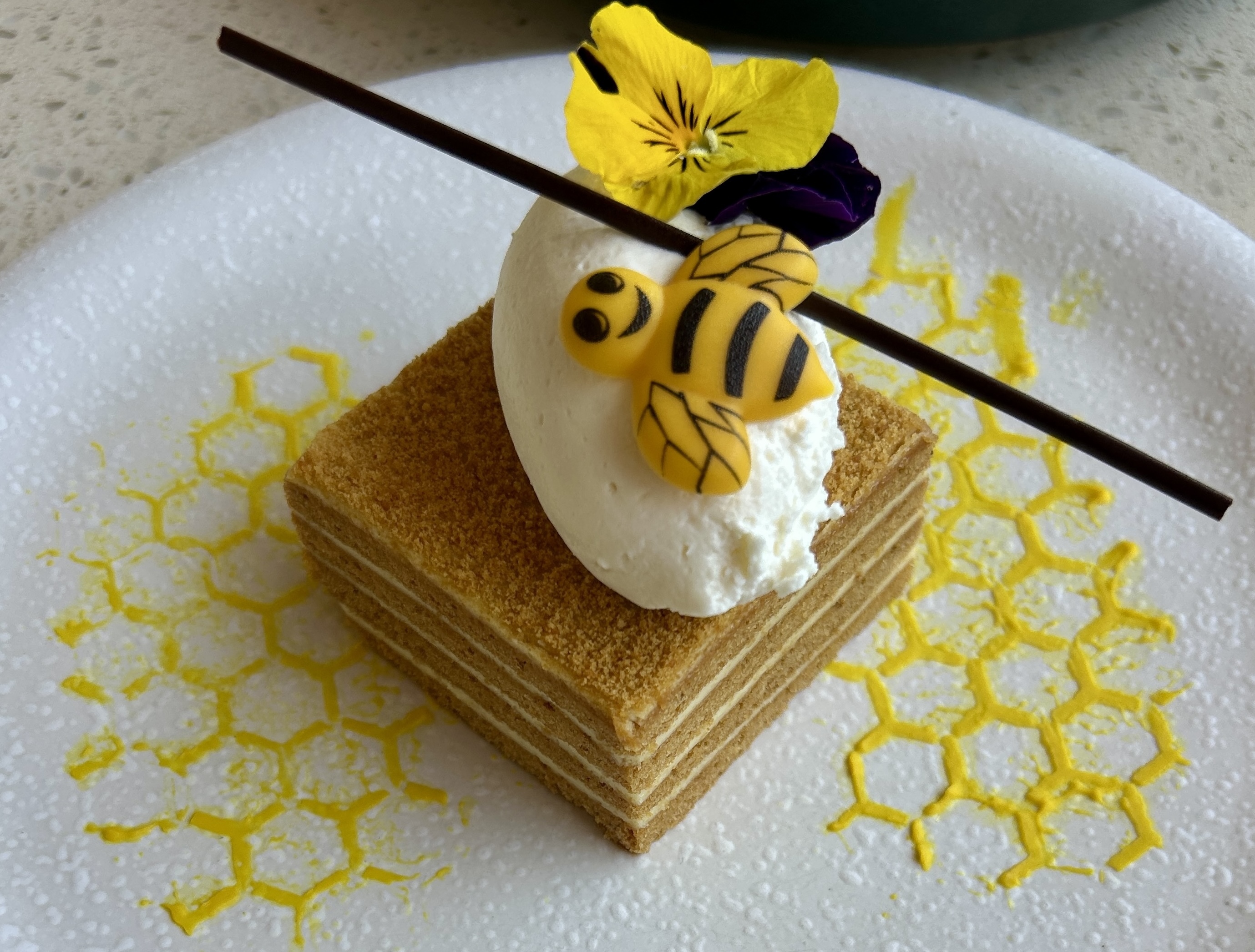 The tiny desserts (honey cake and apricot coconut mousse) were scrumptious. π
