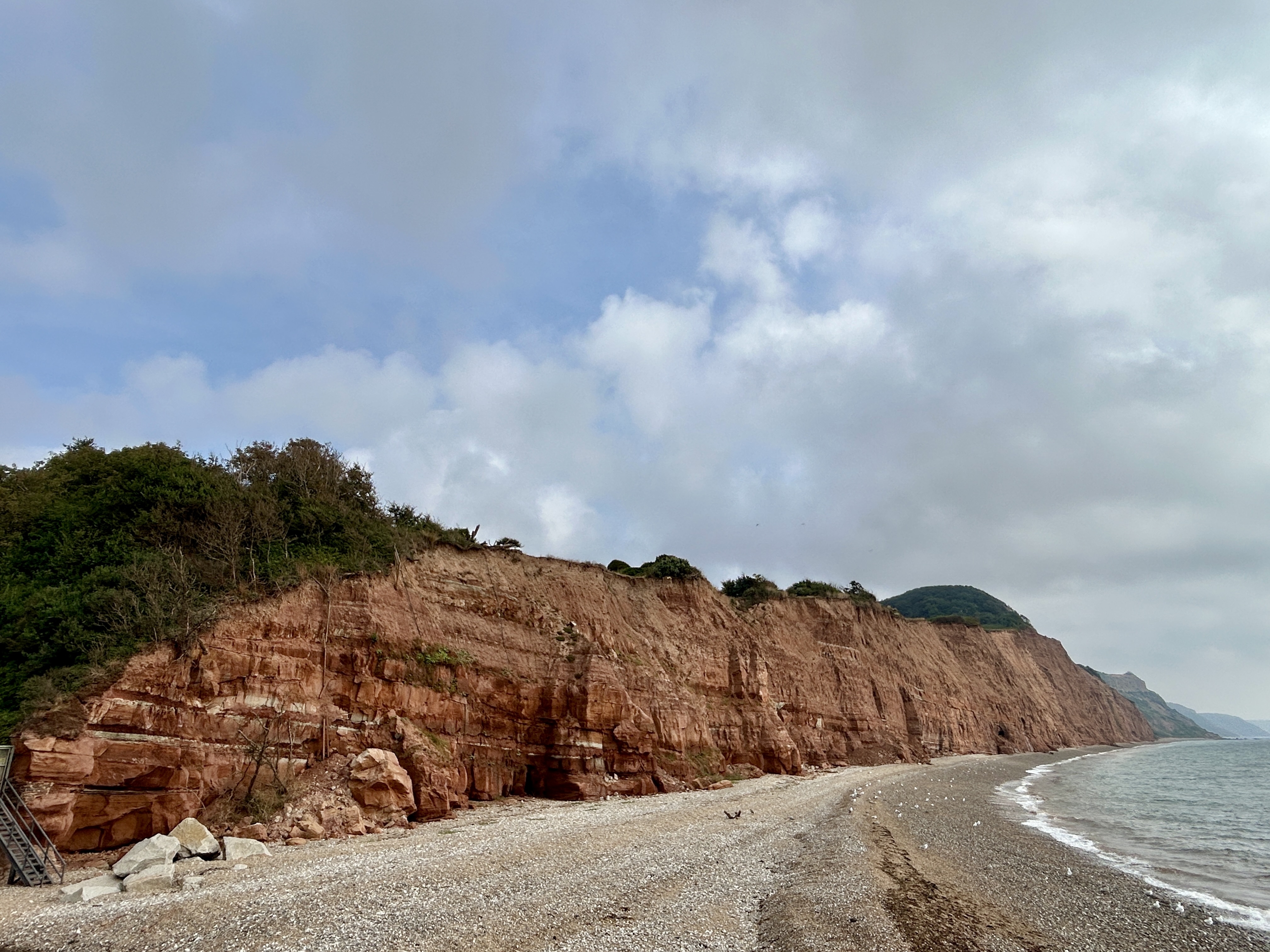 Sidmouth lies at the mouth of the River Sid ... and is on the Jurassic Coast, a World Heritage Site. The red-coloured rock indicates the arid conditions of the Triassic geological period.