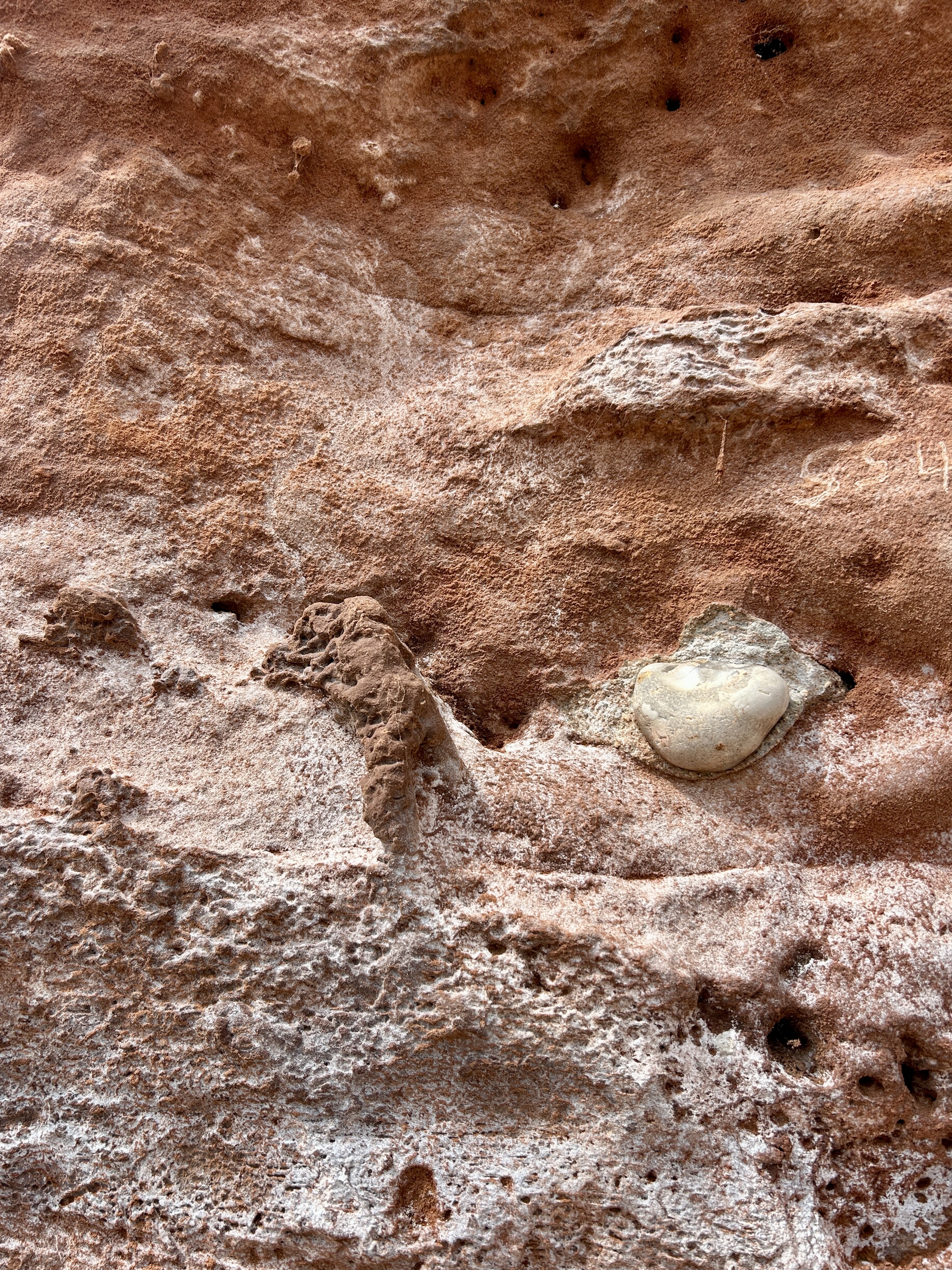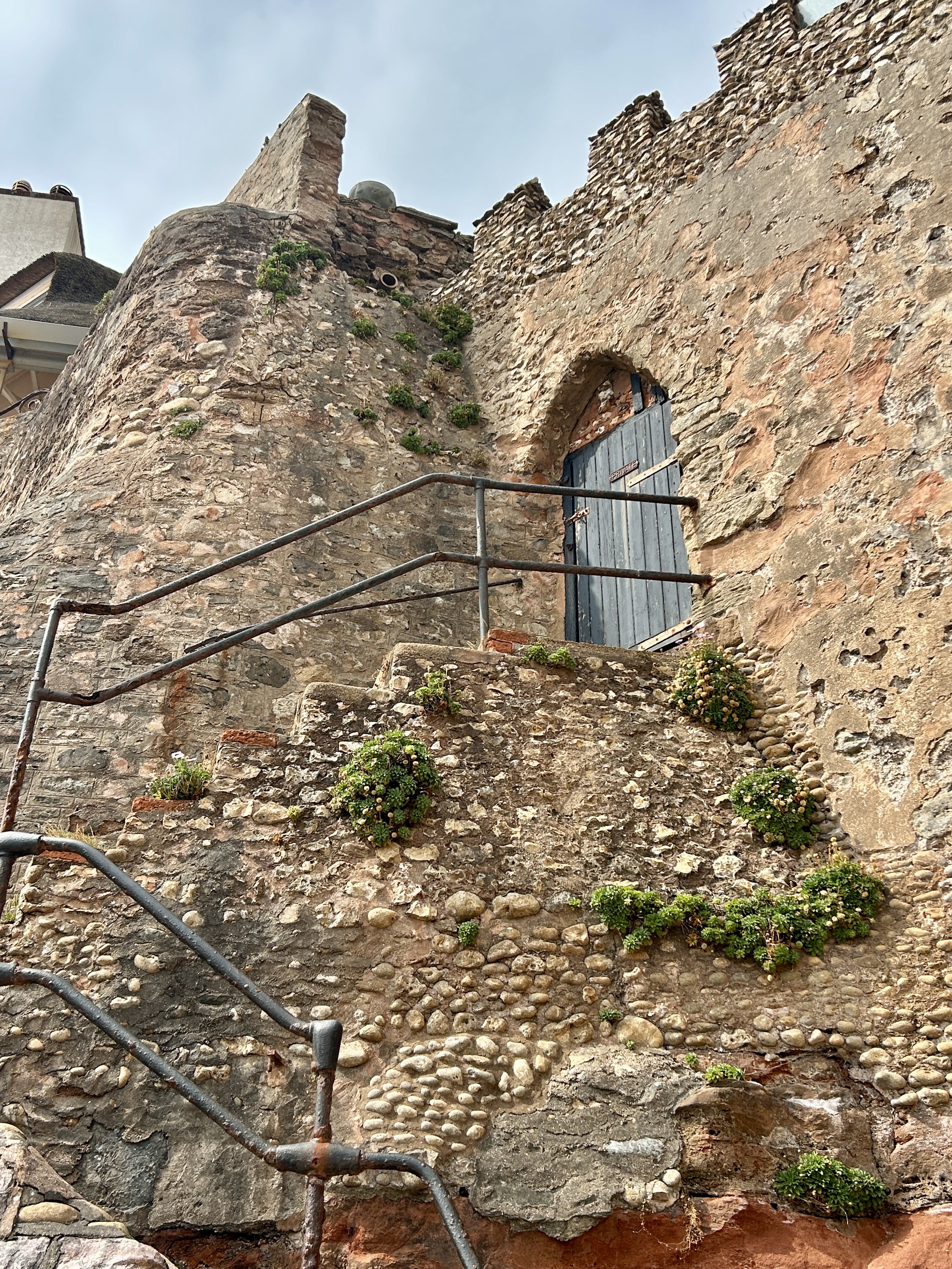 Castle remains along the west end of the promenade. Close up of the Triassic pebble beds which make up the bottom of these cliffs. ⛫