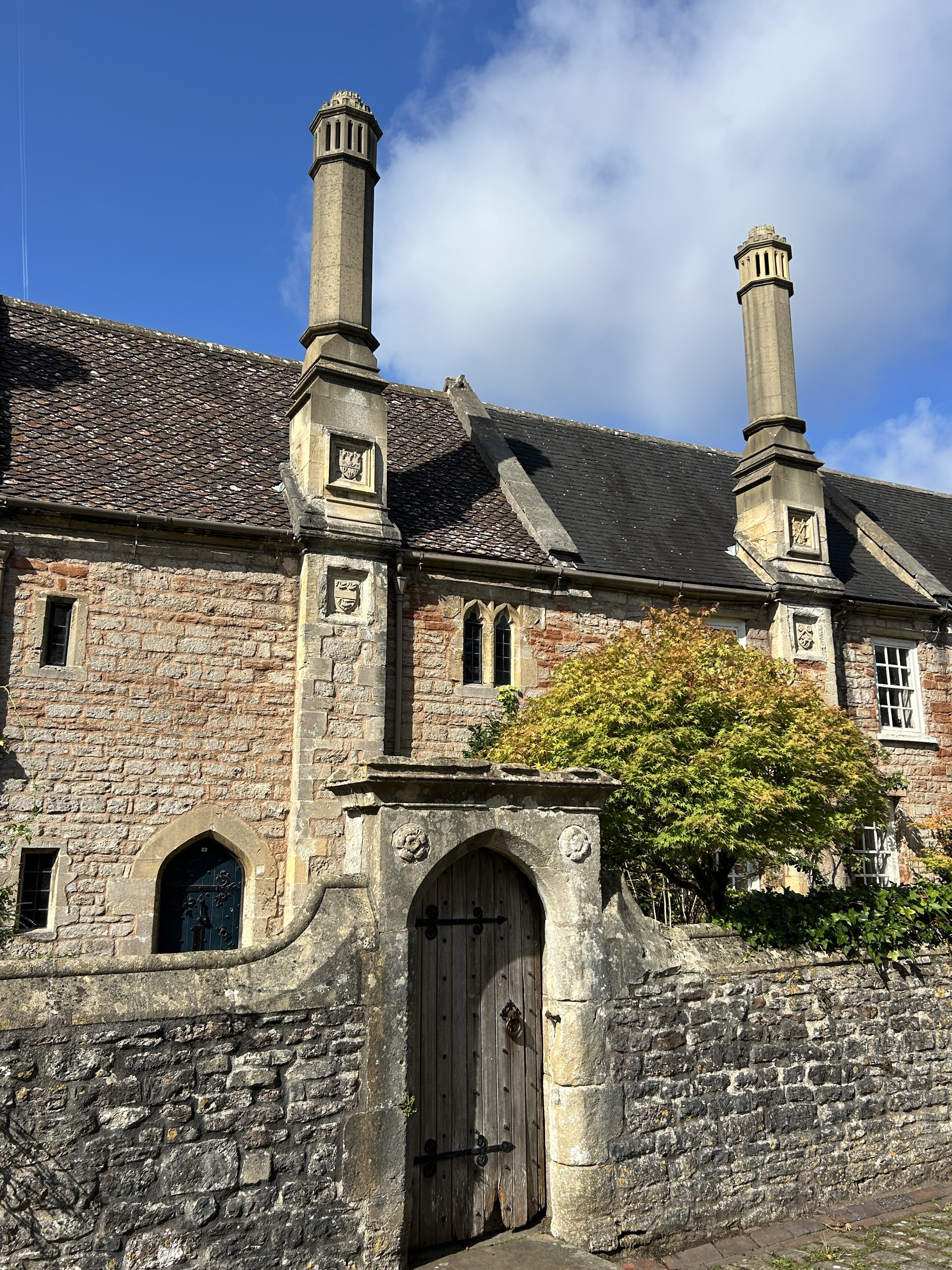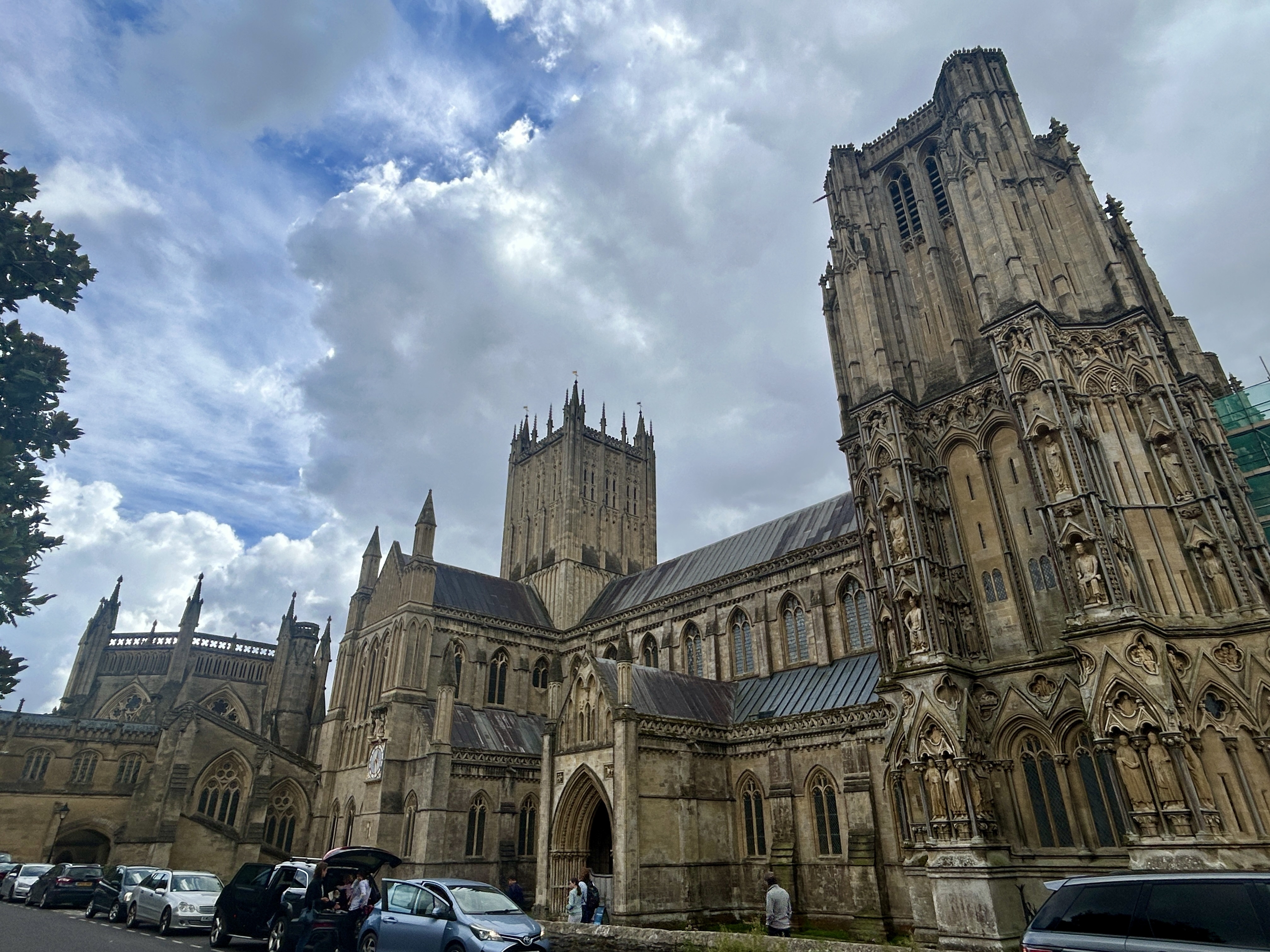 Nice view of the Gothic architecture of Wells Cathedral (started building it in 1175!). ⛪︎ Wells Cathedral ... is a Church of England cathedral ... and is the seat of the bishop of Bath and Wells and the mother church of the diocese of Bath and Wells. There are daily Church of England services in the building, and in 2023 it was reported to receive over 300,000 visitors per year. The cathedral precincts contain the Bishop's Palace and several buildings linked to its medieval chapter of secular canons, including the fifteenth-century Vicars' Close.
