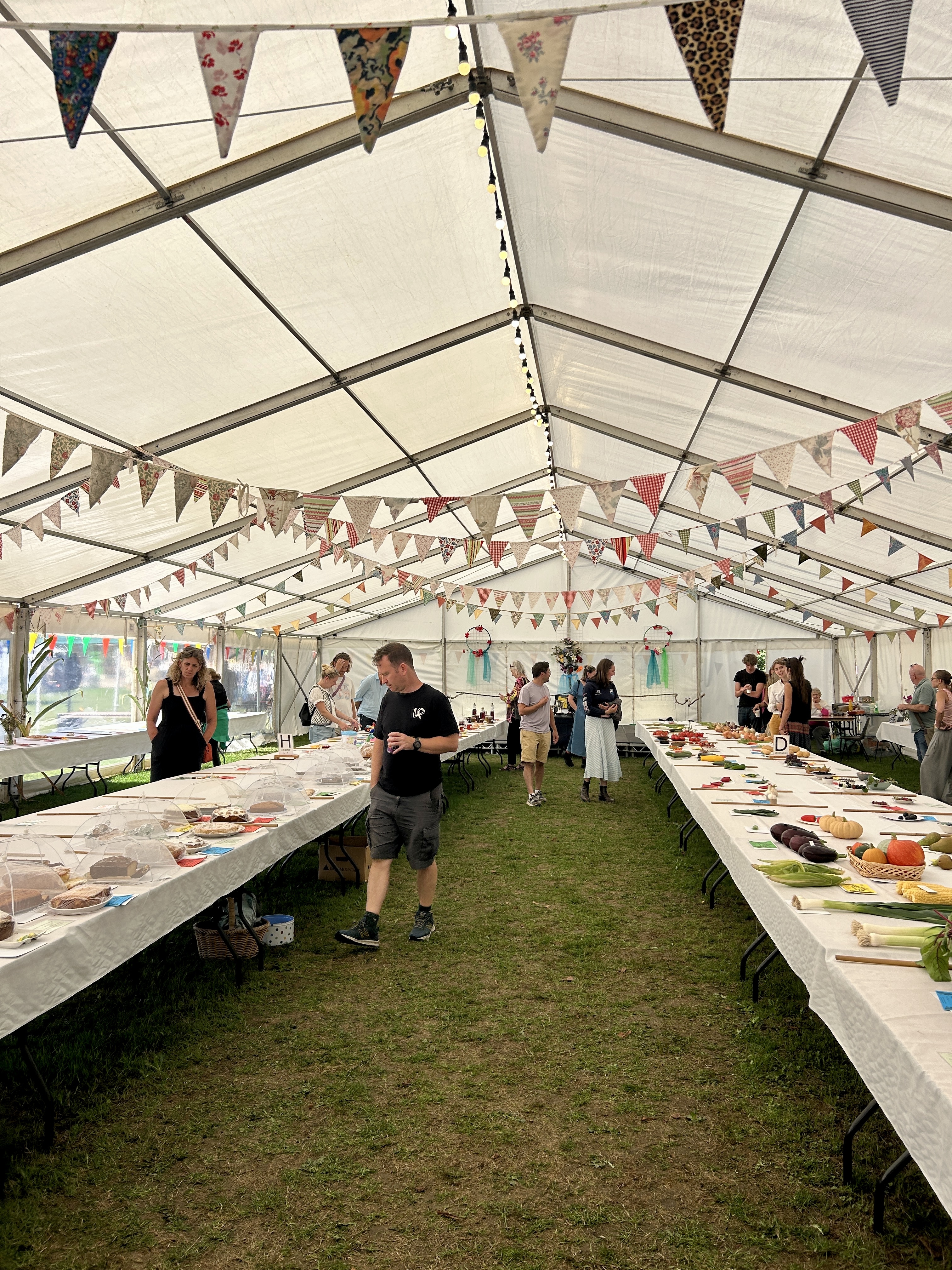 It was the end of summer so we got to attend two local flower / produce shows. The first was a joint effort of two tiny villages, Dinder and Dulcote. 🌼