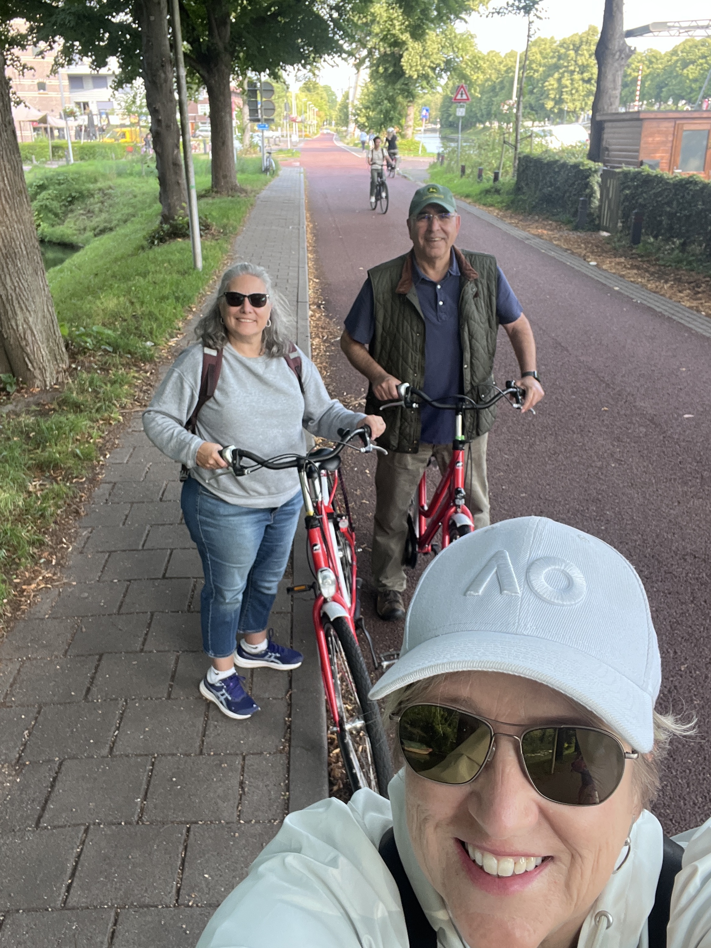 We arrived in Amsterdam and took a 30 minute train to Utrecht where we checked into our houseboat. The view was like a painting. 🖼️