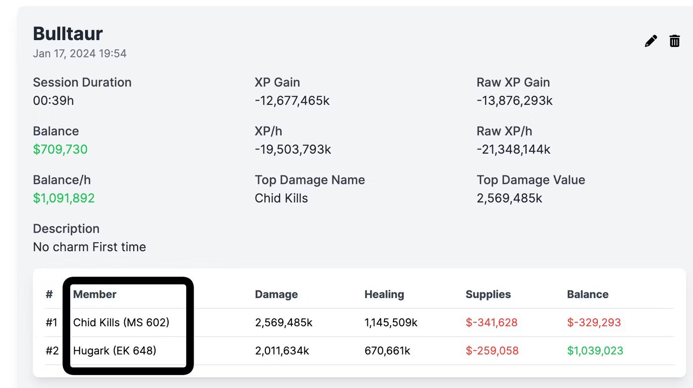 Now, when you create, edit, or see a Hunt Session for a solo or party, we search on Tibia's what is vocation and level for each member of the Hunt Session and update them.