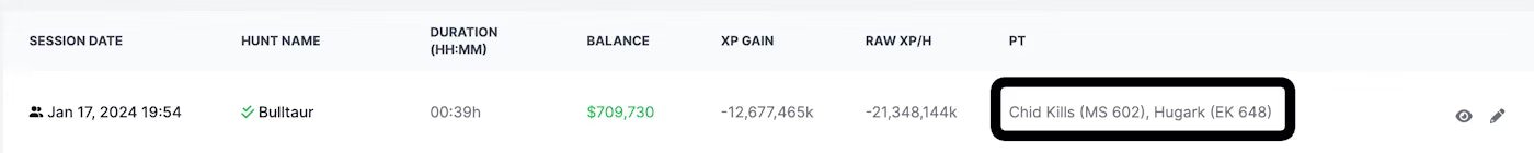 Hunt Session details page