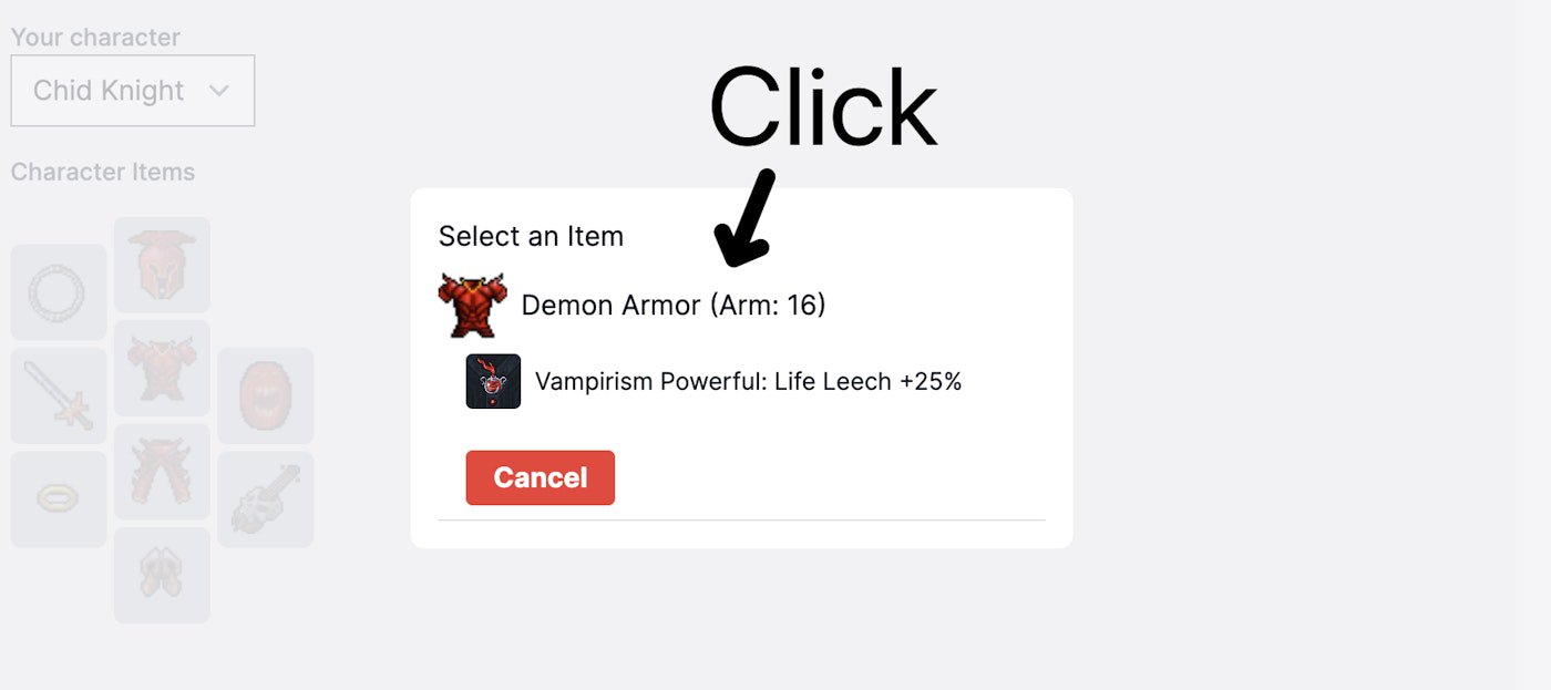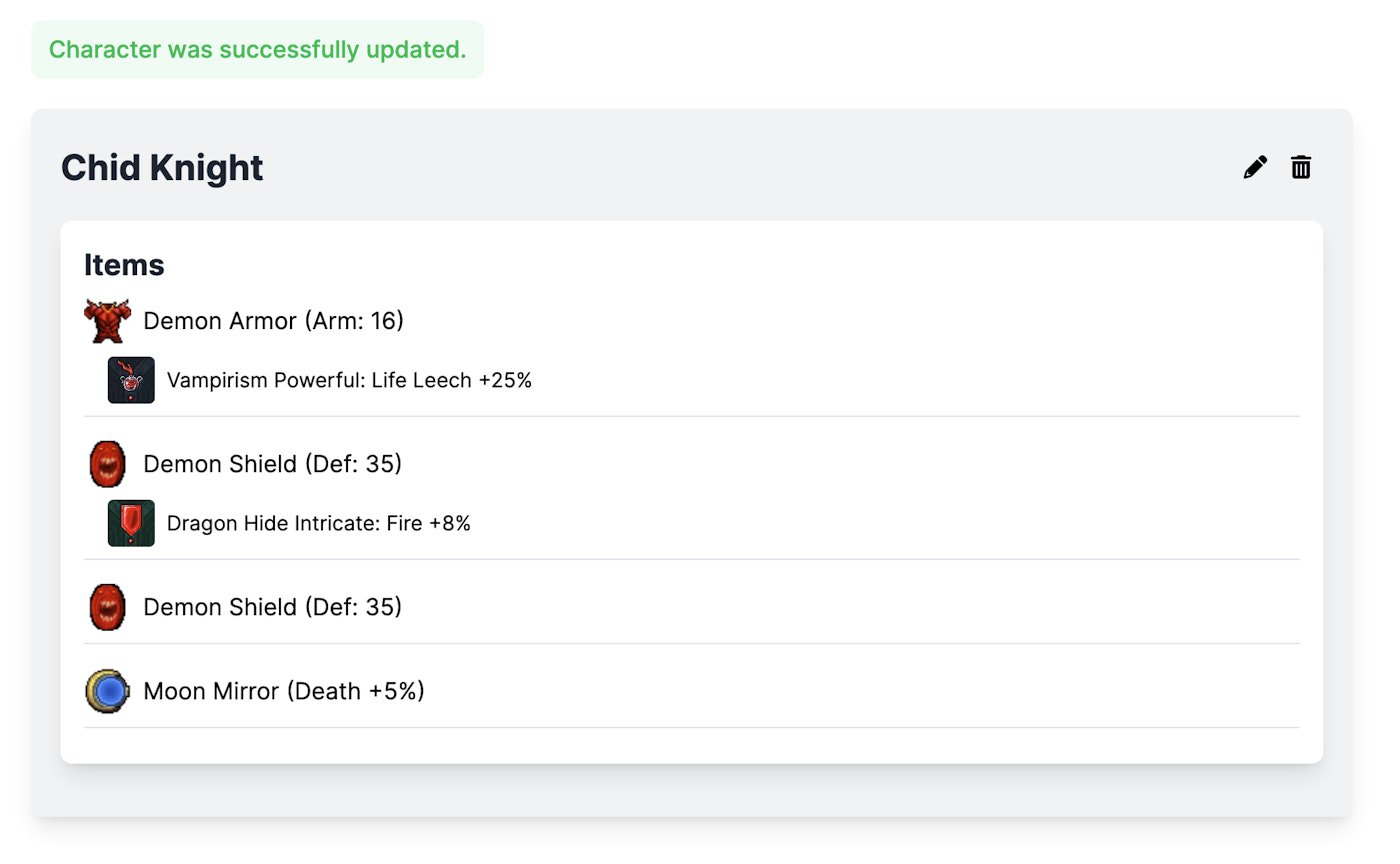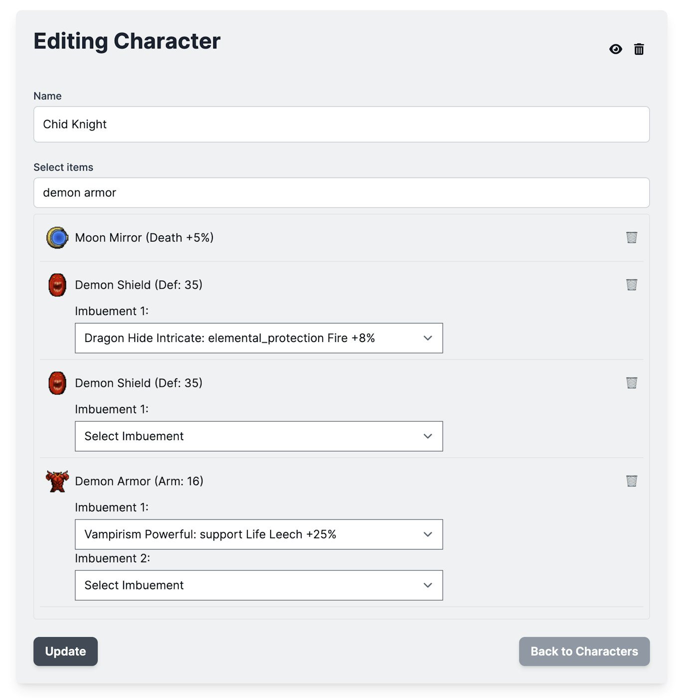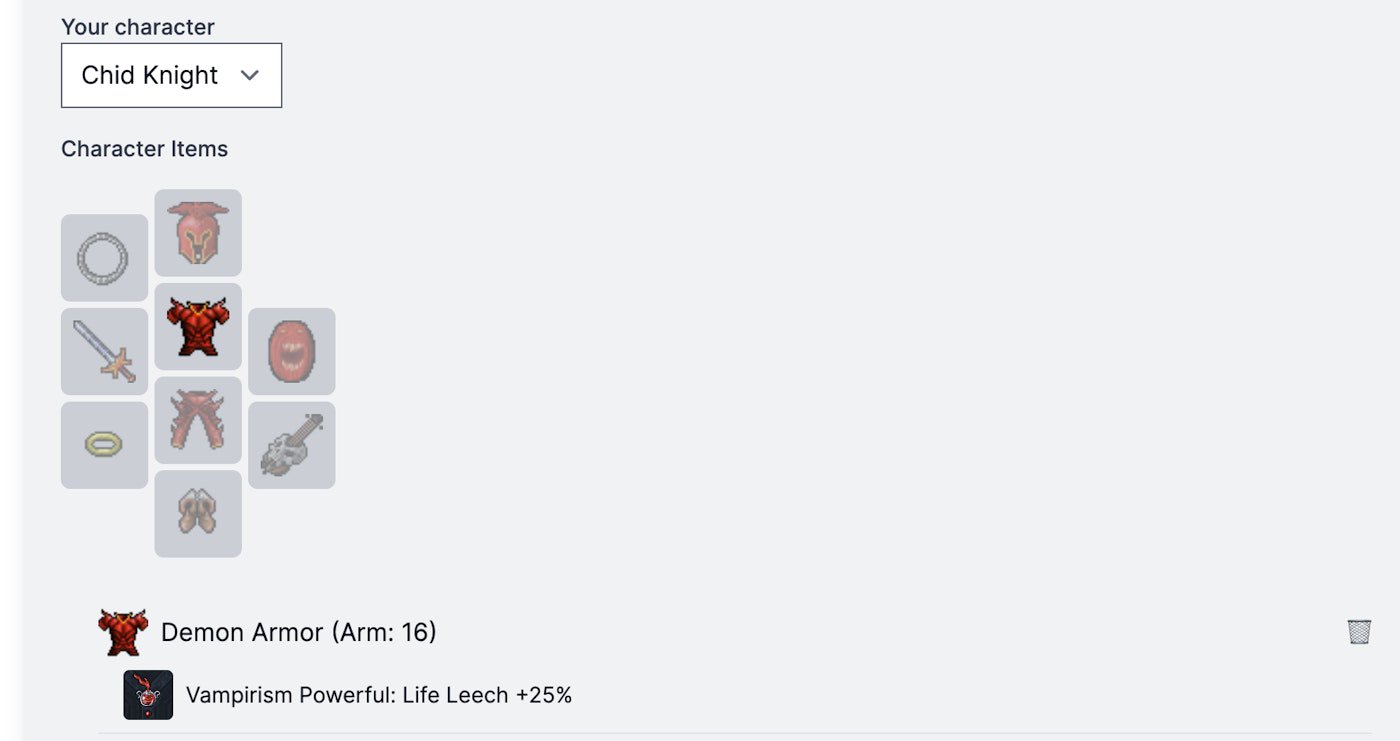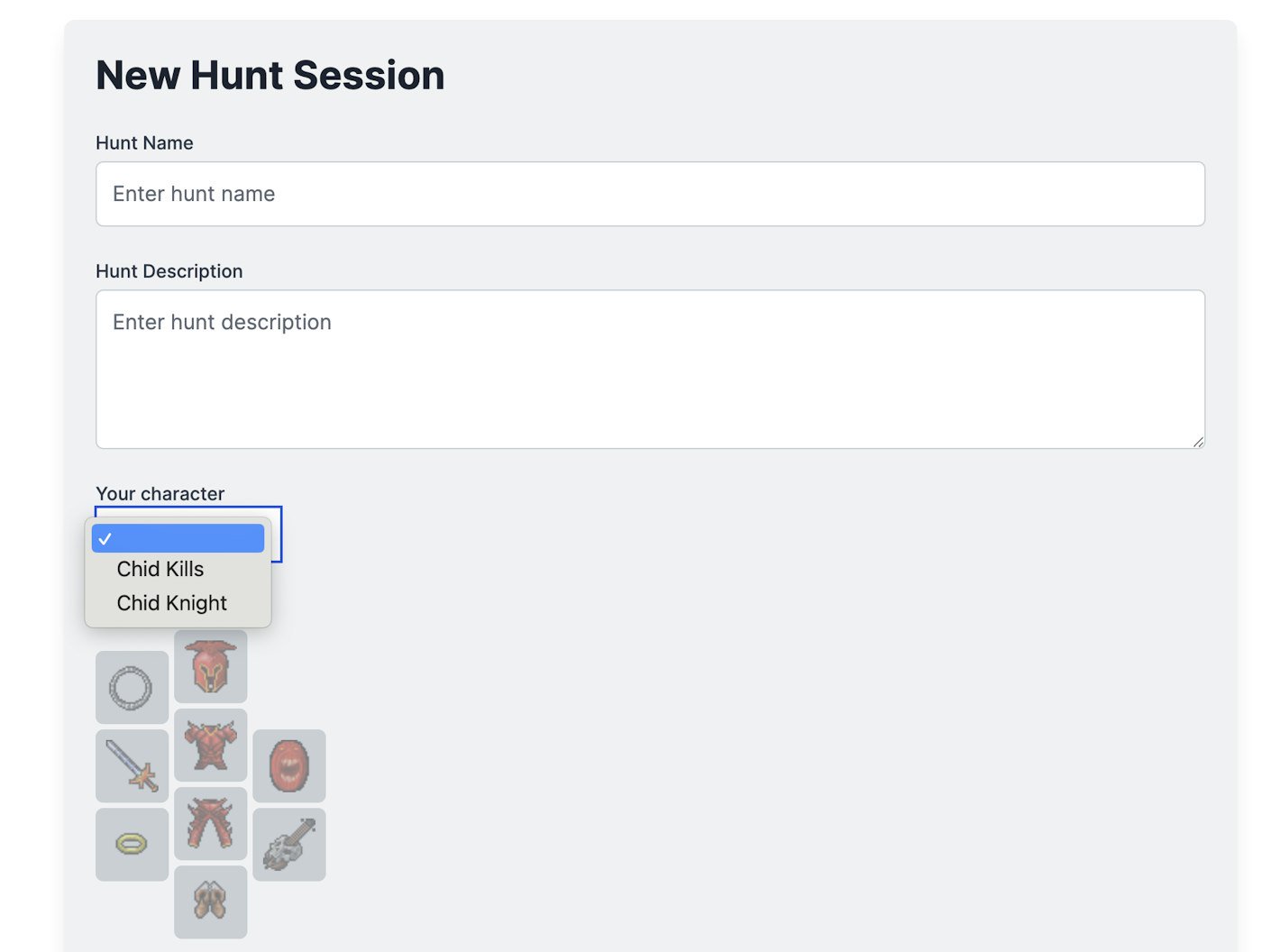 This character items addition will allow you to specify the items used in a Hunt Session.