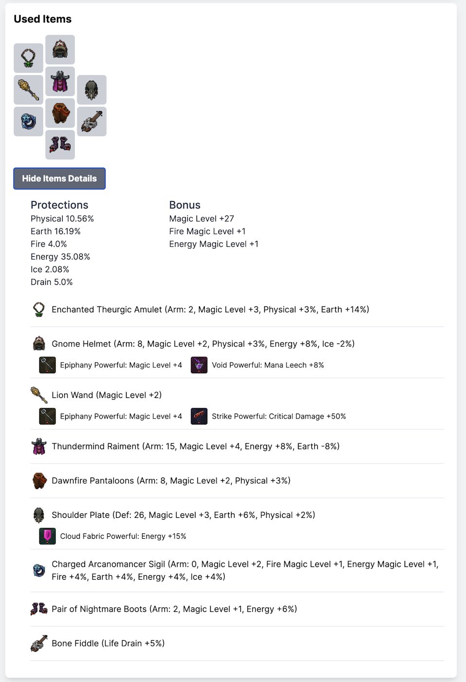 Now you can see the bonus and protection details for the used items in a Hunt Session. It calculates in the same way Tibia's does, a proportional calculation for each percentage.