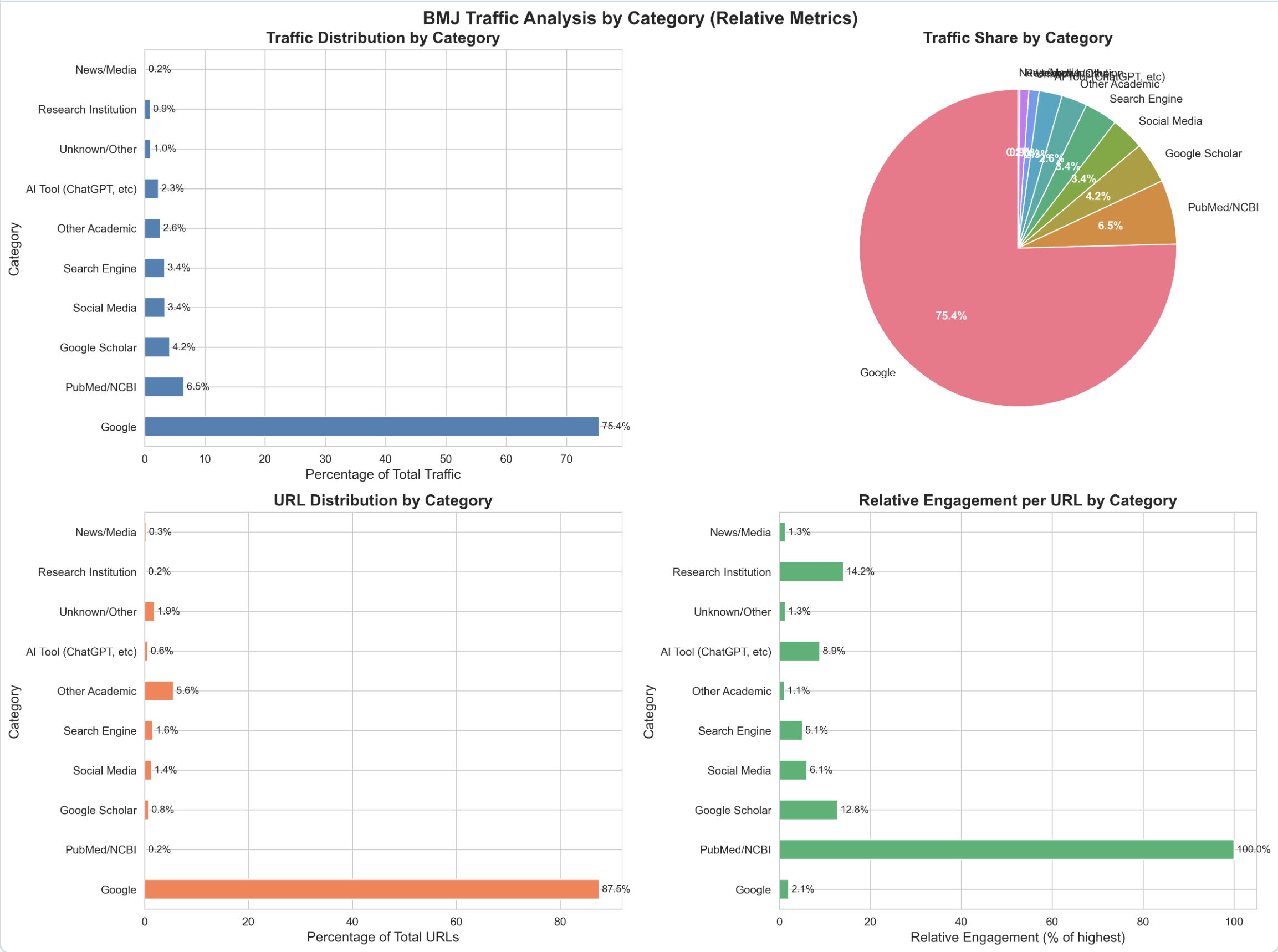 I was looking at some data from Google Analytics on referrer traffic for BMJ. This is a sample of traffic from about one or two thousand referrer urls.